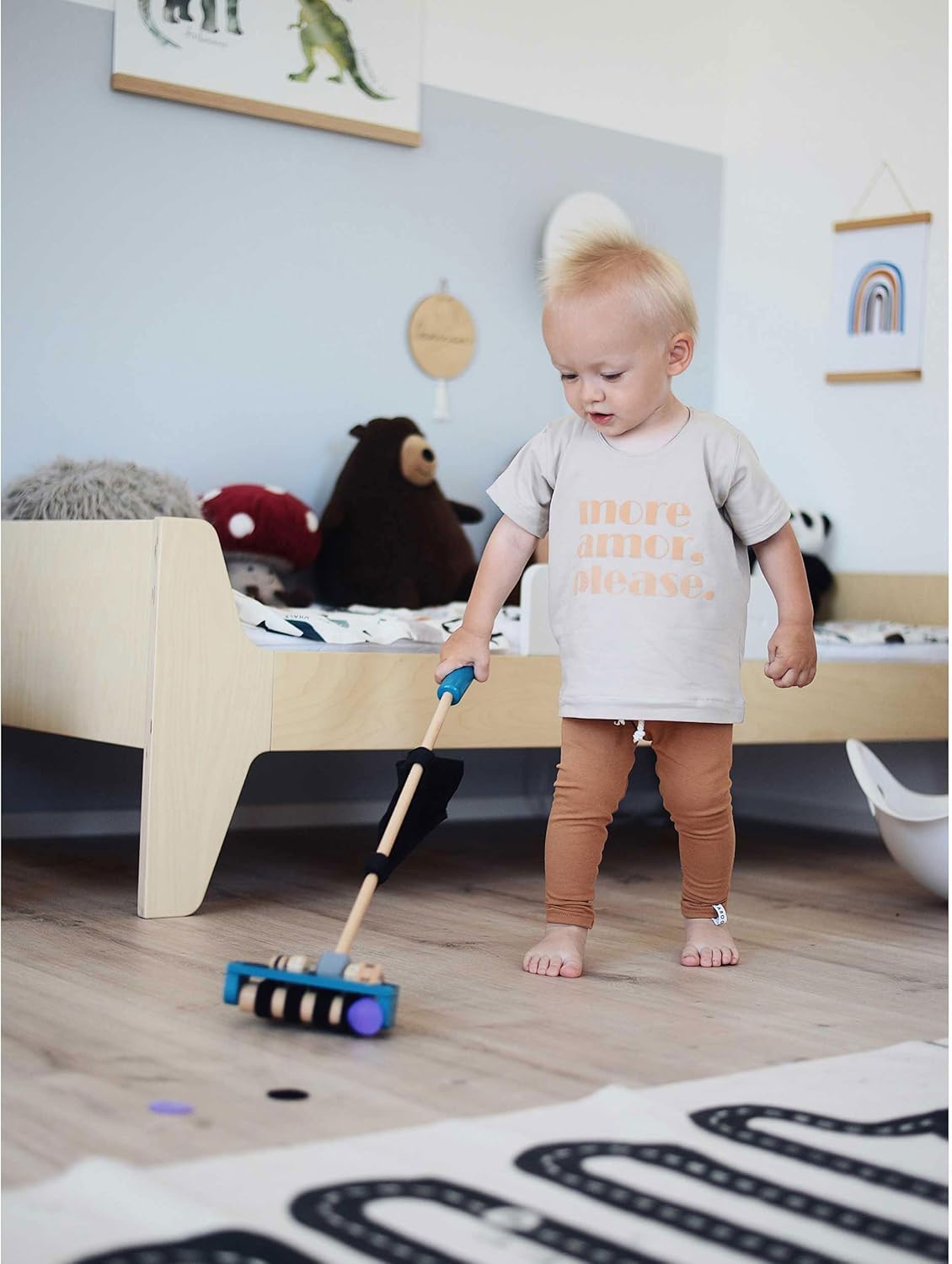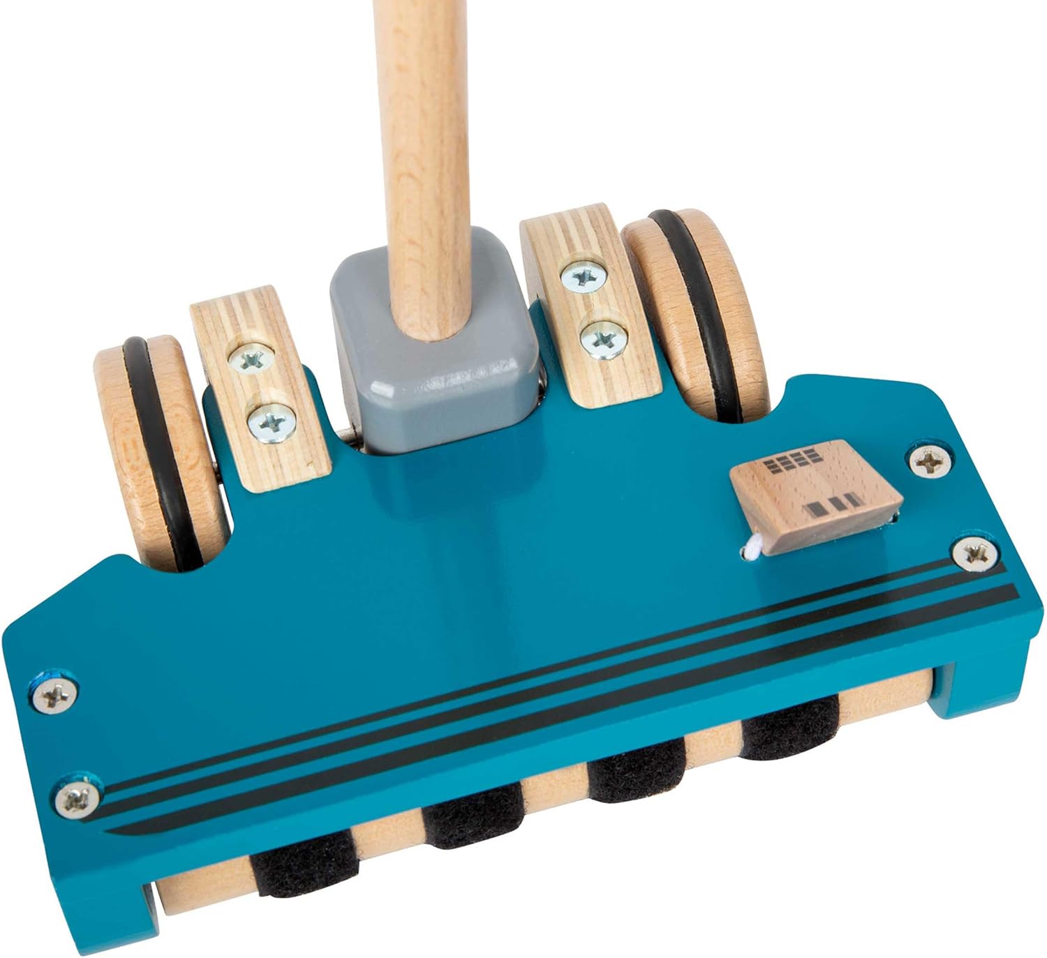 Questo aspirapolvere multifunzionale è un giocattolo da spingere e allo stesso tempo un gioco di ruolo ed è quindi adatto a diverse fasce d'età, a partire dai 18 mesi Lo sporco è a forma di punti in velcro e la cappa aspirante a strisce permette di "aspirare" i punti in velcro: per un divertimento particolarmente realistico Questo aspirapolvere per bambini dispone di un sacchetto in stoffa, che può essere utilizzato per conservare i punti in velcro L'aspirapolvere ha delle ruote gommate per poterlo spingere in maniera sicura e senza rumori Posizionato in verticale, questo gioco per la motricità può essere conservato in modo da occupare poco spazio