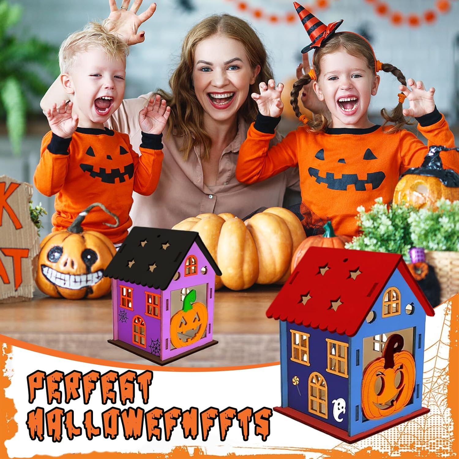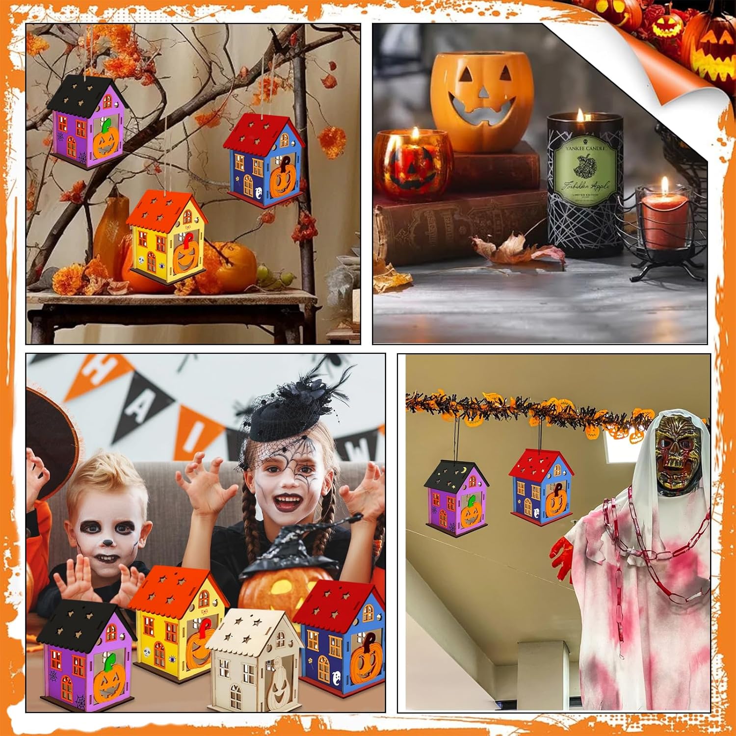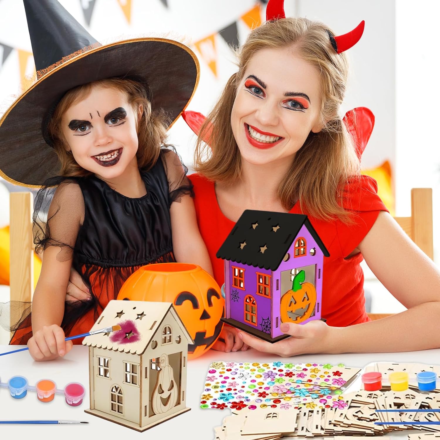 Set per Halloween per bambini: Riceverete 65 pezzi per Halloween per bambini. La confezione contiene 42 pezzi in legno (7 pezzi per ciascuno dei 6 stili), 6 pezzi di corda, 12 colori, 2 pennelli, 1 ciotola per miscelazione, 2 fogli di adesivi con strass Materiali di alta qualità: Il set per bricolage autunnale è realizzato con trucioli di legno naturale, superficie liscia, resistente e durevole, colorazione delicata, senza piccole spine di legno, anche i bambini possono usarlo in sicurezza Facile da utilizzare: La decorazione in legno di Halloween è molto facile da usare, basta trovare la giusta posizione della tavola corrispondente, design a scatto, molto facile da assemblare Decorazioni per Halloween: I nostri kit di creazione di lanterne sono perfetti per il coordinamento occhio-mano, lo sviluppo dell’abbinamento dei colori, questa è un'attività eccezionale per le sessioni scolastiche, domestiche, da soli e in gruppo Regalo perfetto: Il Kit Lanterne Di Legno Di Halloween è il regalo perfetto per i bambini che amano il fai da te e partecipano ad Halloween. Promuove la loro creatività, migliora le loro capacità motorie e offre ore di intrattenimento