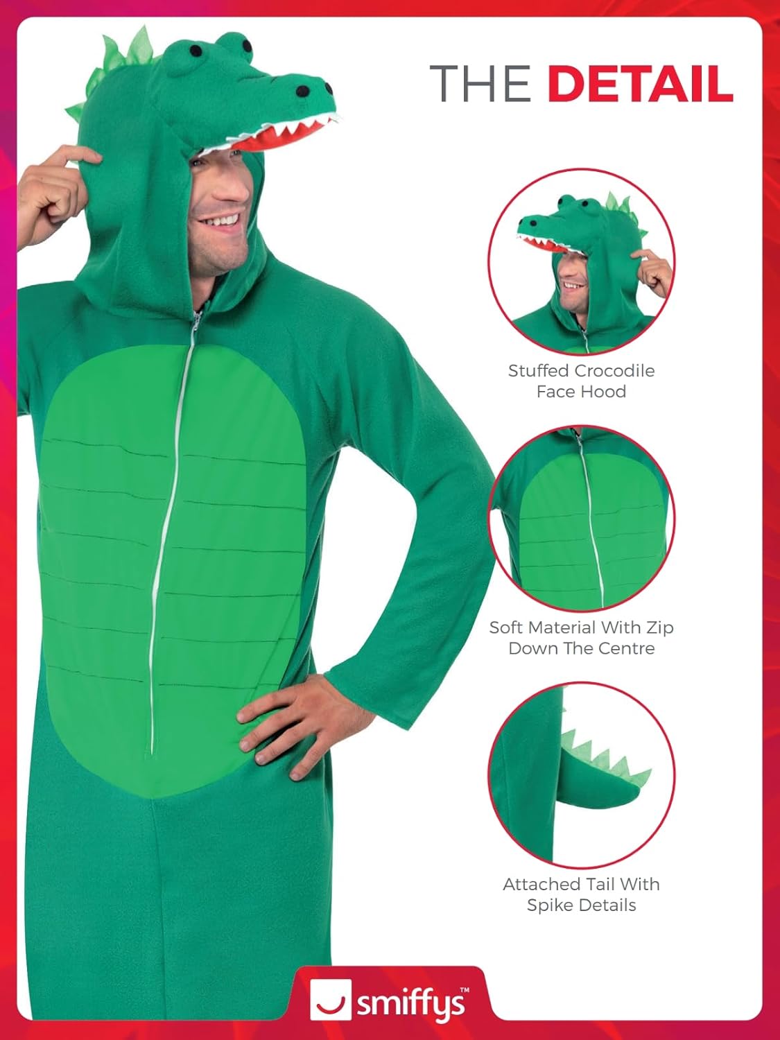 Includere Costume da coccodrillo, tutto in uno con cappuccio Petto 42"-44" / Girovita 36"-38" / Cucitura interna da gamba 33" Il nostro team dedicato alla sicurezza interna garantisce che tutti i nostri prodotti sono fabbricati e rigorosamente testati per essere conformi alle più recenti norme e normative di sicurezza europee e americane Smiffys è uno fornitore leader nel settore della costumi e della azienda famiglia con 123 anni d'eredità di costumi, parrucche, trucco e accessori Si segnala che tutti i nostri prodotti saranno sempre imballaggi di marca Smiffys