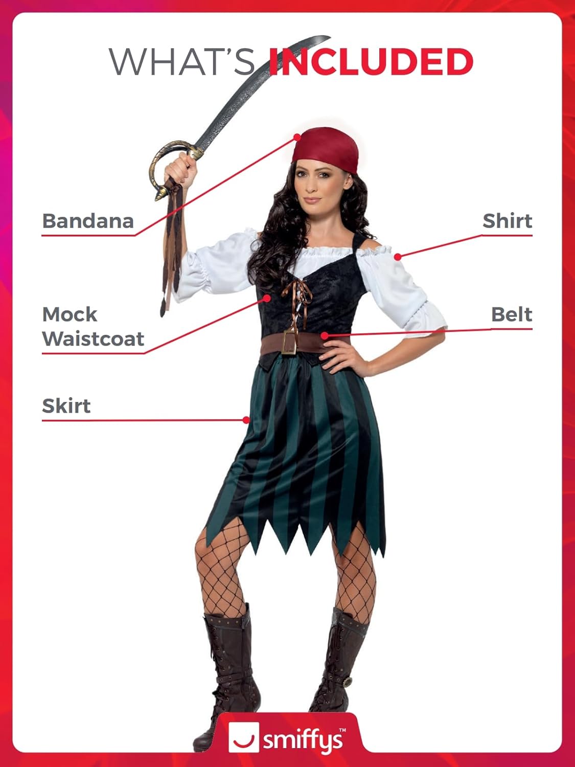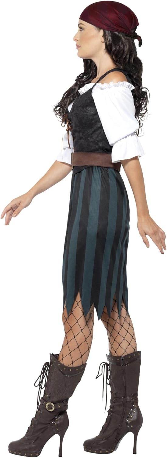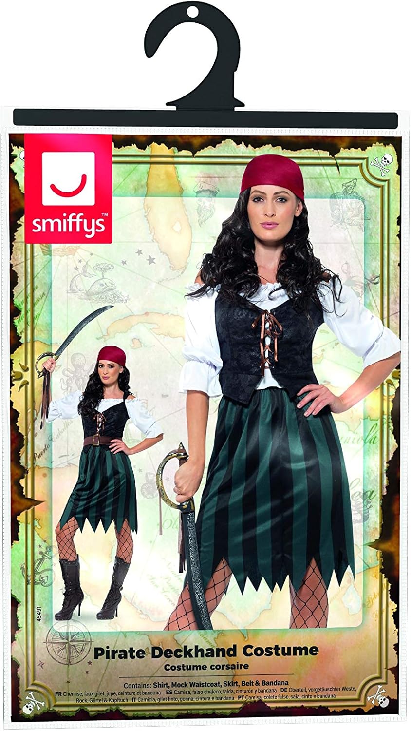 Include costume da pirata, blu con camicia, finto gilet, gonna, cintura e bandana. Si prega di notare che tutti i nostri prodotti Smiffys saranno sempre disponibili in confezione completa con marchio Smiffys