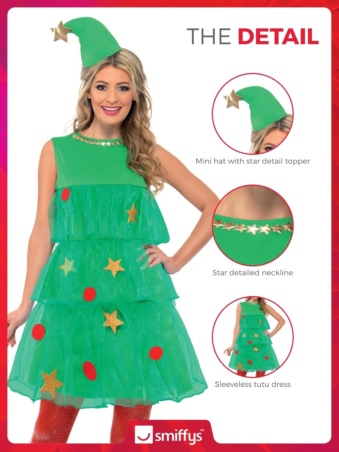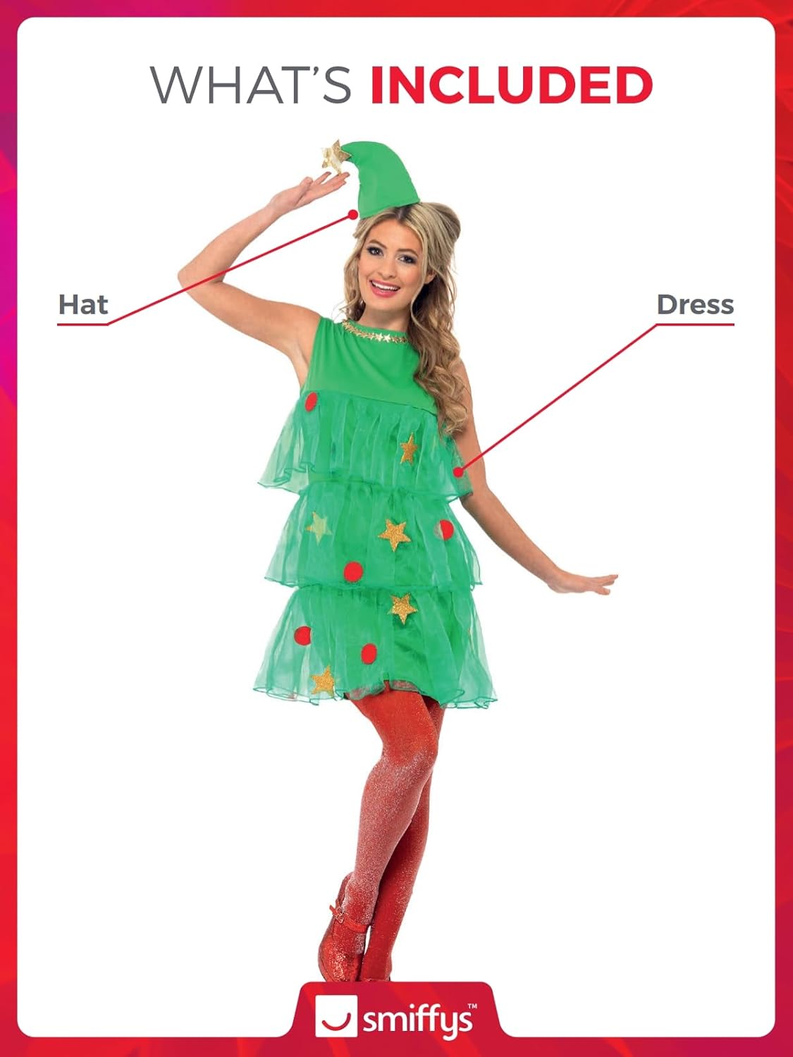 Includes Costume Albero di Natale, Verde, con abito e cappello. Si segnala che tutti i nostri prodotti saranno sempre imballaggi di marca Smiffys.