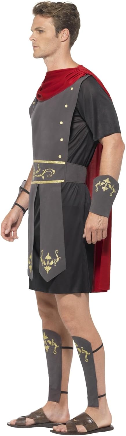 Costume da gladiatore romano da uomo di Smiffys. Include tunica con mantello, polsini e polsini attaccati. Sandali e spada non inclusi. Prodotto ufficiale Smiffys. . Riferimento: 45495L