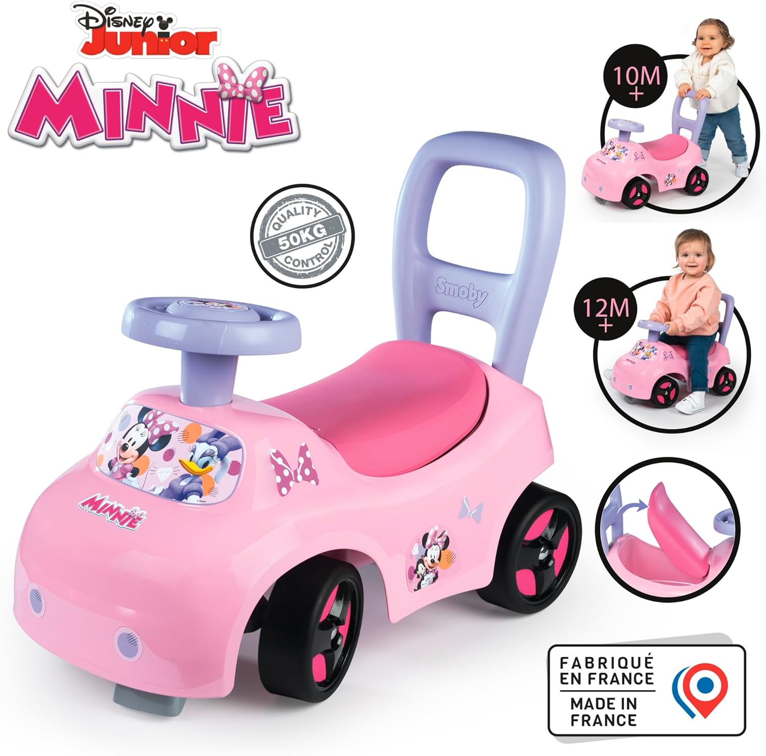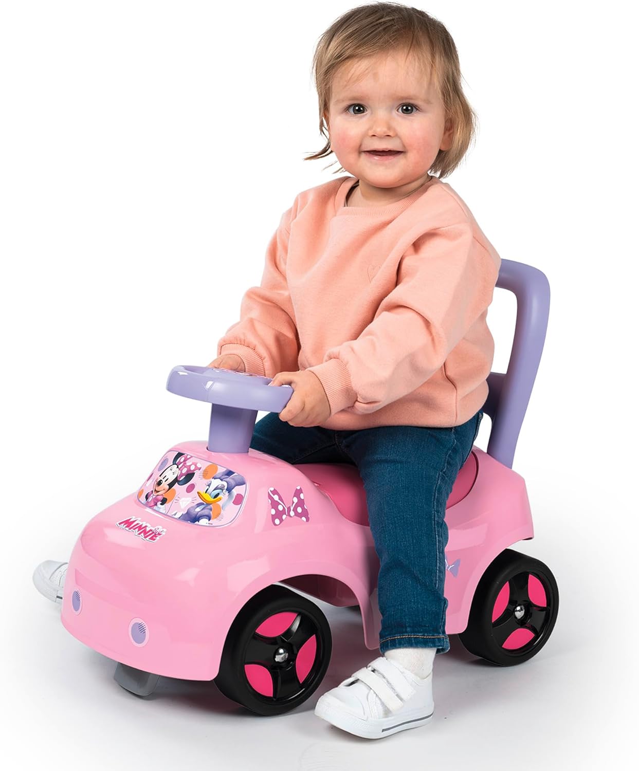 Piacere di guida sicuro: l'auto cavalcabile Smoby nell'incantevole design di Minnie Mouse è realizzata con materiali robusti e offre ulteriore sicurezza grazie alla protezione antiribaltamento sia nella parte anteriore che posteriore. Design ergonomico: Grazie al pratico supporto per la schiena, i bambini hanno una presa comoda mentre esercitano i primi passi. L'altezza ridotta del sedile facilita la salita e la discesa. Divertimento e interattività: il volante facile da impugnare con il divertente clacson favorisce l'interazione e l'eccitazione durante la guida. Il peso leggero dell'auto cavalcabile consente ai più piccoli di manovrare senza sforzo e di allenare le proprie capacità motorie in modo giocoso. Pratico spazio di archiviazione: il vano portaoggetti integrato sotto il sedile offre spazio sufficiente per i giocattoli preferiti dei tuoi bambini. Ciò significa che nessun giocattolo va perso e i più piccoli possono creare attivamente avventure con le loro cose e sviluppare la loro creatività. Qualità Smoby dal 1924 - Attraverso costanti controlli di qualità, molti anni di esperienza, l'utilizzo di materiali di alta qualità e impianti di produzione all'avanguardia, garantiamo giocattoli sicuri