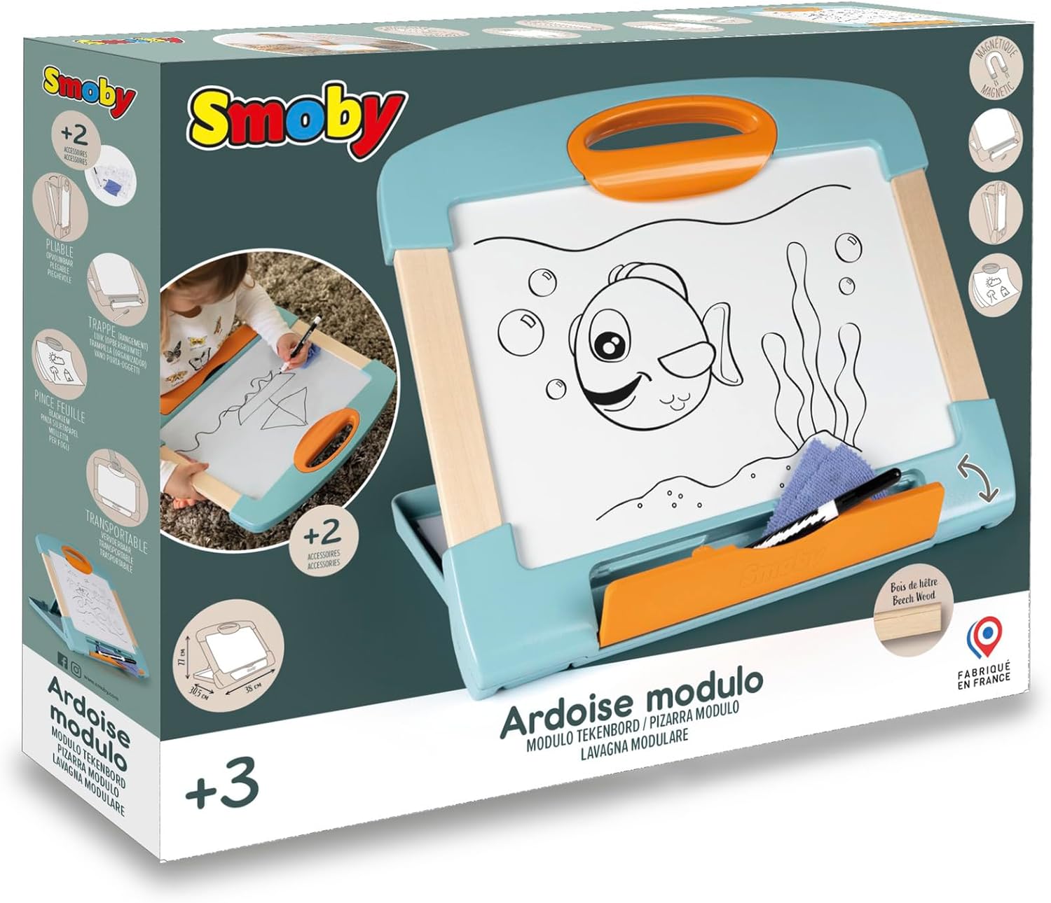 Design pratico: la lavagna dispone di un pratico vano portaoggetti che offre spazio sufficiente per accessori come penne e carta, nonché di una clip a morsetto che fissa saldamente i documenti e garantisce l'ordine. Ciò mantiene tutto in un unico posto e a portata di mano. Promuove le abilità: il tavolo da pittura Smoby supporta lo sviluppo delle capacità motorie e promuove la creatività del tuo bambino. Perfetto per i bambini dai 3 anni in su, offre infinite possibilità di apprendimento giocoso e divertimento creativo. Sicurezza duratura: i materiali robusti con cui è realizzata la tavola garantiscono un'elevata resistenza agli urti e un'elevata durata. Ciò lo rende perfetto per l'uso a casa e in viaggio, così tuo figlio può giocare e imparare ovunque. Qualità Smoby dal 1924: Garantiamo la sicurezza dei giocattoli attraverso impianti di produzione all'avanguardia, materiali di alta qualità e costanti controlli di qualità. Dai 3 anni. Manifattura francese.