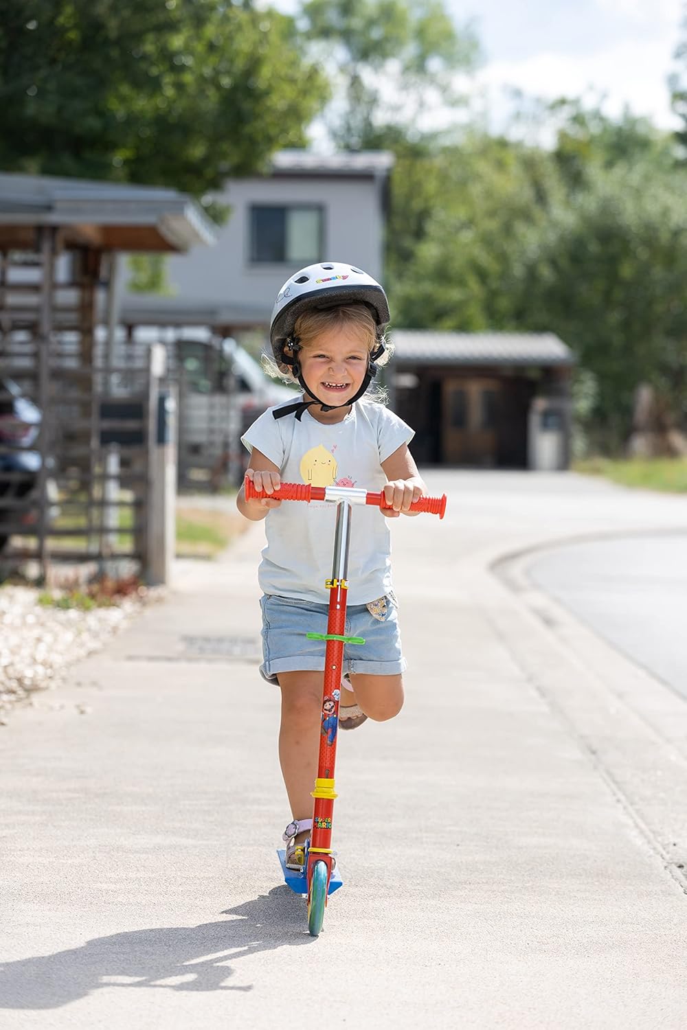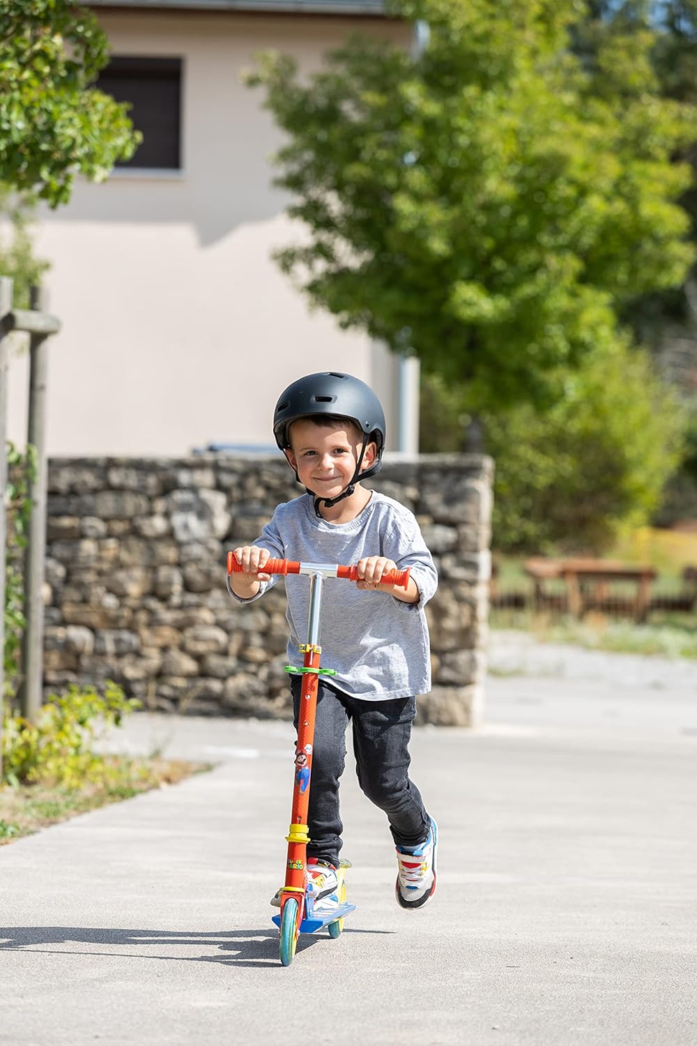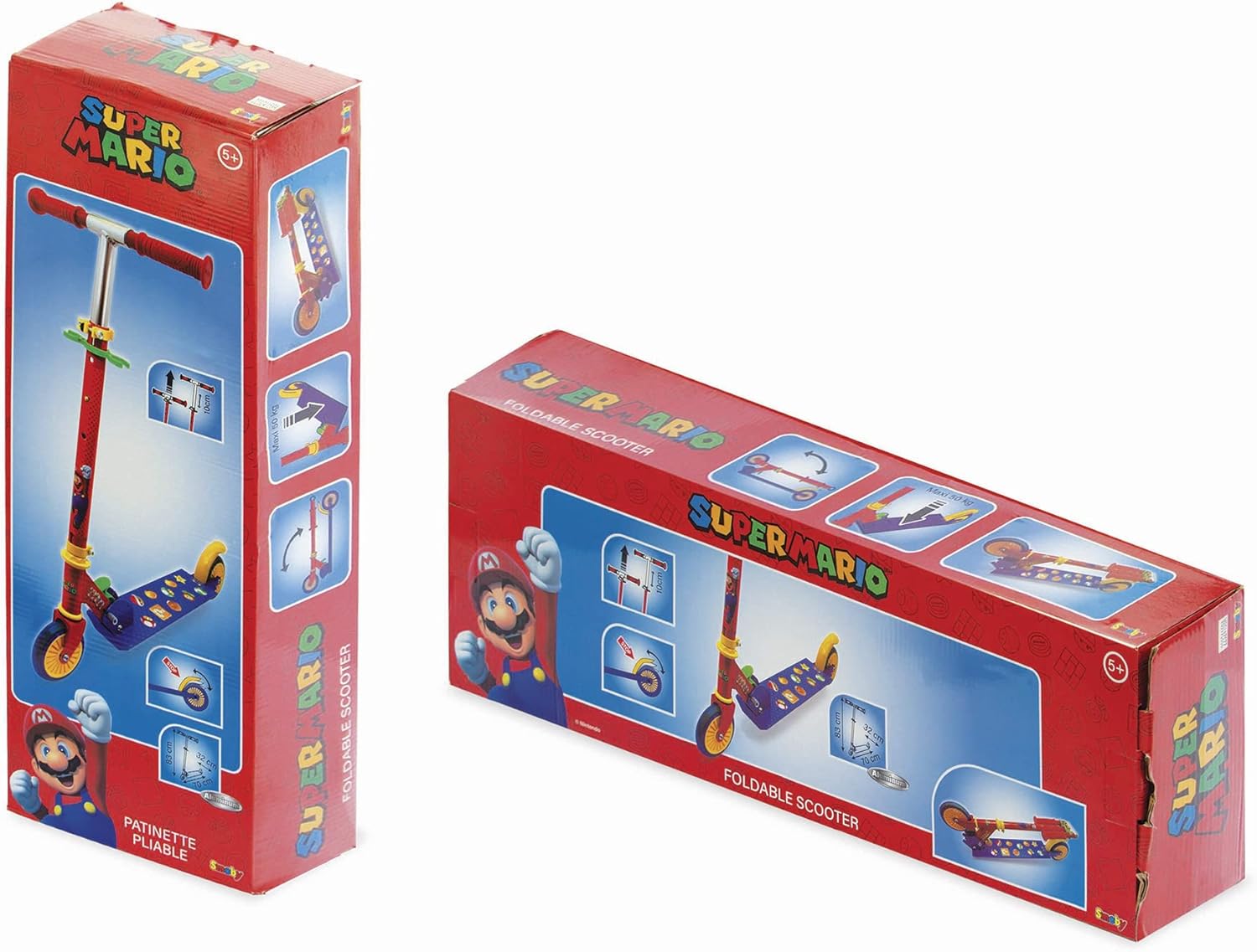 Monopattino pieghevole a due ruote in alluminio, licenza ufficiale Super Mario Con pedana antiscivolo, freno posteriore e manubrio regolabile in tre altezze (73/78/83 cm) Ruote silenziose traslucide con cuscinetti a sfera ABEC-5