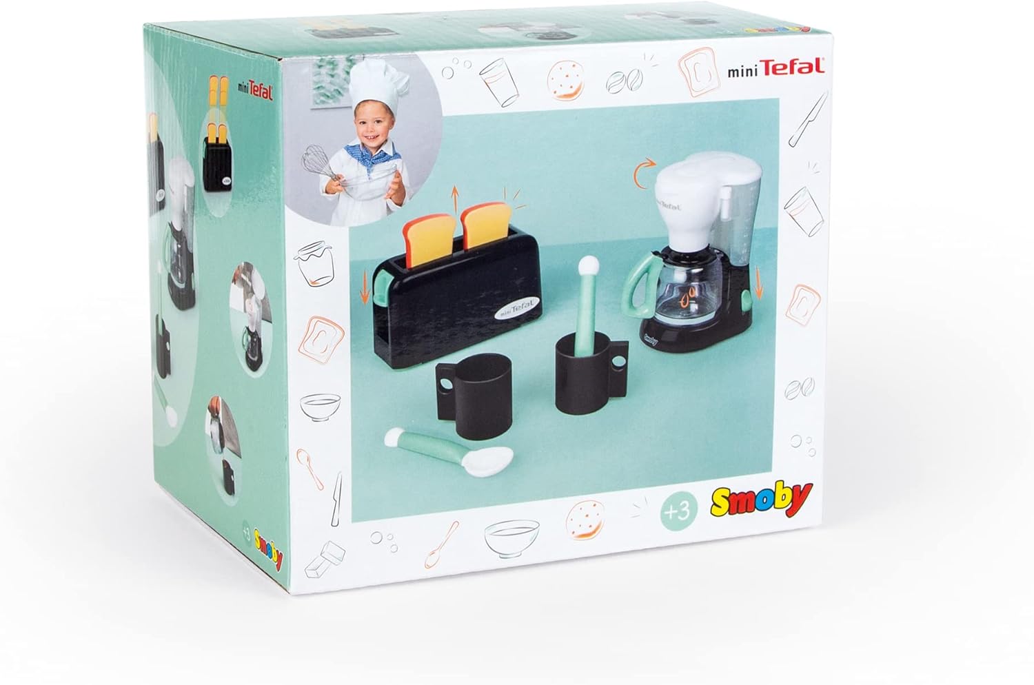 GIOCO DA CUCINA: Con questi accessori per elettrodomestici Tefal potrai preparare deliziose colazioni! MACCHINA PER IL CAFFÈ: È possibile preparare il caffè utilizzando la macchina per l'espresso. È dotato di una caraffa anti-goccia rimovibile, di un portafiltro girevole, di un sistema anti-goccia e di un serbatoio per l'acqua. Basta aggiungere acqua al serbatoio e premere il pulsante della pompa per vedere il caffè scorrere! TOSTAPANE: Con il tostapane puoi preparare deliziosi toast! Inserisci i toast all'interno, verranno espulsi automaticamente dopo pochi secondi! TAZZE: Non devi far altro che versare il caffè nelle tazze incluse e servire la colazione! Dai 3 anni