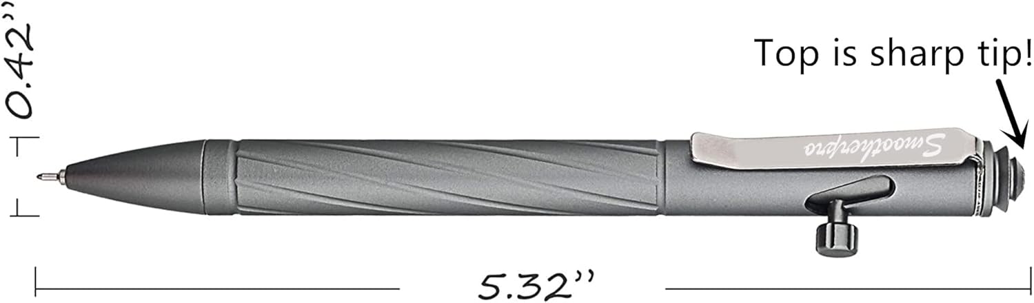 COSTRUZIONE ROBUSTA: Realizzata in robusta lega di alluminio aeronautico 6061 con clip in acciaio inossidabile, questa penna è trattata termicamente in T6 per una resistenza superiore; questa penna in metallo è robusta e infrangibile per lunghe sessioni di scrittura; anodizzata duramente secondo la norma ASTM B580-79 per prestazioni durature nell'uso quotidiano dopo la lavorazione CNC, e tutti i bordi sono ben lucidati. RICARICA: Questa penna in metallo imbullonata è precaricata e compatibile con pennini in metallo, diametro del filo da 0,5 mm e ricariche ad ago o in metallo, compatibile anche con le ricariche Zebra (P-RJF5), offrendoti un'esperienza di scrittura eccezionale. FIDGET FUNZIONE: Azione del bullone super scorrevole (bullone preapplicato, ma se si notano segni di bullone allentato, aggiungere un po' di colla per filetti alla filettatura del bullone) Il bullone è progettato per ritrarre il refill per evitare di sporcare il taschino, il quaderno o lo zaino con l'inchiostro gel; Inoltre, l'azione del bullone è un ottimo gadget che aiuta ad alleviare lo stress quando ci si sente stressati nella progettazione o nel lavoro quotidiano. ELEGANTE PENNA REGALO PER UOMINI E DONNE: ottimo set regalo per professionisti all'aperto, famiglia, amici, EDC e penne multiuso per collezionisti; La qualità di lavorazione, maneggevolezza, design, materiali e altri dettagli sono di prim'ordine e Super facile da usare , questa penna ti distinguerà quando scrivi in pubblico ed è uno strumento di backup ideale in macchina o nello zaino. MARCHI DI CUI CI SI PUÒ FIDARE: Cercate su Amazon altre nostre penne, come penne lavorate a CNC, penne in titanio, penne in ottone, penne in fibra di carbonio, penne stilografiche e altre penne uniche. I nostri designer sono professionisti dell'outdoor e i nostri prodotti sono progettati in base alle esigenze e alle richieste reali; allo stesso tempo, ascoltiamo i nostri clienti ogni giorno e offriamo soluzioni ai loro problemi di volta in volta; la vostra opinione è molto importante per noi!