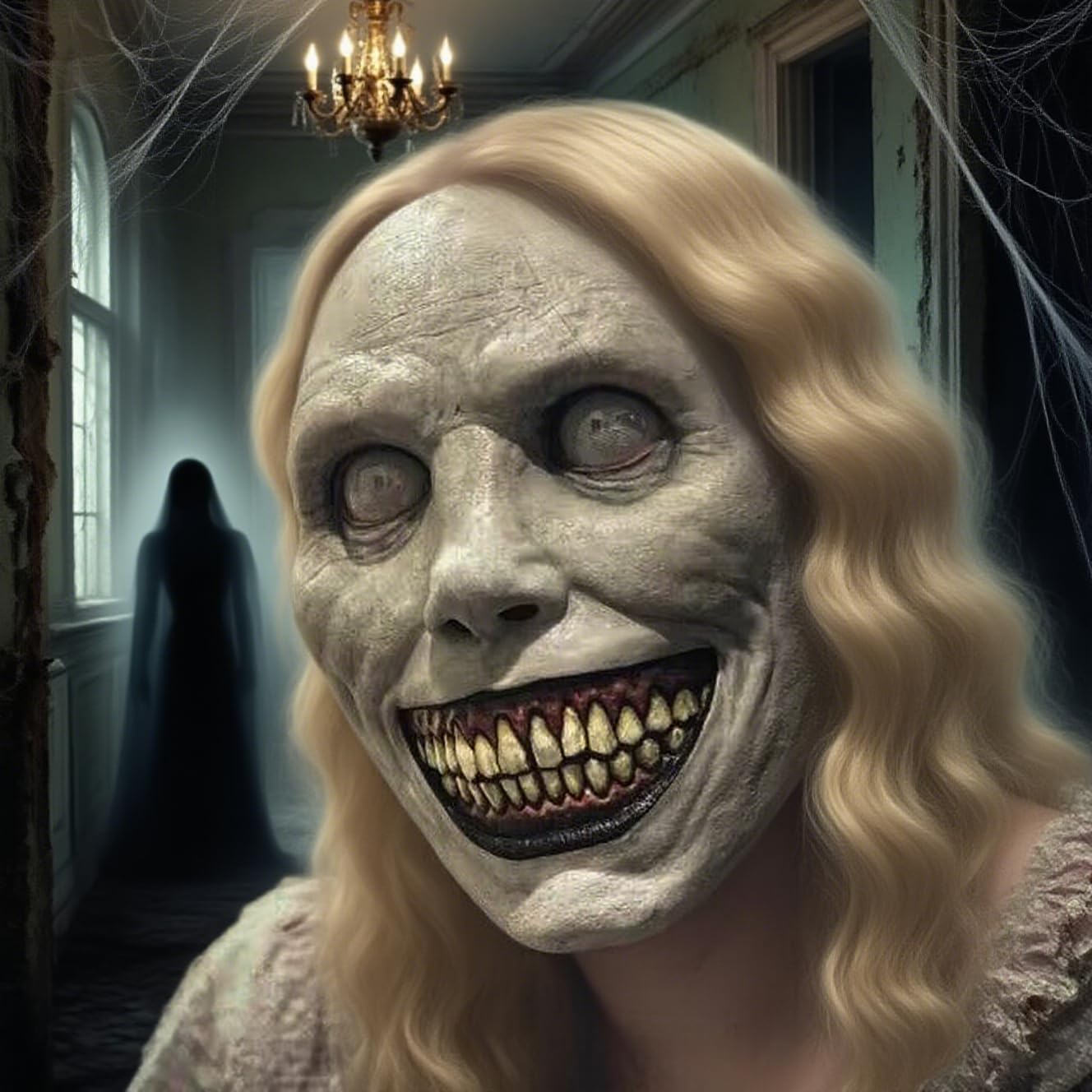 SNZ Maschera di Halloween Spaventosa Estrema - Maschera da Demone Bianco in Lattice Naturale, Traspirante e Delicata sulla Pelle per Adulti (Festa, Carnevale, Costume)