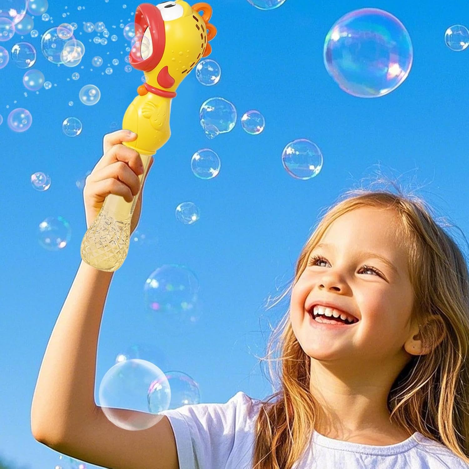 Bastone per bolle di gallina colorata: un'affascinante bolla con simpatico motivo pulcino, una tavolozza di colori vivaci e dettagli curati per un maggiore divertimento per i bambini Ricarica ecologica: l'asta blu di pollo ricaricabile tramite USB elimina la sostituzione della batteria, con tecnologia della batteria sicura a lunga durata e buon design per allenamenti di gioco estesi all'aperto Esperienza di gioco piacevole: l'asta a bolle tenuta a mano consente una facile maneggevolezza grazie al design ergonomico, supporta lo sviluppo della prima infanzia attraverso il gioco interattivo con meccanismo di funzionamento leggero A Esperienza di gioco sicura: le superfici lisce e i bordi arrotondati del materiale ABS garantiscono un piacere di gioco sicuro, mentre la forma resistente offre un divertimento duraturo senza rischio di rottura Gioco di bolle migliorato: il sistema di spruzzatura a più fori produce numerose bolle e favorisce lo sviluppo dei sensi mentre stimola i bambini di tutte le età a giocare allegramente e fantasioso