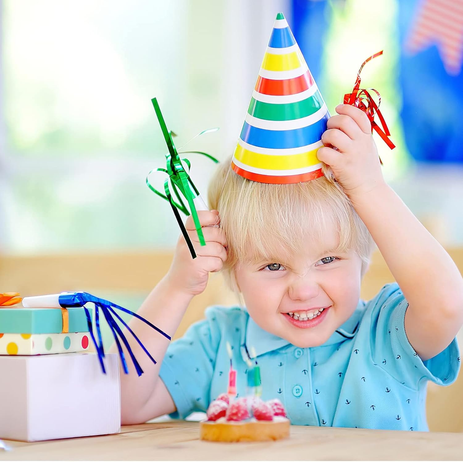 Materiale: questi produttori di rumore con frange metalliche glitterate sono realizzati in plastica e carta di qualità, sicuri e non tossici al tatto, non facili da rompere o strappare Colore: rosso, rosa caldo, blu, giallo, argento, verde, ogni colore 6 pezzi, totale 24 pezzi Dimensioni: ogni esplosione musicale ha un diametro di circa 6,5 pollici e 6,5 pollici Caratteristica: le nappe in alluminio di queste esplosioni musicali vibreranno furiosamente e rapidamente, il che può formare suoni interessanti ed effetti visivi gioiosi Ampia applicazione: questi produttori di rumore di laurea possono produrre suoni divertenti e allegri e ravvivare l'atmosfera della festa, possono essere applicati per decorare feste di Capodanno, feste di Natale, feste di compleanno, baby shower, addio al nubilato, celebrazioni e altre feste.