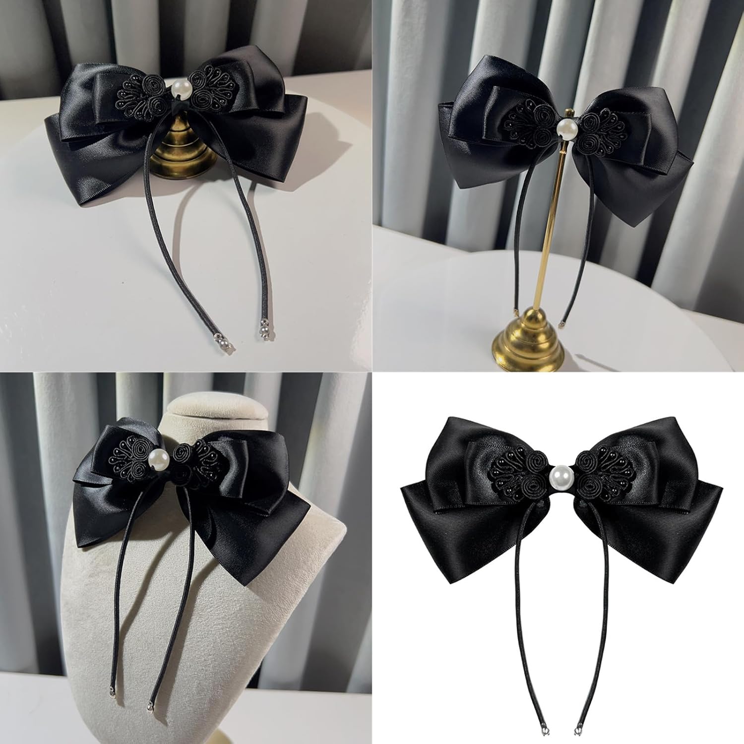 Caratteristiche: I tuoi stili con la cravatta a fiocco da donna, presentano un design vintage con nodi cinesi decorati con perle, ideali per aggiungere eleganza a qualsiasi outfit. dal tessuto, questo papillon pre-legato misura 14,5 x 16 cm, garantendo una vestibilità comoda pur mantenendo il suo aspetto sofisticato. Progettato per le donne alla moda che apprezzano entrambi gli stili e, questo papillon è ideale per chi partecipa a occasioni formali o eventi speciali. Che si tratti di un matrimonio, ballo di fine anno, cena elegante o evento cosplay, questo papillon completa abiti, camicia, abiti e molto altro ancora, migliorando il fascino dei tuoi ensemble. La combinazione di perle e morbido tessuto di raso rende questa cravatta un accessorio squisito, fondendo senza sforzo disegni classici con fascino moderno per ogni occasione. Specifiche tecniche: Componente: Panno Cravatta Colore: Nero Dimensioni: ca. 14,5 x 16 cm. Quantità: 1 pezzo. Nota: Si prega di considerare un margine di errore di 1-3 cm dovuto alla misurazione Si prega di assicurarsi che non sia un problema prima di effettuare l'ordine. A causa delle differenze tra i diversi monitor, l'immagine potrebbe non riflettere esattamente il colore dell'articolo. La confezione include: 1 papillon.