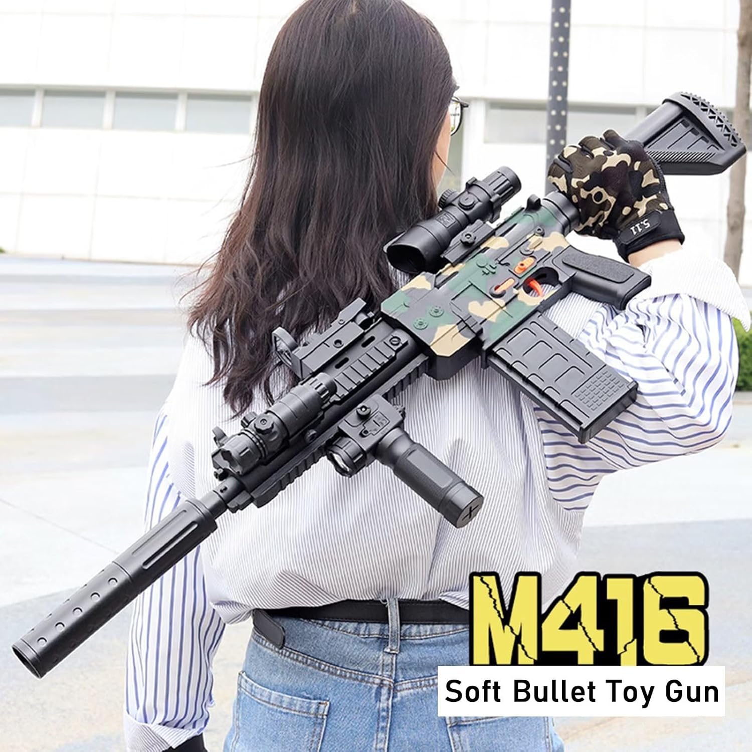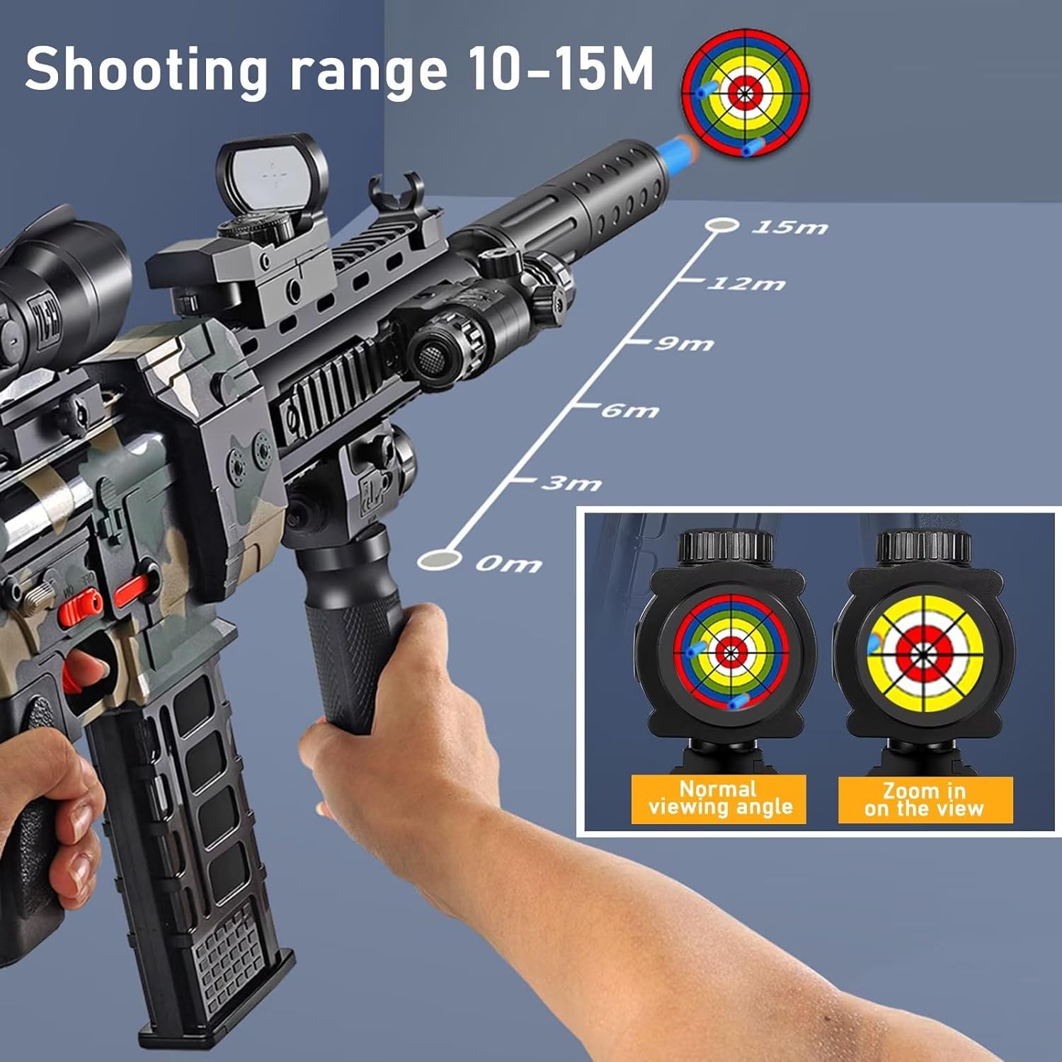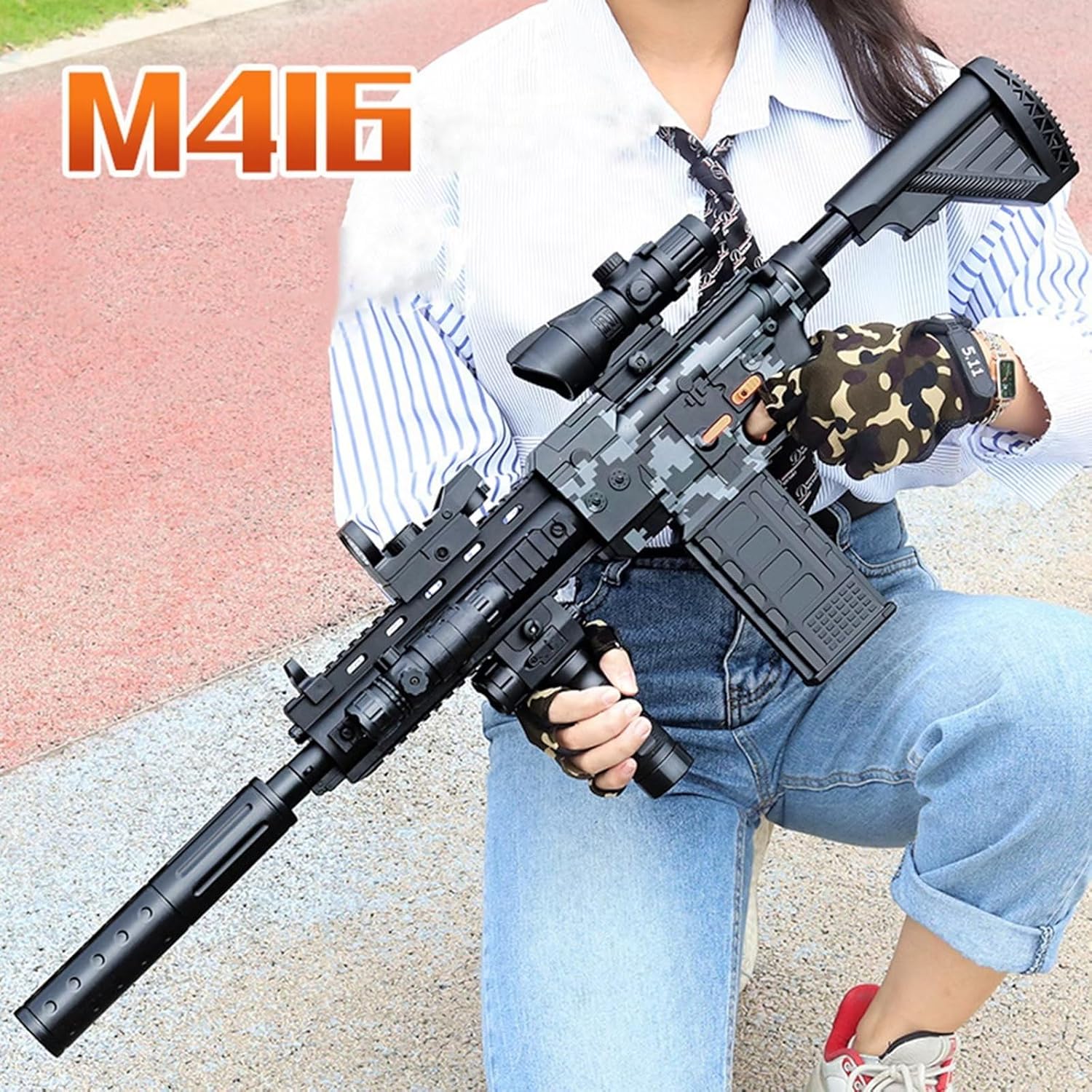 Sicuro e semplice: la pistola giocattolo è realizzata in plastica ABS ecologica. La pistola giocattolo EVA Soft Bullet è un robusto giocattolo in materiale. Non danneggerà il bambino. Una morbida bomba dardo fatta di morbida schiuma. La palla di schiuma leggera non danneggia il corpo umano, basta mettere la palla nella pistola giocattolo per iniziare il gioco. Tiro preciso: la pistola giocattolo M416 con cannocchiale e 10 proiettili. Proiettili in schiuma morbida EVA per sparare proiettili.Giocattolo di allenamento ideale per i giochi di tiro. È un'ottima forma di intrattenimento, perfetta per compleanni, vacanze, battaglie all'aperto, CS sul campo, giochi di squadra e altro ancora.Dai ai bambini una sensazione realistica di CS Game. Struttura della batteria aggiornata: abbiamo aggiornato la struttura del blaster elettrico a proiettili morbidi e l'impugnatura della batteria è installata sul retro del blaster in schiuma giocattolo. Più sicuro e più sicuro per i tuoi ragazzi e ragazze. La batteria è ricaricabile tramite USB (5V/1A). Ultra Long Range: il soft bullet blaster M416 ha una portata dritta di circa 40-50 piedi (10-15 M). Con l'aiuto del mirino, puoi usare il tiro preciso e il caricamento manuale per colpire il centro del bersaglio. Stile di caricamento classico, spara come un vero cecchino e giochi.Divertiti a sparare a lunga distanza.Puoi anche fai da te i binari tattici blaster staccabili. Idea regalo: Soft Bullet Gun è il miglior compleanno, spiaggia estiva, giardino, festa, regalo di Natale o battaglia di squadra CS, attività indoor / outdoor Ideali e per i bambini, stimolando i bambini a esplorare la gioia del tiro e allenare le capacità motorie!