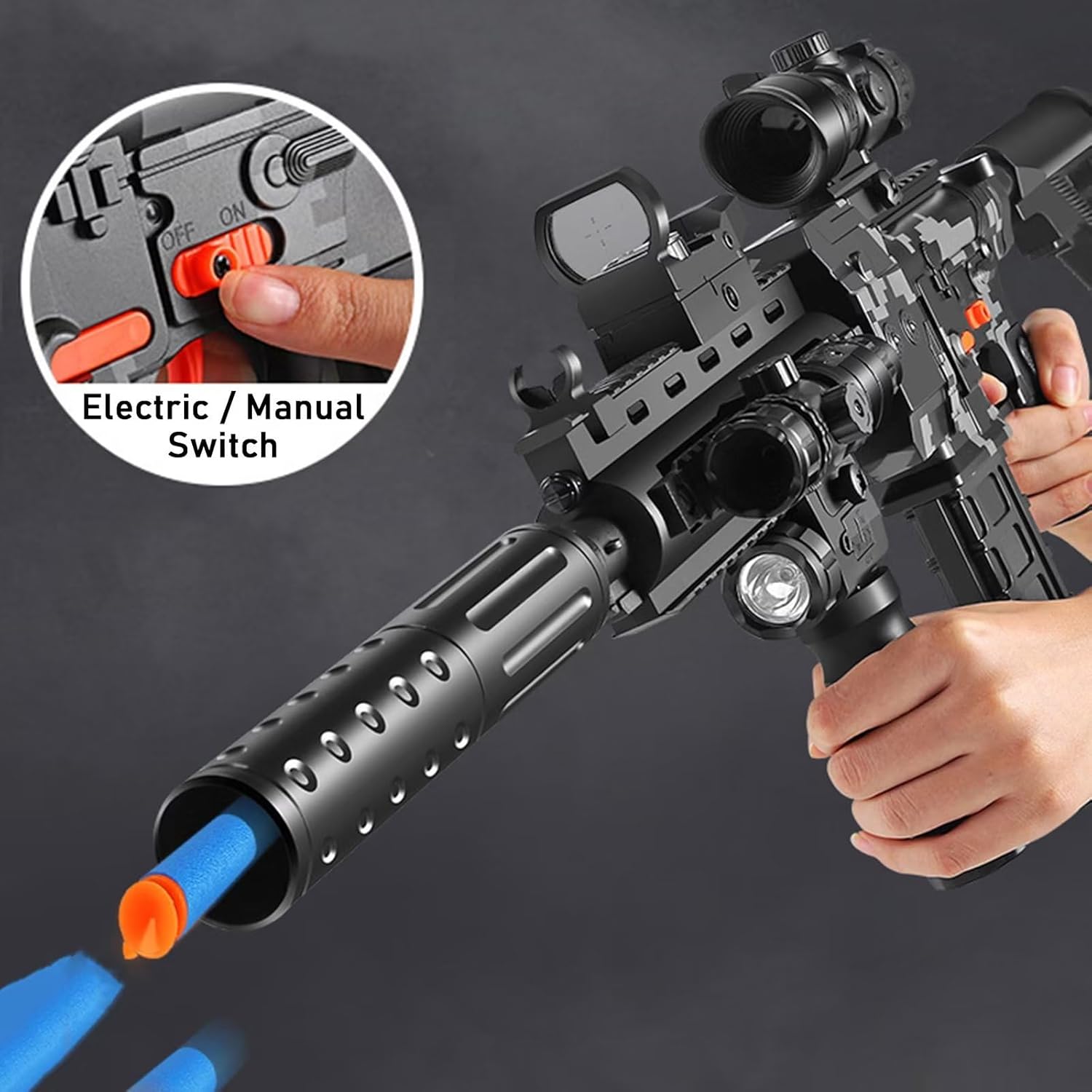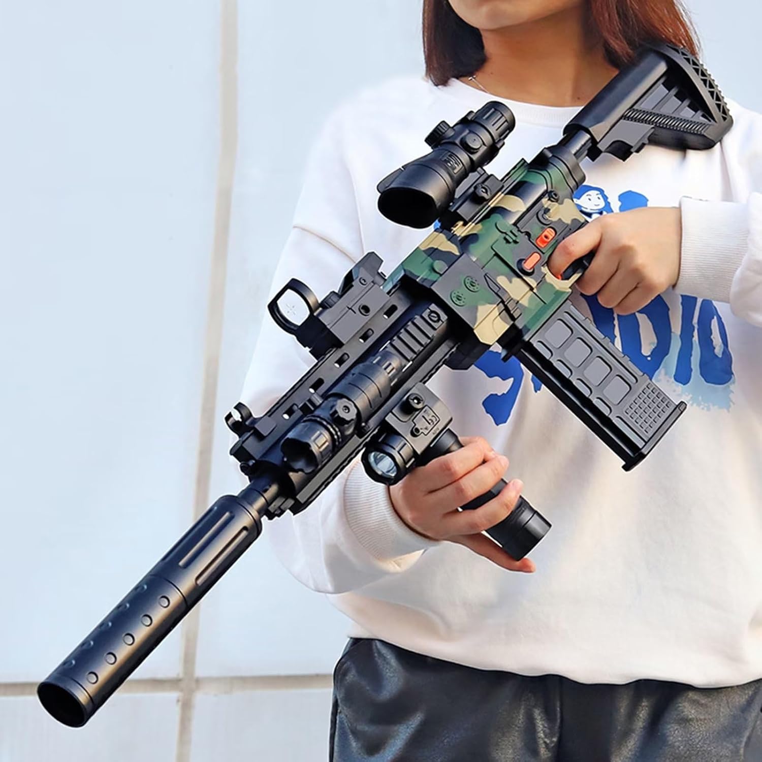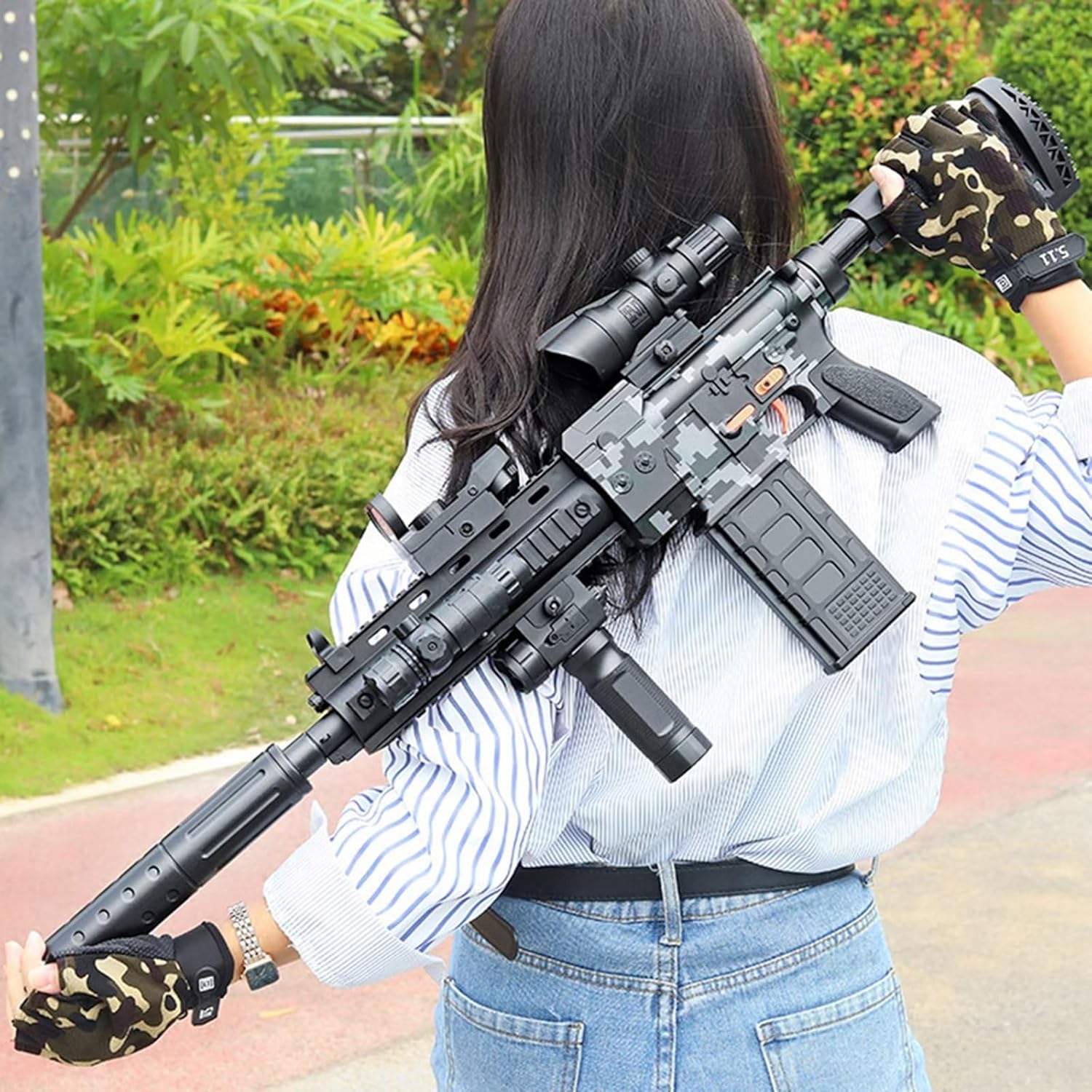 Sicuro e semplice: la pistola giocattolo è realizzata in plastica ABS ecologica. La pistola giocattolo EVA Soft Bullet è un robusto giocattolo in materiale. Non danneggerà il bambino. Una morbida bomba dardo fatta di morbida schiuma. La palla di schiuma leggera non danneggia il corpo umano, basta mettere la palla nella pistola giocattolo per iniziare il gioco. Tiro preciso: la pistola giocattolo M416 con cannocchiale e 10 proiettili. Proiettili in schiuma morbida EVA per sparare proiettili.Giocattolo di allenamento ideale per i giochi di tiro. È un'ottima forma di intrattenimento, perfetta per compleanni, vacanze, battaglie all'aperto, CS sul campo, giochi di squadra e altro ancora.Dai ai bambini una sensazione realistica di CS Game. Struttura della batteria aggiornata: abbiamo aggiornato la struttura del blaster elettrico a proiettili morbidi e l'impugnatura della batteria è installata sul retro del blaster in schiuma giocattolo. Più sicuro e più sicuro per i tuoi ragazzi e ragazze. La batteria è ricaricabile tramite USB (5V/1A). Ultra Long Range: il soft bullet blaster M416 ha una portata dritta di circa 40-50 piedi (10-15 M). Con l'aiuto del mirino, puoi usare il tiro preciso e il caricamento manuale per colpire il centro del bersaglio. Stile di caricamento classico, spara come un vero cecchino e giochi.Divertiti a sparare a lunga distanza.Puoi anche fai da te i binari tattici blaster staccabili. Idea regalo: Soft Bullet Gun è il miglior compleanno, spiaggia estiva, giardino, festa, regalo di Natale o battaglia di squadra CS, attività indoor / outdoor Ideali e per i bambini, stimolando i bambini a esplorare la gioia del tiro e allenare le capacità motorie!