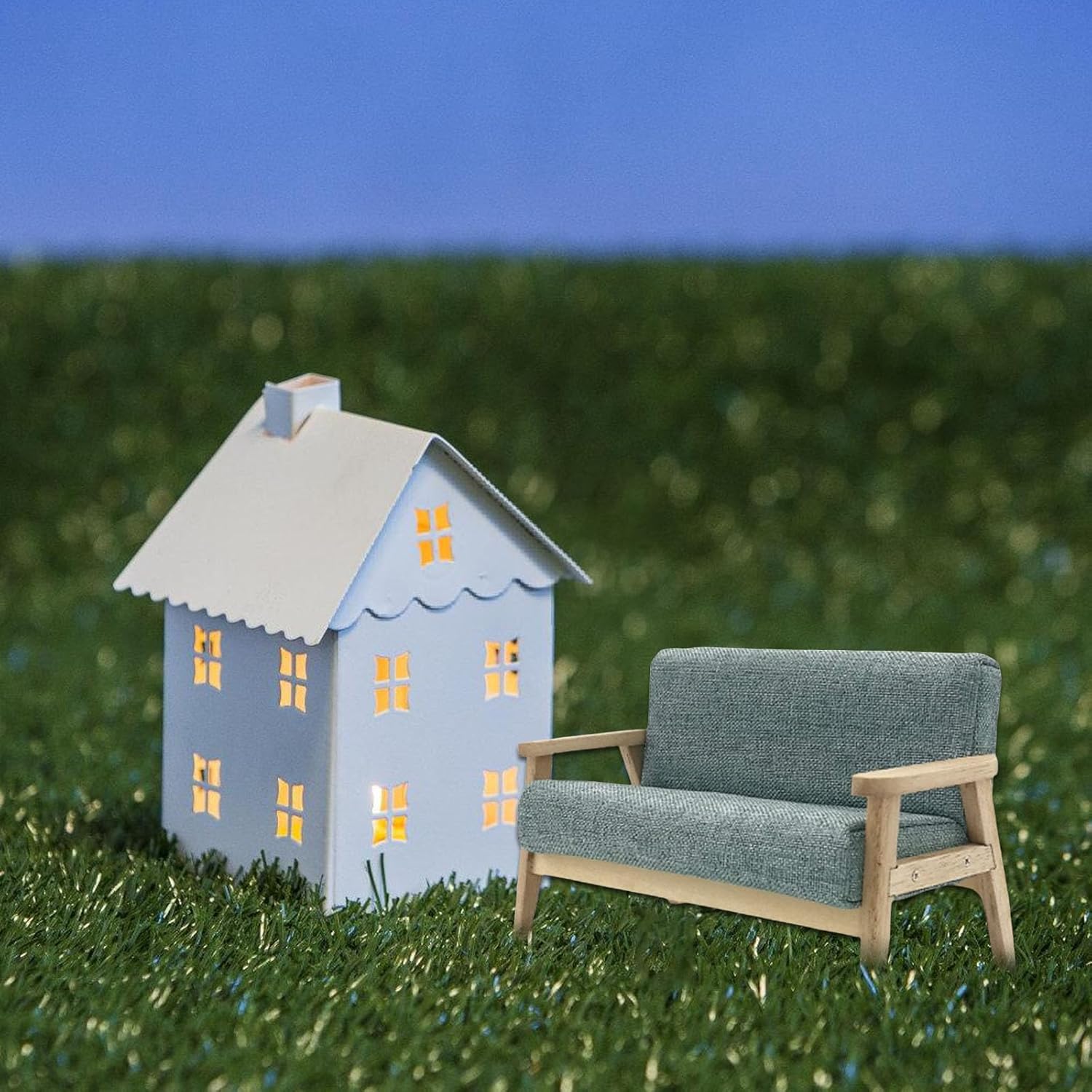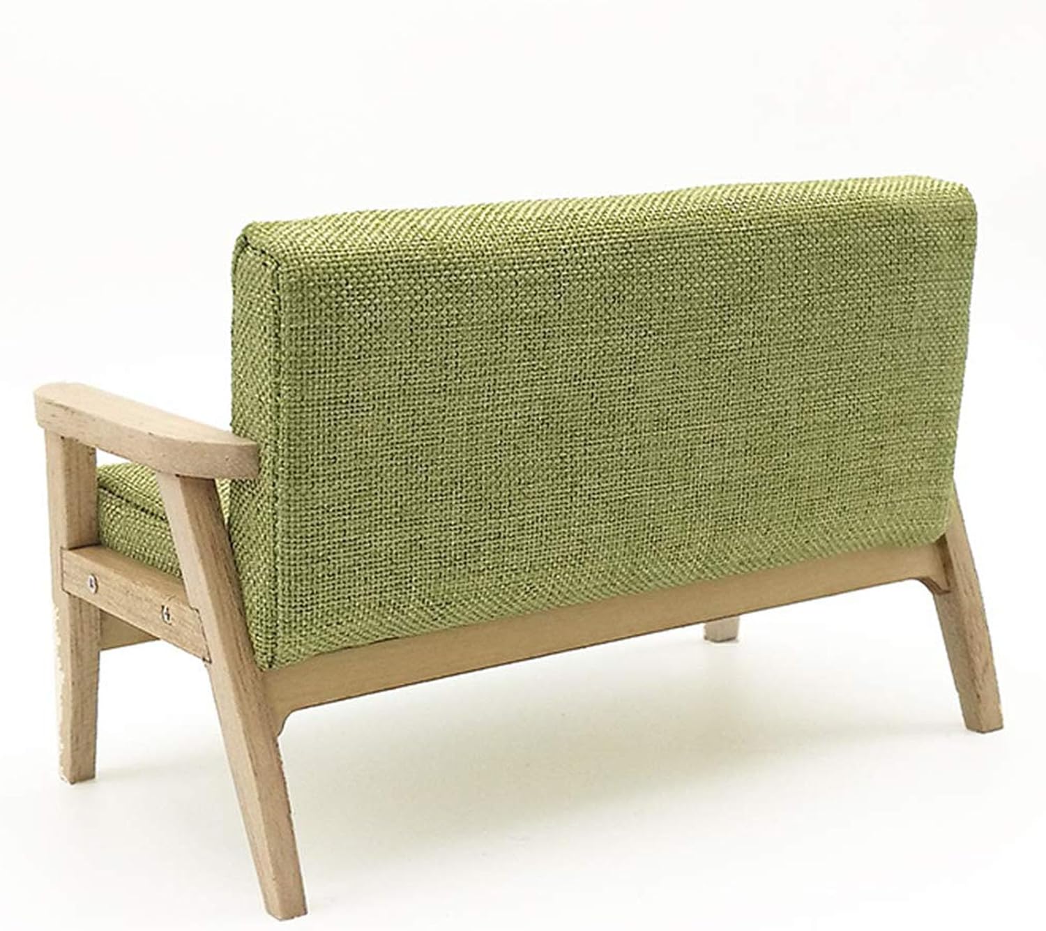 Realizzato con materiali in legno, questo divano visivamente accattivante è un regalo molto divertente per coloro che amano i decoratori di case delle bambole, modelli dall'aspetto eccellente molto vicino alla realtà. Ottimi oggetti di scena fotografici, materiali in legno. Non facile da deformare, innocuo Modello di divano dettagliato e vintage, compatto e classico, studio ad alta riduzione