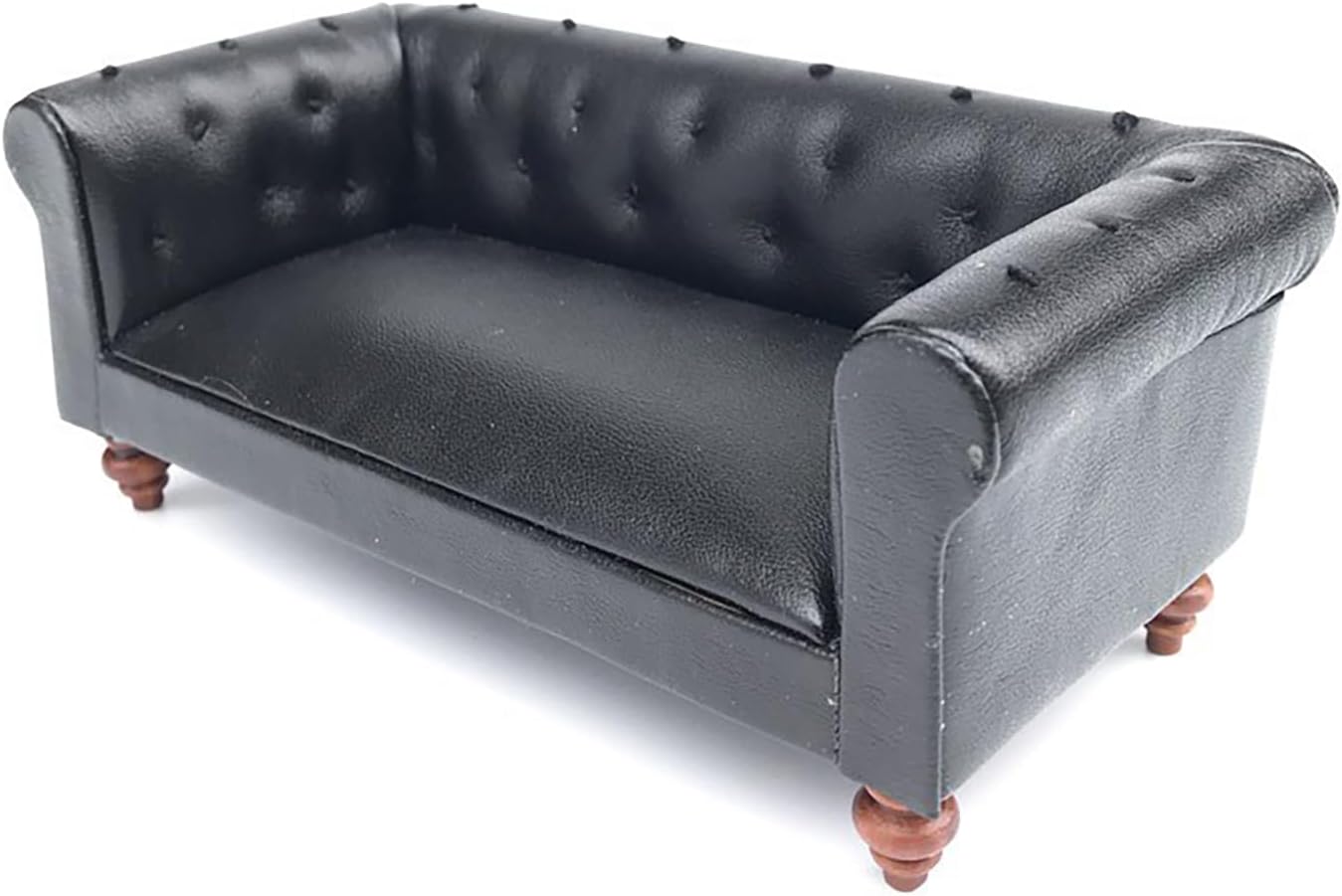 ottimo modello dall'aspetto molto vicino alla realtà. Ottimi oggetti di scena fotografici realizzati in legno e materiali in pelle artificiale, questo divano visivamente accattivante Modello di divano dettagliato e vintage, compatto e classico, studio ad alta riduzione è un regalo molto divertente per coloro che amano i materiali in legno per i decoratori di case delle bambole. Non facile da deformare e innocuo