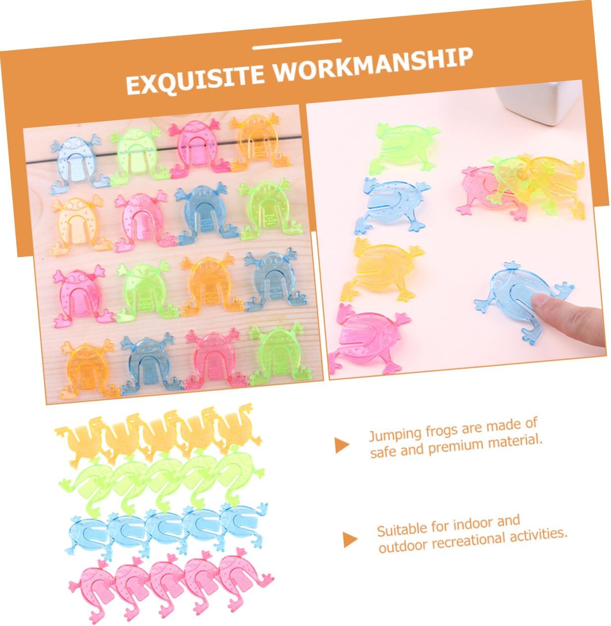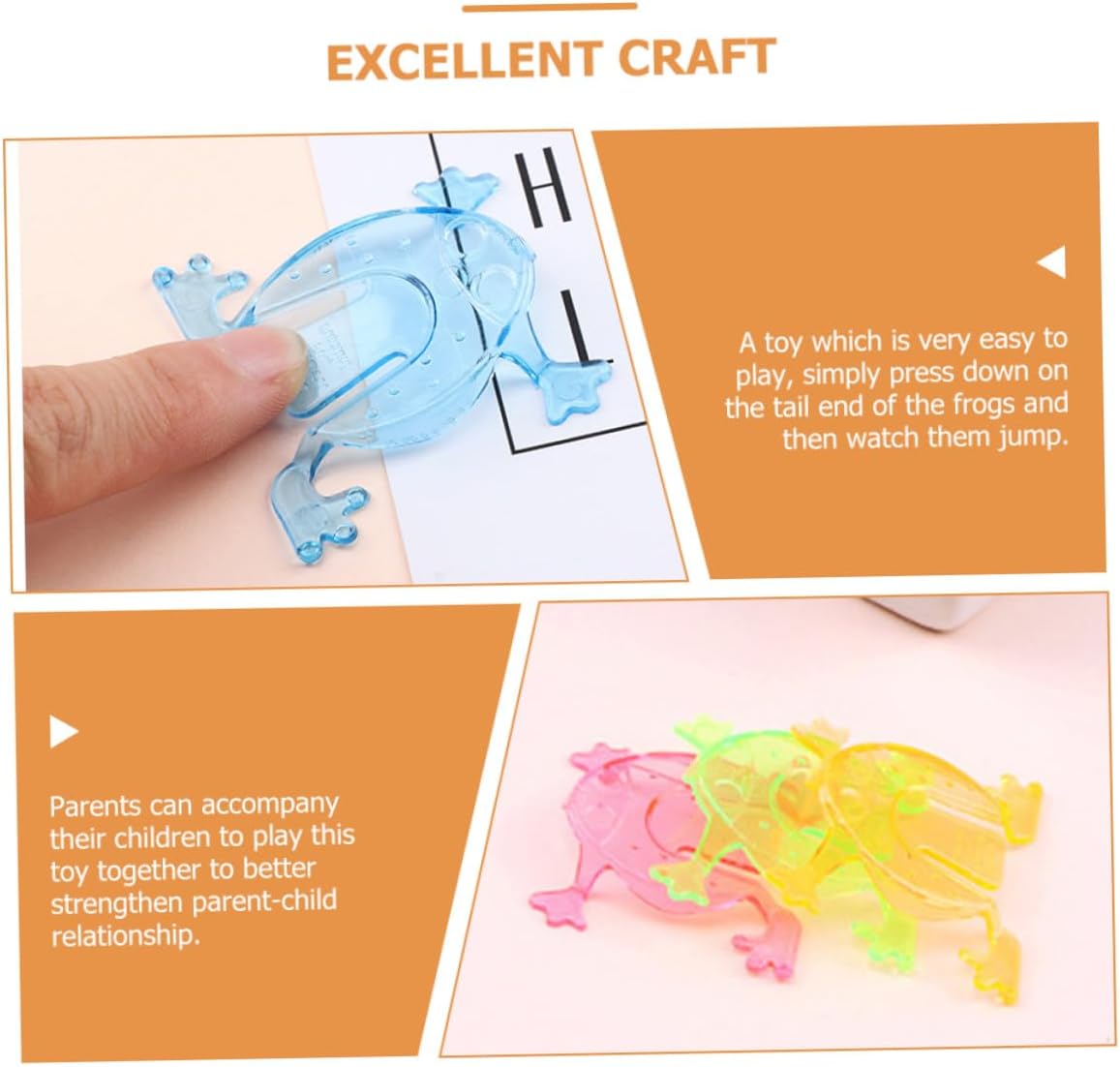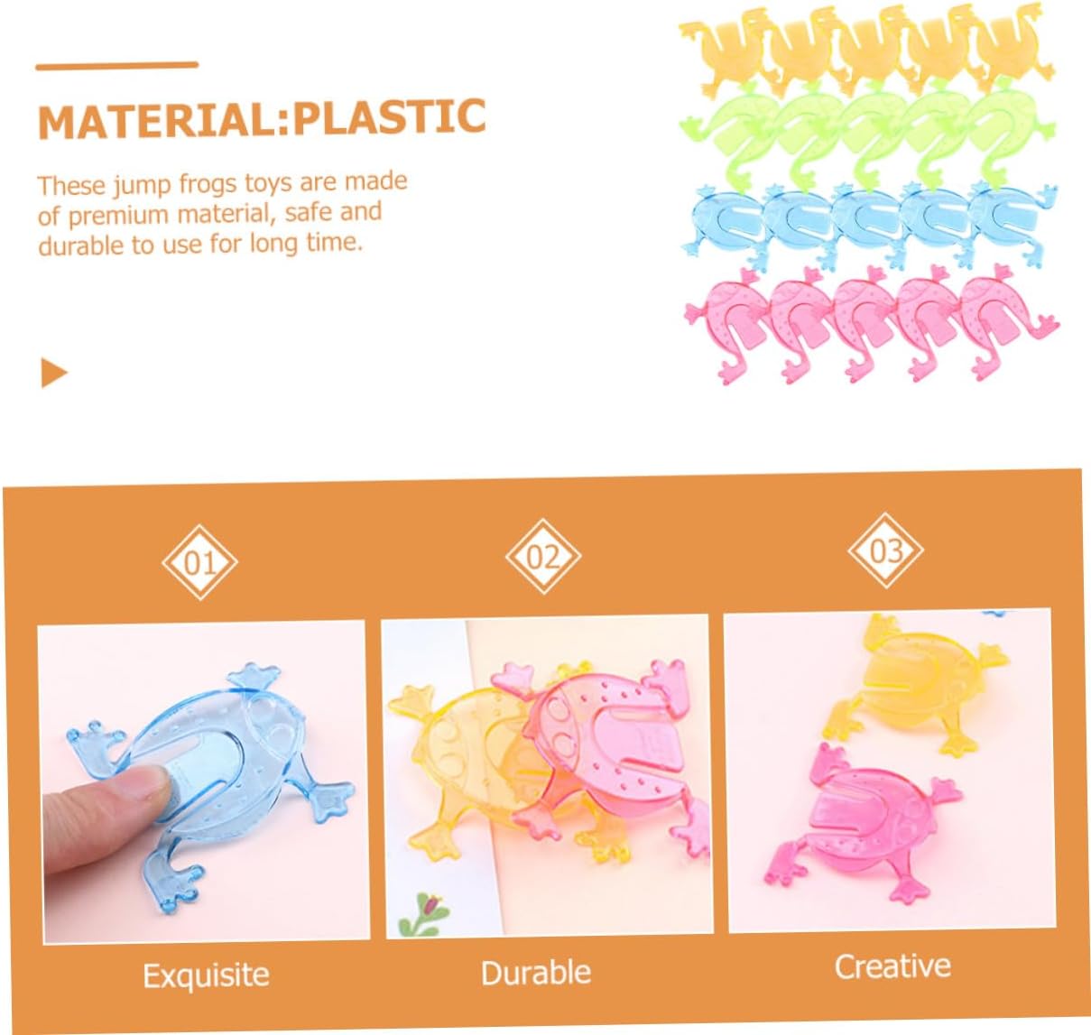 Rane giocattolo per: metterle nello scrigno del tesoro della classe, organizzare una gara di salto delle rane e festeggiare con i tuoi studenti, condividere molti più sentimenti di felicità, rana giocattolo in plastica interattiva per: i genitori possono accompagnare i loro a lavorare insieme e rafforzare così la relazione genitore-figlio. giocattoli a forma di rana per bambini piccoli Rana giocattolo per: può essere ampiamente utilizzata per scatole didattiche, sacchetti regalo, interazione in classe, feste, come riempitivo per sacchetti e così via, Rane rimbalzanti Premi giocattoli: sorprendi i bambini inserendoli in regali e usandoli come premi per mini giochi ecc., Giochi a forma di rana per bambini Rane saltatrici in plastica: un giocattolo con cui puoi facilmente. Basta premere l'estremità della coda e guardarli saltare. divertenti giocattoli di rana che salta