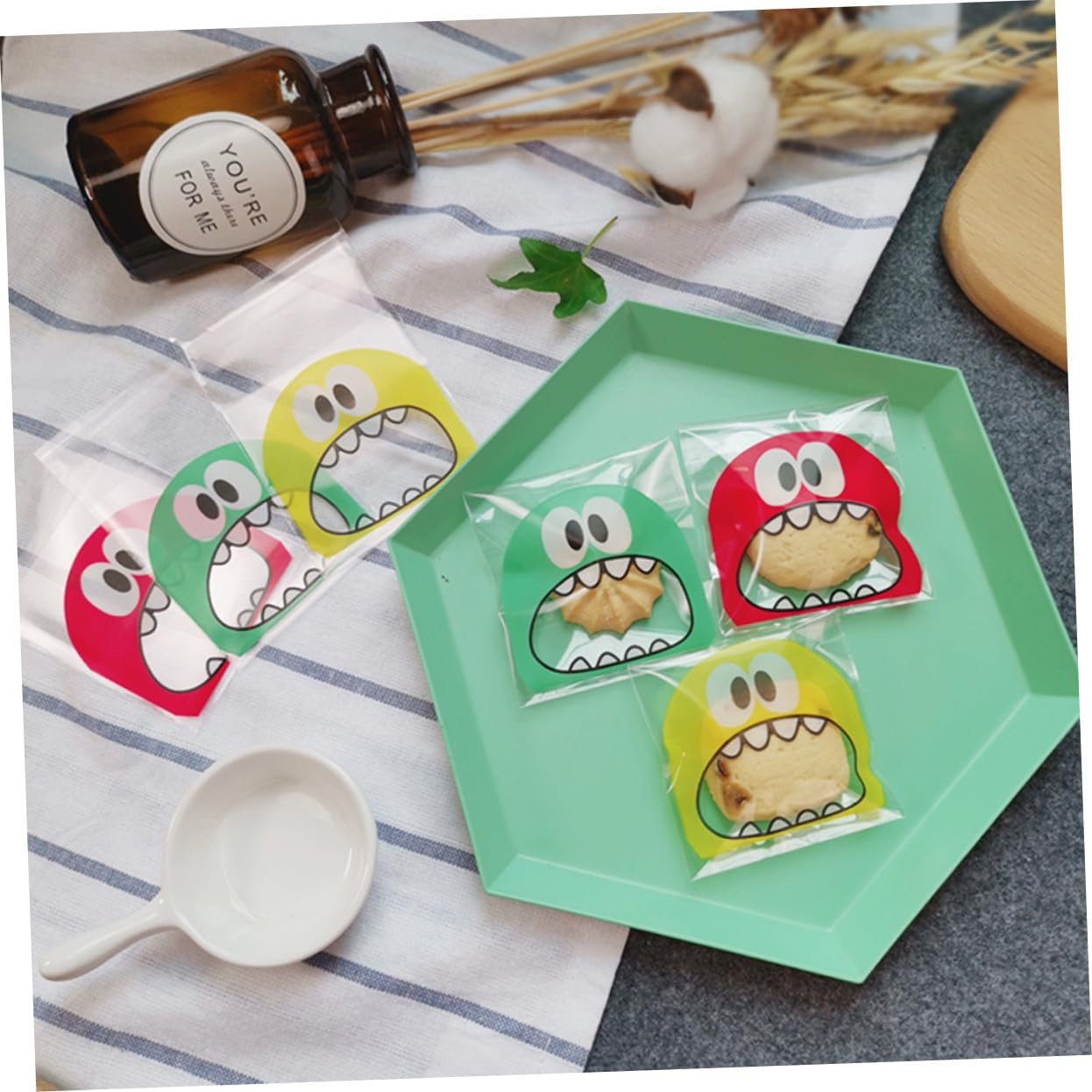 Buste per dolcetti - Adatte come regalo di nozze, regalo per feste, laurea, per confezionare biscotti singoli e conservazione quotidiana degli alimenti, buste per biscotti decorative. Confezione per buste per biscotti - Forniscono dolci e aspetto. Sacchetti di carta per biscotti Sacchetti per imballaggio di biscotti - il design dei cartoni animati attira l'attenzione dei bambini, sacchetti per imballaggio di biscotti biscotti da forno autoadesivi snack - modello a bocca aperta aggiungi un tocco di divertimento, sac à poche Sacchetti per biscotti autosigillanti - adatti per confezionare biscotti, caramelle, cioccolato, involucri di caramelle per dolci fatti in casa