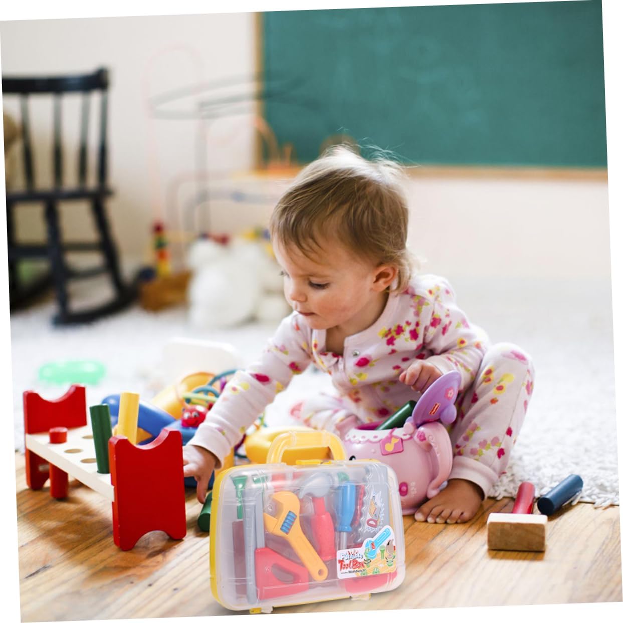 Giocattoli da laboratorio: aiutano i piccoli a sviluppare la destrezza fisica e la coordinazione occhio-mano, le capacità di pensiero creativo e le capacità motorie , ispirando anche la loro immaginazione, giocattolo della cassetta degli attrezzi Forniture per feste di costruzione: realizzate in plastica inodore, questo set di strumenti è sicuro e con bordi lisci che non faranno male ai tuoi , giocattolo con valigetta degli attrezzi Giocattoli per : ogni articolo è realizzato in plastica dura, ha le dimensioni giuste ed è colorato in modo brillante, giocattoli per attrezzi da officina Serie di giocattoli per giochi di finzione: dimensioni perfette per le manine dei più piccoli per godersi il gioco fantasioso di veri strumenti giocattolo funzionanti, kit di giocattoli per officine edili Accessorio per giochi di finzione in plastica: tutta l'attrezzatura si adatta perfettamente a una valigia, il che è anche un piacere, giocattolo della cassetta degli attrezzi