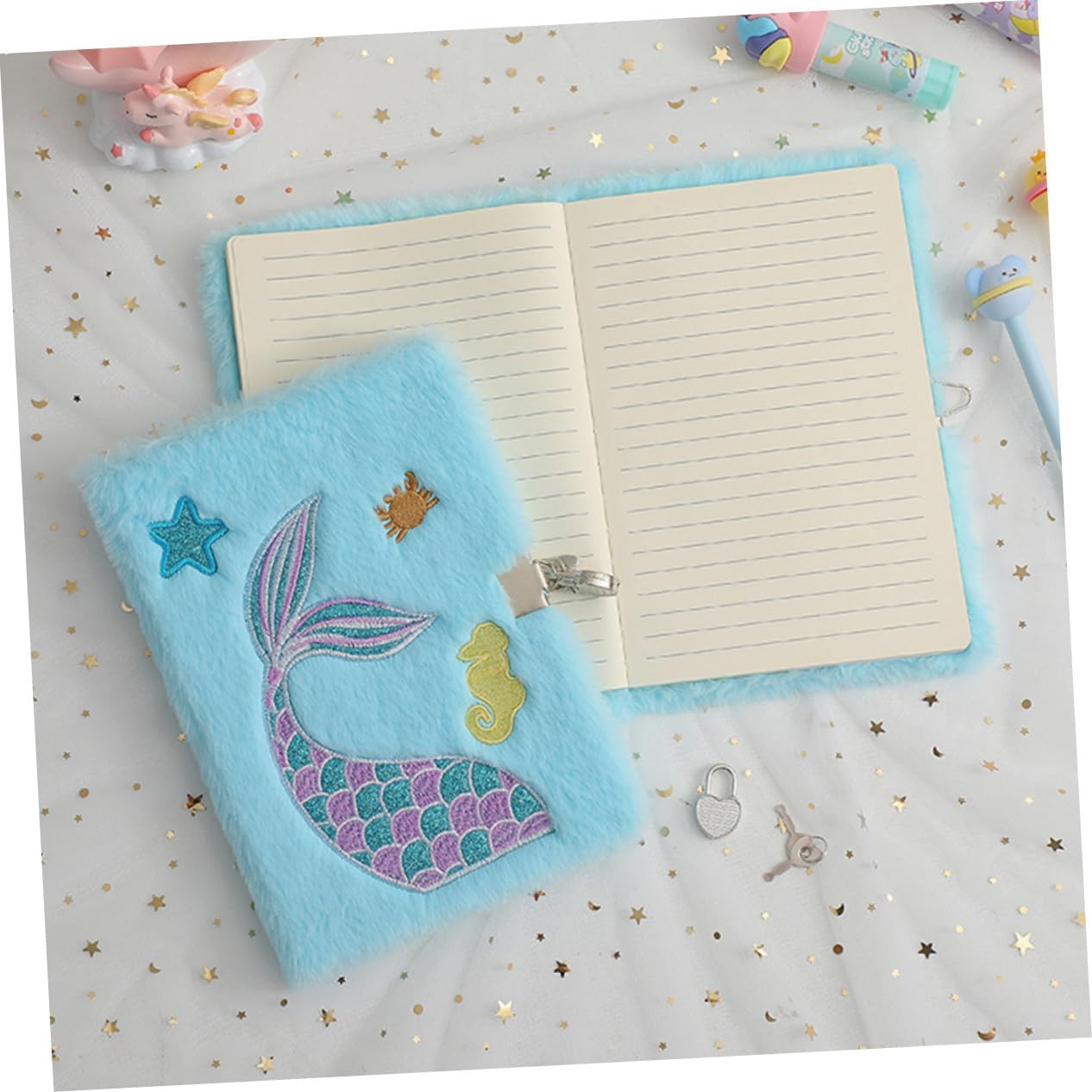 Diario con serratura: l'adorabile con copertina in peluche è davvero un'ottima idea per varie occasioni, diario con serratura Carino: realizzato con copertina in peluche e carta liscia, presenta una superficie liscia e una buona sensazione al , diario per con lucchetto Diario con serratura: design portatile e con serratura per un comodo trasporto in viaggio, in vacanza o nella vita quotidiana, grazioso Con lucchetto: le persone possono scrivere ciò che pensano, pianificano o hanno idee su questo decorativo a forma di cartone animato, o come diario, diario con lucchetto Con serratura: adatto per uffici, aule, camere da letto, sale studio, soggiorni, hotel e altri luoghi, diario sfocato per ragazze con lucchetto