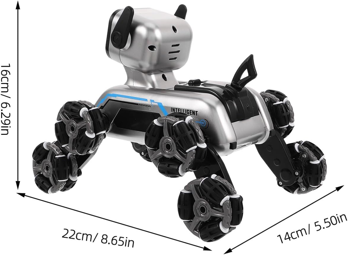 Controllo interattivo senza sforzo: dotato di funzionalità robot intelligenti controllate dai gesti, i dirigono facilmente i movimenti e le funzioni del cane robot, rafforzando la coordinazione e il coinvolgimento, animale domestico elettrico interattivo, giocattolo interattivo per Qualità costruttiva duratura: realizzato per durare, il cane robot per resiste al gioco energico, rendendolo un giocattolo intelligente affidabile per i che supporta il loro sviluppo anno dopo anno, cane telecomandato, giocattolo per cani robot Robusta adattabilità al terreno: cane robot elettrico a otto ruote adatto a qualsiasi superficie; un divertimento versatile all'interno che all'esterno con un affidabile cane robot da compagnia, cane robot elettrico, giocattolo robotico programmabile Intrattenimento : con routine dinamiche di cani robot danzanti ed emozionanti passeggiate con cuccioli robot, i uniscono divertimento e apprendimento, giocattolo per cuccioli robot, giocattolo per cani telecomandato Crescita educativa: le funzioni programmabili dei giocattoli robotici promuovono; i sperimentano con gli animali domestici robot, padroneggiando i concetti base di codifica e mentre si divertono con animali domestici robot interattivi, cani elettrici, cuccioli telecomandati