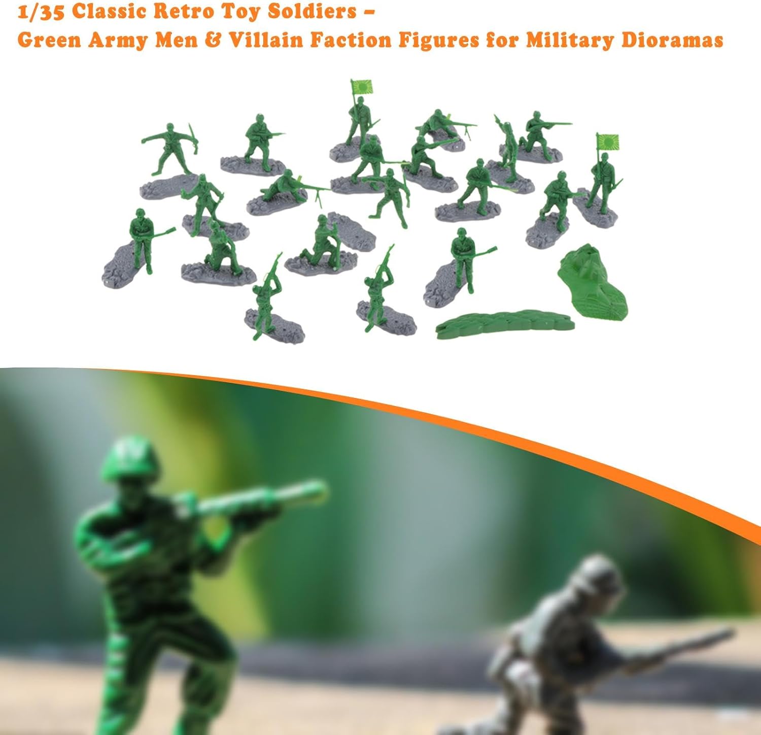 【Giocattolo educativo】: Questo set di mini soldatini è un ottimo strumento educativo per imparare dei soldati e può essere combinato con altri giocattoli per un divertimento senza fine 【Set completo con accessori】: il pacchetto include 18 mini soldati e 2 modelli di bunker, fornendo tutto il necessario per creare scene di battaglia dinamiche 【Set di gioco coinvolgente】: questo classico set di modelli di soldatini giocattolo in scala 1/35 offre un'esperienza di gioco a tema accattivante, consentendo ai bambini di esplorare e comprendere dei soldati attraverso varie forme 【Materiale Premium】: Realizzati in PP di qualità, questi modelli di soldati in scala 1:35 sono progettati per resistere a ore di gioco mantenendo il loro aspetto dettagliato 【Dimensioni adatte alle manine】: ogni soldato è alto circa 4-5 cm/1,57-1,97 pollici, il che lo rende della dimensione ideale per i bambini piccoli da maneggiare comodamente durante il gioco.