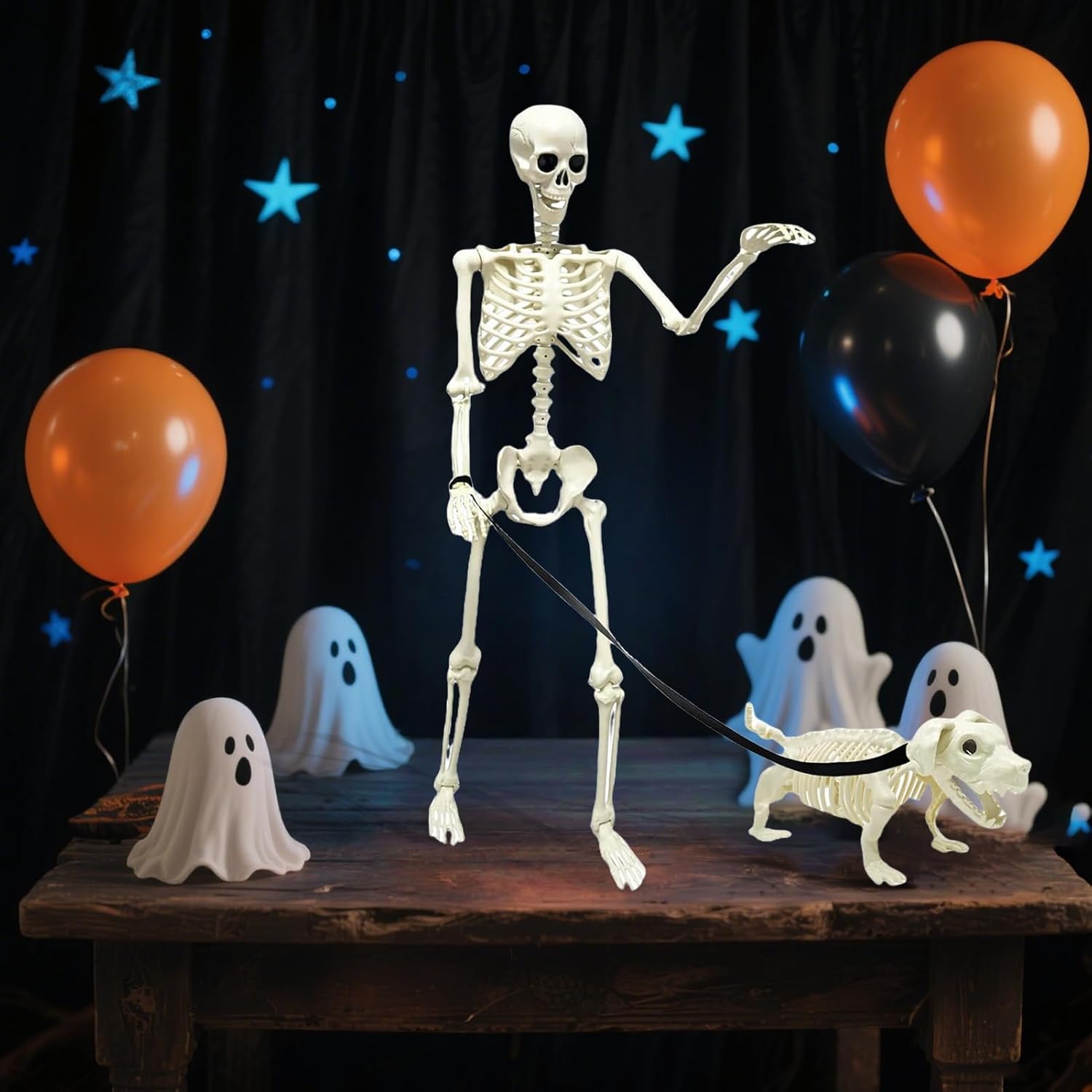 MULTIUSO: Adatto sia per la casa che per le feste, questo scheletro si fonde perfettamente con gli spazi interni ed esterni e migliora gli eventi spettrali grazie alla sua maneggevolezza e agli usi versatili. Tema scheletro inquietante: il design classico dello scheletro con un tocco creativo crea una storia accattivante e migliora l'atmosfera natalizia con immagini misteriose che catturano l'attenzione di tutti nella stagione spettrale. Materiale di alta qualità: materiali speciali durevoli garantiscono realismo dettagliato e struttura durevole per un uso multiplo affidabile Costruzione dei giunti ottimizzata: le connessioni articolate consentono il posizionamento dinamico per disposizioni speciali - aumenta la libertà di progettazione e la gioia nelle decorazioni di Halloween. Design diversificato: l'aspetto multistrato offre profondità visiva, adatto per decorazioni interne ed esterne, accenti luminosi e oggetti decorativi consentono combinazioni individuali per un abbellimento di Halloween senza sforzo