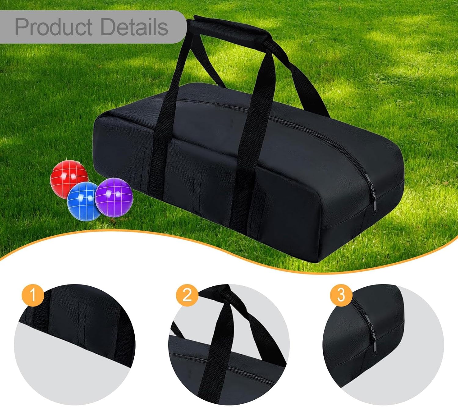 【Chiusura sicura con doppia cerniera】: dotata di cerniere metalliche lisce che garantiscono un facile accesso mantenendo il contenuto al sicuro. Niente più palline rovesciate o accessori persi grazie all'affidabile chiusura perimetrale completa. 【Robusto materiale Oxford 600D】: Realizzato in tessuto Oxford 600D impermeabile che resiste all'uso esterno e protegge l'attrezzatura dall'umidità. Ideale per tutte le condizioni atmosferiche, non dovrai più preoccuparti che l'umidità danneggi le tue bocce o accessori. 【Organizzazione a 8 scomparti】: Ideale per appassionati di bocce, questa borsa portaoggetti di qualità presenta 8 scomparti individuali che mantengono le palline separate in modo sicuro e ne impediscono il rotolamento. Niente più borse disorganizzate con palline che si ammassano o si danneggiano a vicenda durante il trasporto. 【Comode maniglie per il trasporto】: presenta maniglie imbottite e doppie tracolle che distribuiscono il peso in modo uniforme per un trasporto confortevole. Ideale per i tornei, niente più dolori alle mani o trasporto sbilanciato durante le lunghe passeggiate verso i campi da gioco. 【Design spazioso 43 x 24 x 11 cm】: Offre una grande capacità con dimensioni di 16,93 x 9,45 x 4,33 pollici che possono contenere set di bocce completi e accessori. Ideale per stoccaggio completo, non dovrai più lasciare attrezzature essenziali o lottare con spazi di archiviazione angusti.