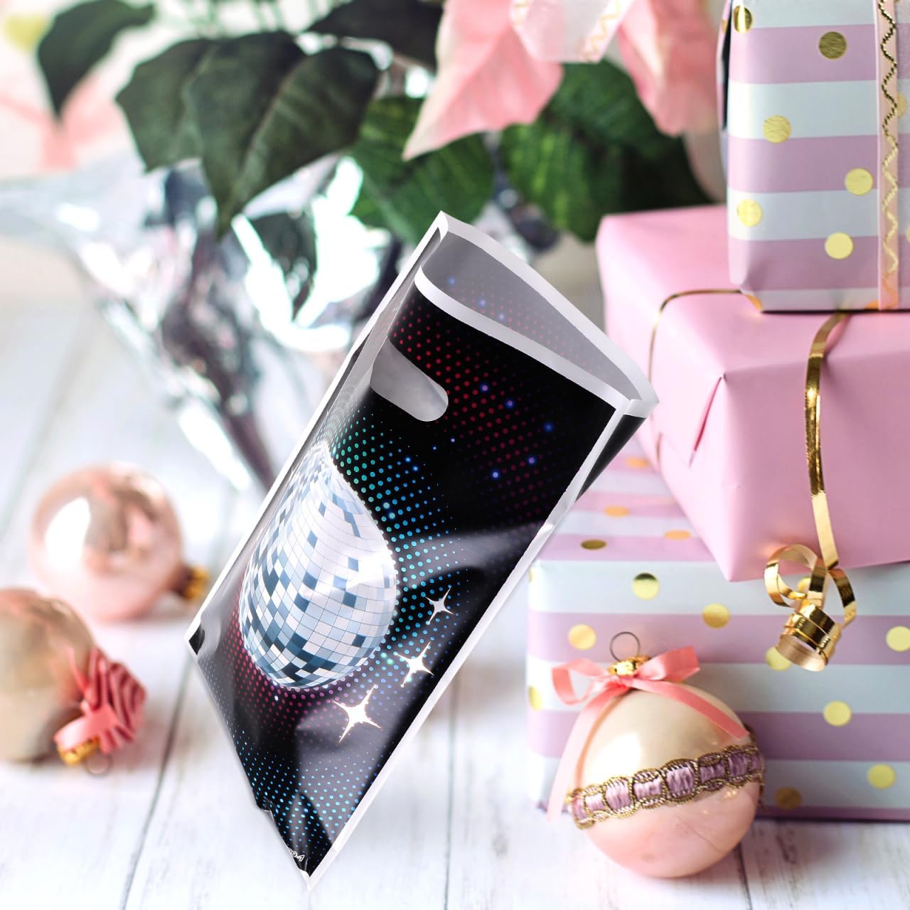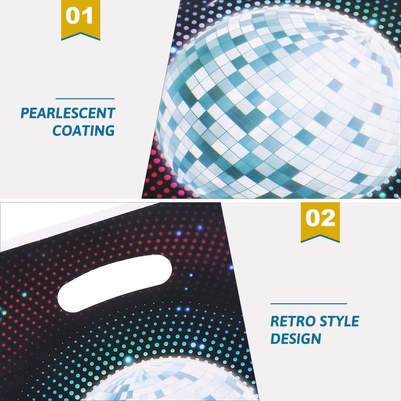 Design unico retrò discoteca: la confezione regalo retrò discoteca da 50 pezzi presenta un accattivante motivo discoteca anni '70 con classiche palline da discoteca, che rende i regali eleganti e festosi ed è perfetta come borsa regalo per feste in discoteca Dimensioni e capacità convenienti: misurando 10 x 6,5 pollici, la borsa regalo discoteca offre spazio sufficiente per dolci, snack o piccoli regali e ha maniglie che la rendono facile da trasportare e utilizzare Rendi le feste più confortevoli Usi versatili: queste borse regalo sono ideali per compleanni, feste a tema, compleanni di bambini e altro feste, particolarmente adatto come regalo per feste, compleanno per bambini, discoteca o come elegante confezione regalo per diverse occasioni Materiale ecologico: i sacchetti regalo sono realizzati in materiale riciclabile, rivestito in madreperla, che offre un'alternativa sostenibile per gli utenti attenti all'ambiente pur mantenendo un aspetto festoso e di alta qualità Confezione grande Per eventi: il set contiene 50 pezzi del sacchetto retrò per feste, che lo rende ideale per eventi più grandi, feste ricorrenti e clienti aziendali che cercano una soluzione pratica e conveniente per confezionare regali