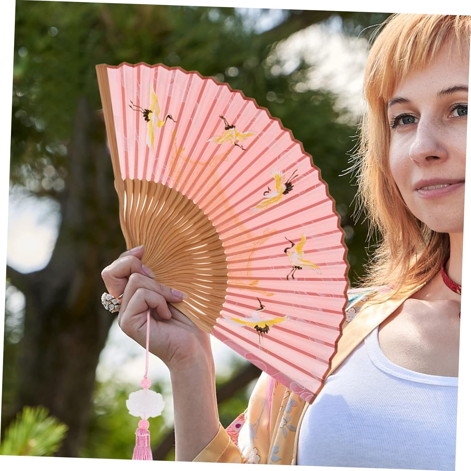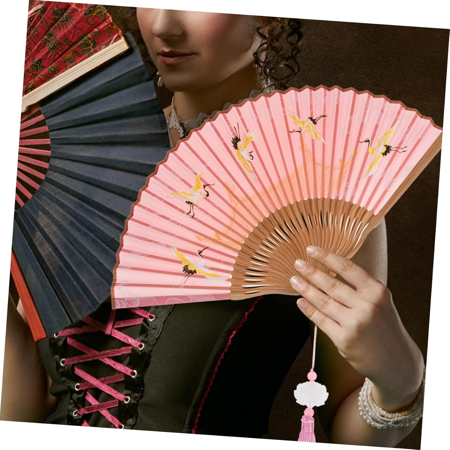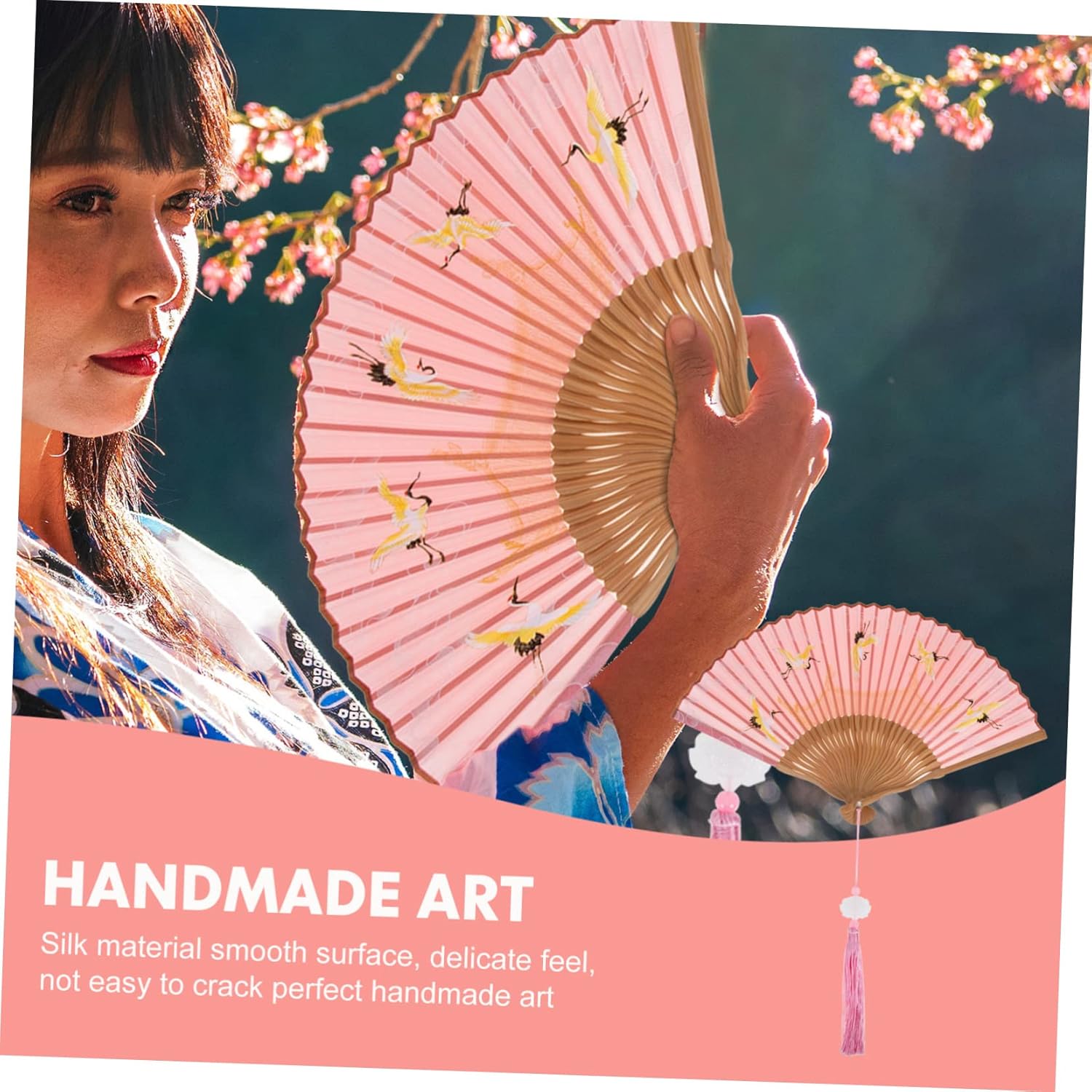Ventaglio decorativo da parete: bellissimo ventaglio portatile a forma di fiore in stile classico e vintage cinese e giapponese, ventaglio portatile pieghevole Decorazione da parete con ventagli giapponesi: è progettata per essere leggera e pieghevole, facile da trasportare, comoda da usare sempre e ovunque, decorazione Ventaglio cinese retrò: perfetto accessorio fotografico per feste, spettacoli, compleanni e altre occasioni, ornamento pieghevole in stile cinese. Ventagli cinesi portatili: sono un'ottima decorazione da abbinare al tuo costume e possono anche essere usati come decorazione da parete, ventaglio da parete decorativo Ventagli pieghevoli decorativi: realizzati con materiali di bambù e seta di alta qualità, adatti per l'uso come ventagli cinesi