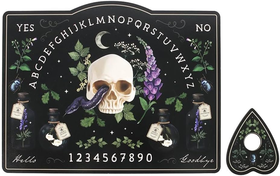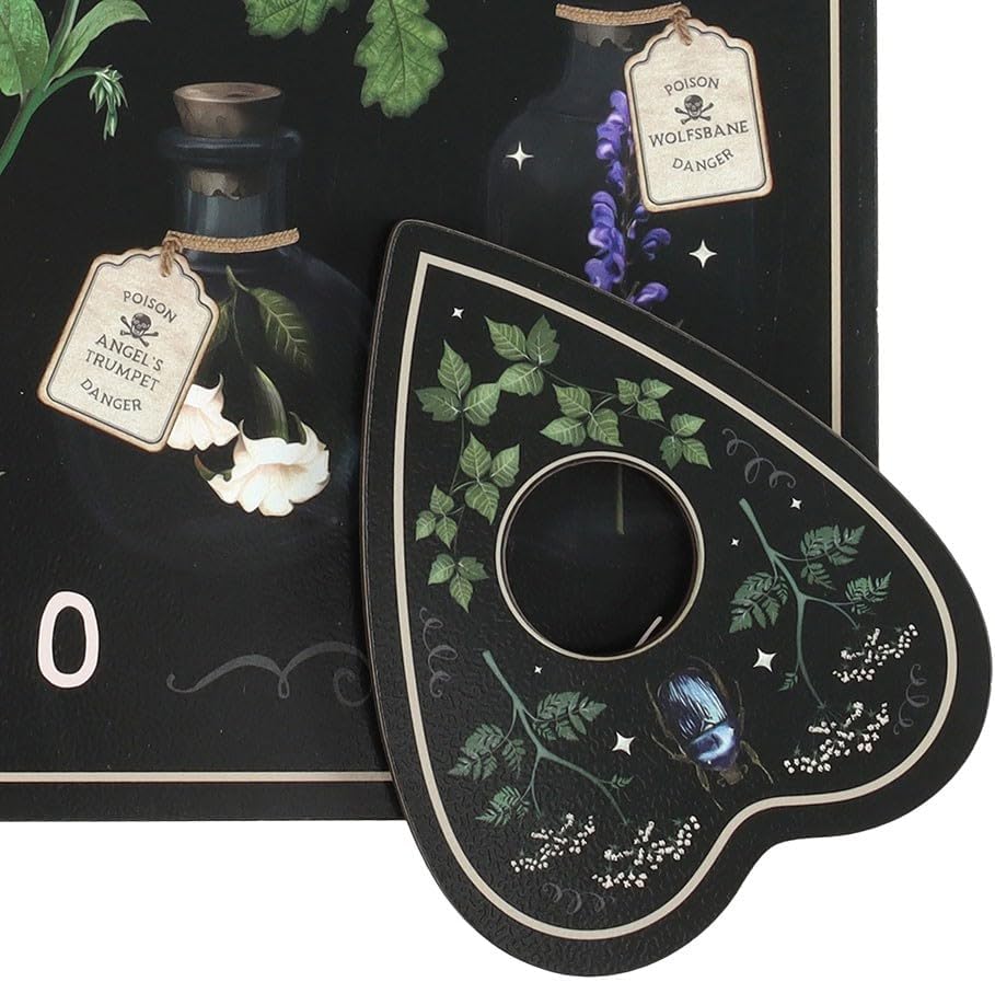Mystical Conversation Starter: aggiungi un'aria di intrighi al tuo spazio con questa lavagna parlante dal design accattivante, con illustrazioni dettagliate di piante velenose. Perfetta per incontri a tema: ideale per feste di Halloween, serate di ispirazione occulta o sessioni spirituali, questa tavola dà il tono a esperienze misteriose e memorabili. Intricata opera d'arte botanica: le splendide illustrazioni di piante fondono l'eleganza gotica con il pericolo naturale, rendendolo un pezzo unico per esposizione o uso rituale Decorativa e funzionale: sia usata come strumento spirituale o semplicemente come elemento decorativo audace, questa lavagna parlante catturerà sicuramente l'attenzione e susciterà curiosità. Un regalo unico per i curiosi: un regalo premuroso per gli amanti dell'estetica mistica, botanica o appassionati di articoli per la casa gotici.
