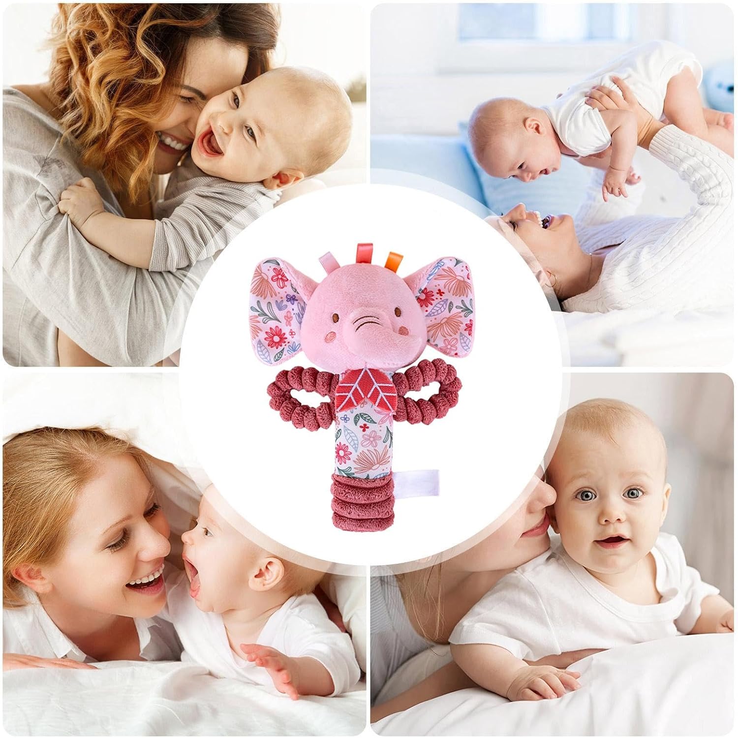 Coinvolgimento sensoriale: il nostro sonaglio di peluche è progettato per stimolare la mente del tuo bambino con un design attraente e carino di coniglietto ed elefante. Emette suoni di volume appropriato quando viene agitato o schiacciato, migliorando efficacemente lo sviluppo visivo e uditivo del tuo bambino e fornendo allo stesso ore di divertimento interattivo Facile da mantenere: realizzato in peluche e cotone di alta qualità, questo sonaglio è facile da pulire e mantenere senza perdere la sua consistenza morbida e sicura, consentendo al tuo bambino di afferrarlo e giocarci tutto il giorno compagno in movimento: progettato per le mani piccole, questo sonaglio di peluche ha le dimensioni perfette per un facile trasporto e garantisce intrattenimento senza fine ovunque tu sia Giocattolo versatile: il nostro sonaglio di peluche produce suoni rilassanti e può essere utilizzato in diversi modi, aggiungendo calore e fascino a qualsiasi stanza. Perfetto sia per il gioco che per l'arredamento Il migliore amico dei bambini: questo sonaglio di peluche non è solo un giocattolo, ma anche un amico fedele che fornirà eccitazione e divertimento senza fine al tuo bambino, essendo amato sia dai bambini che dai genitori