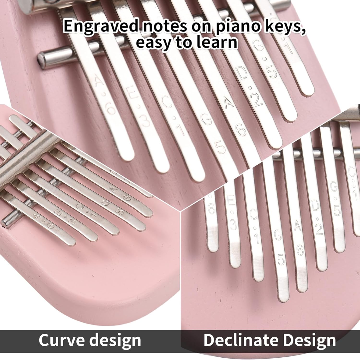 [Colori alla moda] offre vivaci variazioni di colore, aggiunge fascino estetico e ti consente di scegliere lo stile più adatto a te. [Design portatile] Progettato per la portabilità, questo mini kalimba è piccolo e leggero, facile da trasportare per viaggi, feste e campeggio. [Easy Learning] semplifica il processo di apprendimento con le note incise e ti consente di creare bellissime melodie senza precedente esperienza musicale. [Tasti delle note incise] include 8 tasti, ciascuno con note incise per un facile apprendimento e gioco, anche per i principianti. [Materiale di alta qualità] Kalimba è realizzato in pregiato legno Sapele e offre un suono ricco e trasparente per un'esperienza di ascolto superiore.