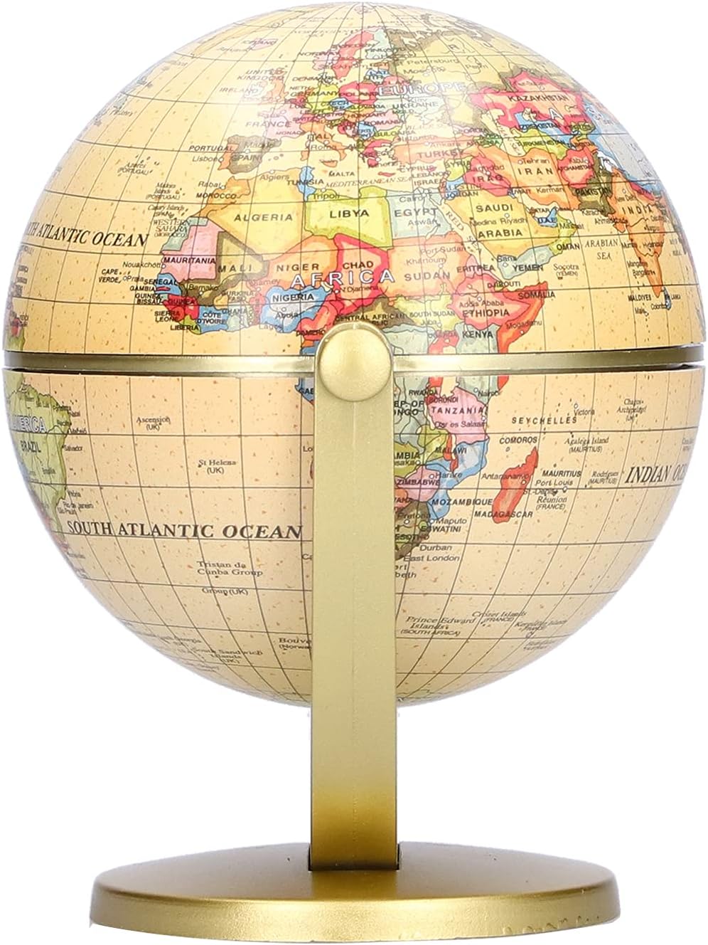[AMPLIA LA TUA CONOSCENZA GEOGRAFICA] Mini World Map Globe è strumento di apprendimento pieno di risorse che migliora la tua comprensione della terra e delle sue posizioni geografiche. È adatto a bambini e adulti, rendendolo un'utile risorsa educativa per case, scuole e altro ancora. [MATERIALE DI ALTA QUALITÀ] Realizzato con materiali plastici di alta qualità, questo mappamondo da scrivania è durevole e resistente all'usura. Il globo è fissato su una base robusta, che offre posizionamento stabile e utilizzo a lungo termine. [COLORI VIVACI E BELLISSIMO DESIGN] Il globo è splendidamente organizzato in vari colori vivaci, rendendolo visivamente piacevole. Lo stile vintage lo rende un'aggiunta unica a qualsiasi arredamento della casa o 'ufficio. [GLOBO ROTANTE CON STAMPA CHIARA DELLA MAPPA] Design rotante facile consultazione e apprendimento intuitivo. La mappa è splendidamente stampata con la più recente tecnologia di disegno che garantisce testi chiari e pregevole fattura. [EDUCATIVO E DECORATIVO] Il nostro mini mappamondo non è strumento educativo ma anche meraviglioso pezzo di arredamento per la casa. Il suo design vintage può completare qualsiasi ambiente interno, rendendolo per gli appassionati di geografia e gli amanti 'arredamento.