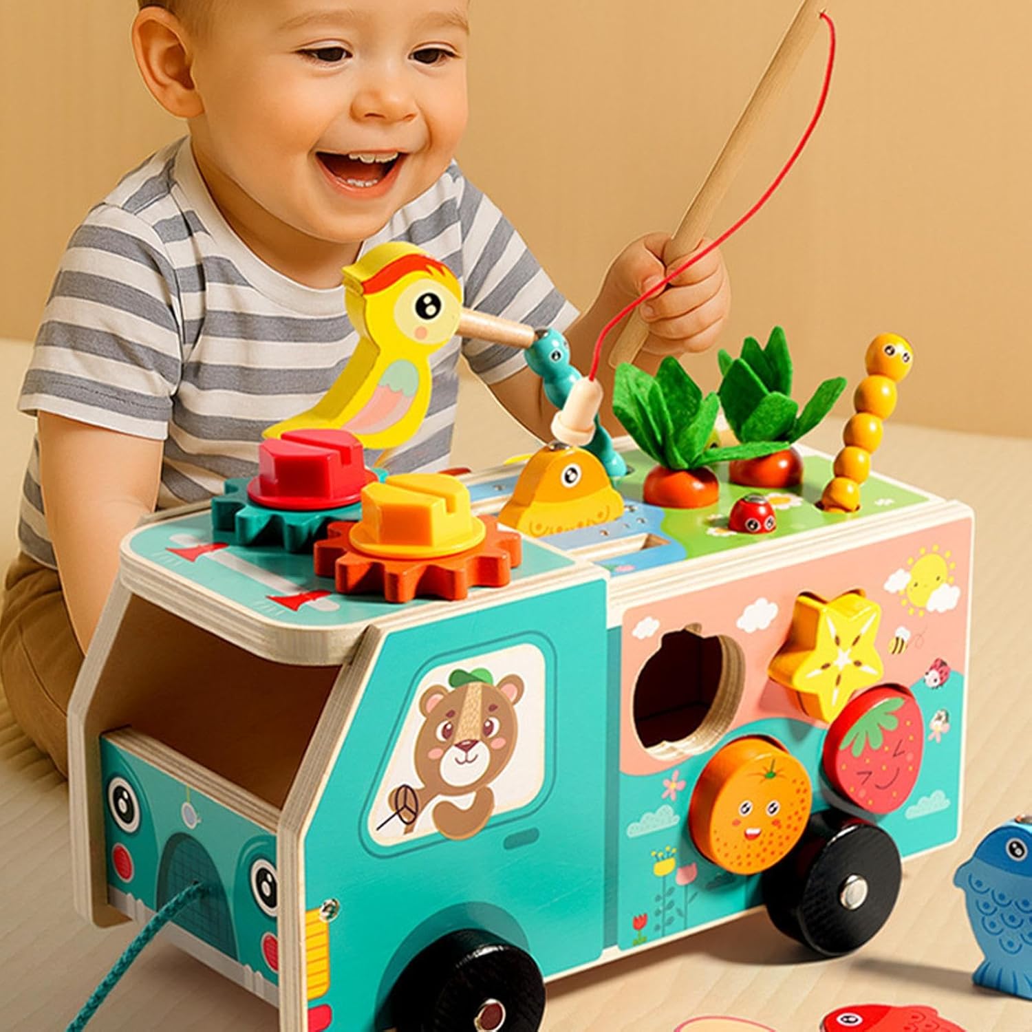 Regalo Prezioso: Integra temi avvincenti della fattoria e della frutta per nutrire il e potenziare le abilità sociali, eccellente come regalo tematico per occasioni speciali come il primo compleanno, arricchendo le connessioni familiari attraverso il gioco. Designo Sicuro per Bambini: Questo shape sorter per bambini è progettato con bordi arrotondati e levigati che eliminano spigoli , garantendo un gioco sicuro e senza preoccupazioni durante il riconoscimento delle forme e lo sviluppo cognitivo dei più piccoli, ideale per attività educative domestiche Coordinazione Occhio-Mano Potenziata: Le attività di attrazione e abbinamento addestrano le capacità motorie fini, rinno la della presa e supportano la crescita cognitiva, fornendo un modo divertente per sviluppare abilità essenziali durante il gioco con famiglia o amici Interazione multimodale: Questo giocattolo delle forme combina abbinamento di forme, attività di presa e funzioni di carrellino spingibile per adattarsi alle diverse fasi di sviluppo, garantendo attenzione prolungata e coinvolgimento dinamico, ideale per momenti di gioco tranquilli in casa o avventure all'aperto più vivaci Giocattolo Educativo Cromatico: I colori intensi e brillanti supportano lo sviluppo cognitivo precoce insegnando i colori primari e collegandoli ad elementi tangibili, garantendo un'attività pratica arricchente per i piccoli apprendisti curiosi