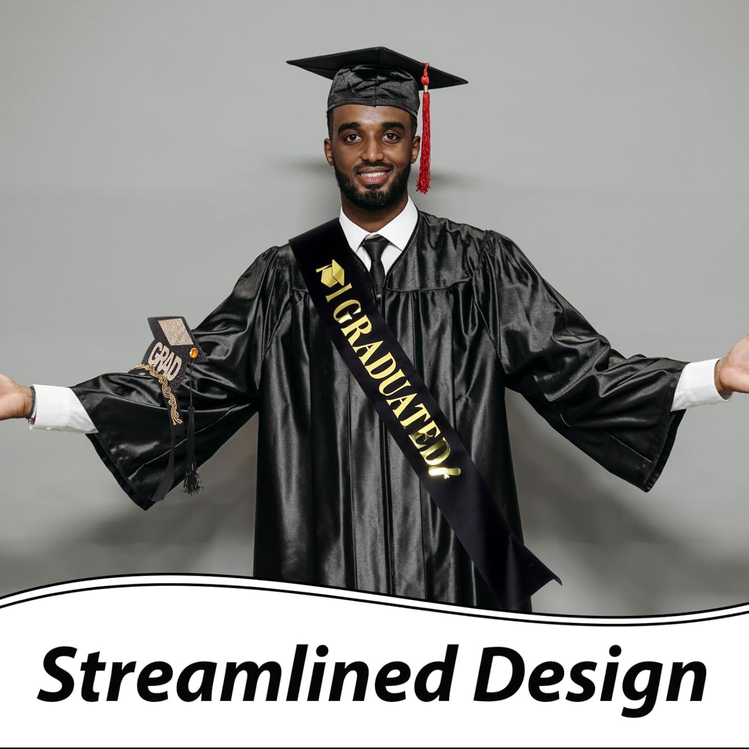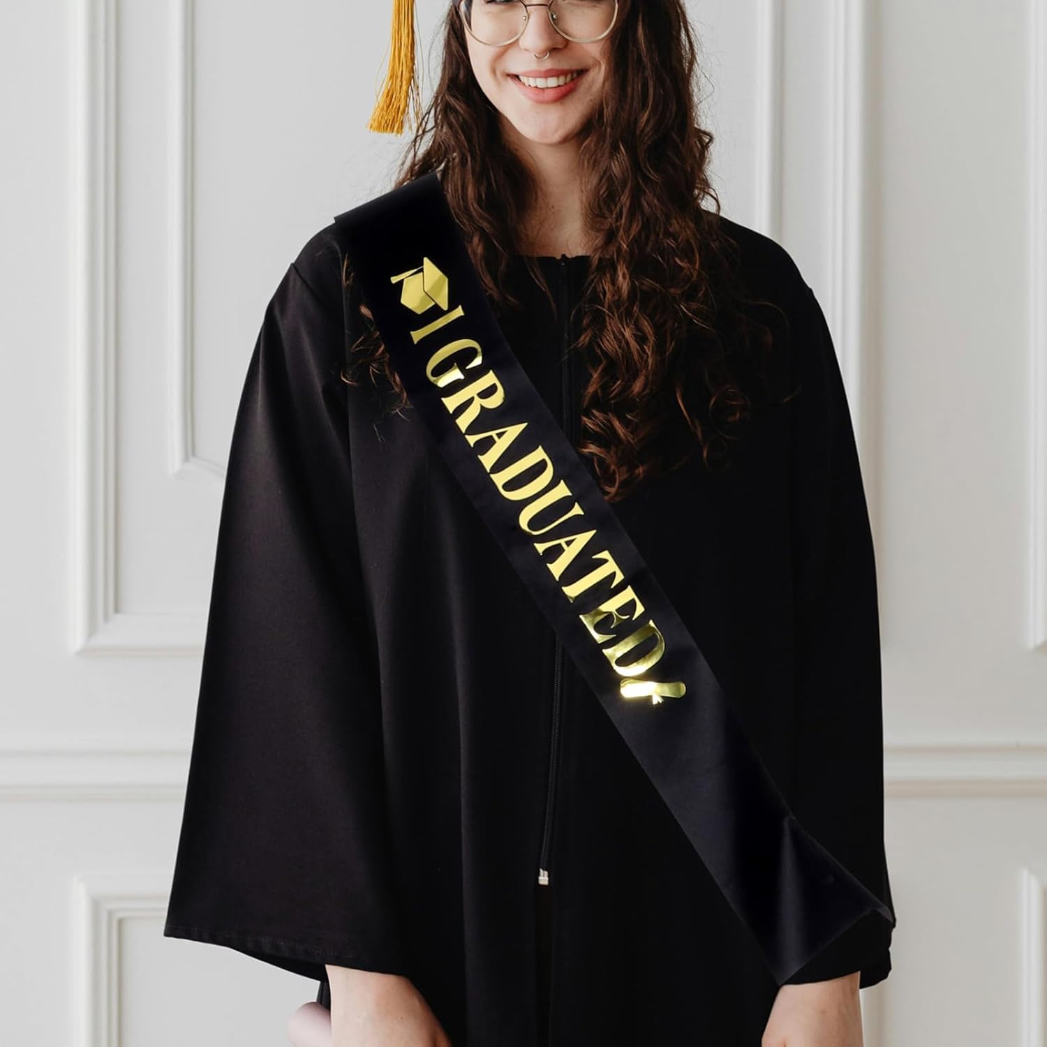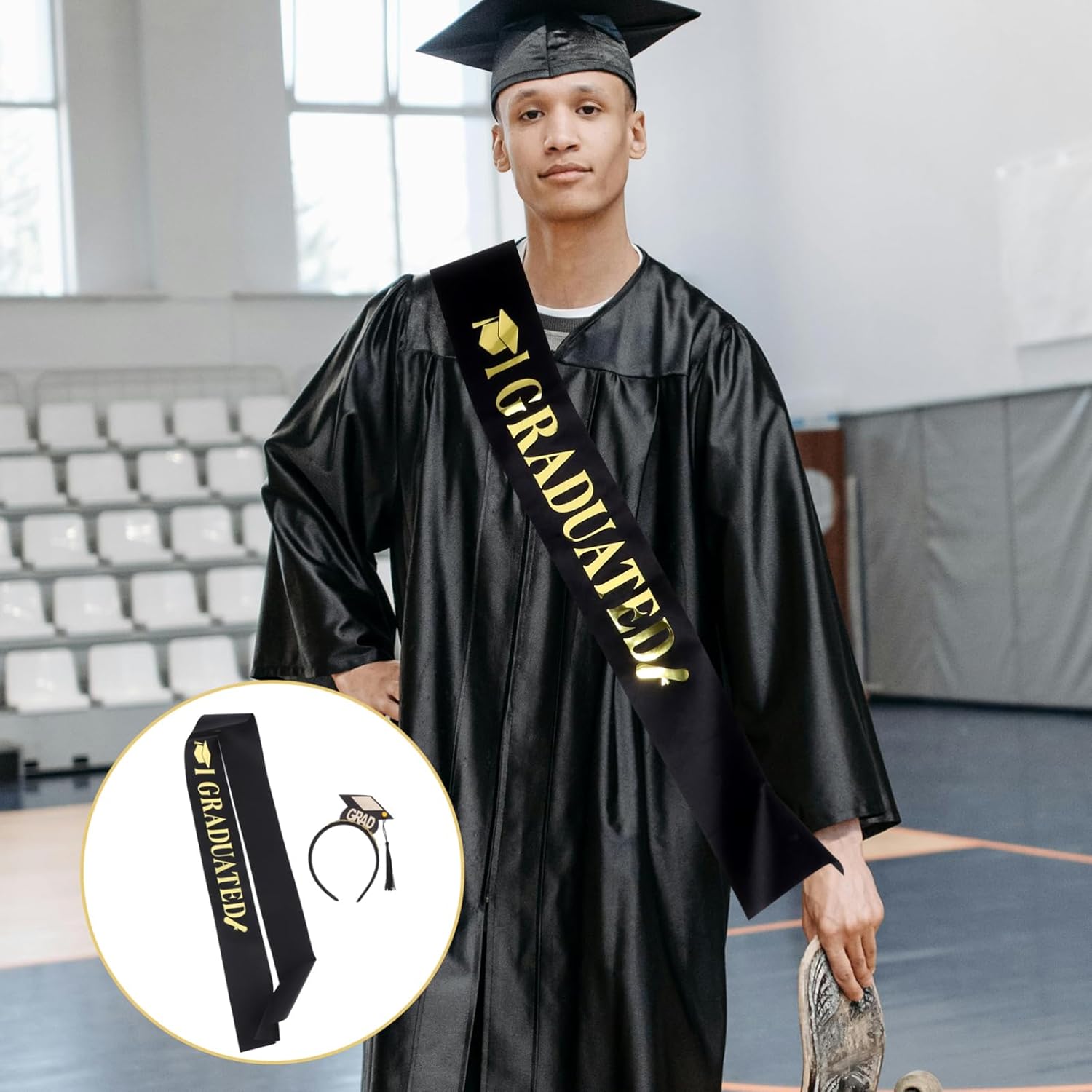 Decorazioni per la festa di laurea: la fascia in raso è decorata con parole e motivi a tema di laurea che aggiungono espressione alla festa di laurea. Fascia decorativa per laurea: possono essere una laurea perfetta per compagni di classe, amici, studenti, ecc., Accessori per capelli da laurea Fascia per laurea: questa fascia e questa fascia sono realizzate in tessuto e non sono facili da strappare o rompere. Tracolla per laurea - Adatta a varie occasioni, come feste da ballo, feste di laurea e utilizzata anche come supporto fotografico per scattare bellissime foto o come accessorio in costume per feste di laurea Fascia per feste: un set di fascia e fascia per capelli è un accessorio di abbigliamento essenziale per la tua festa di laurea, fascia di laurea