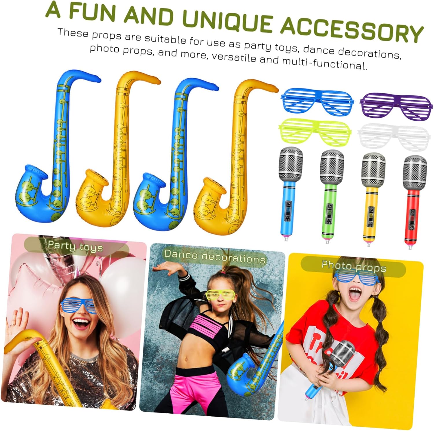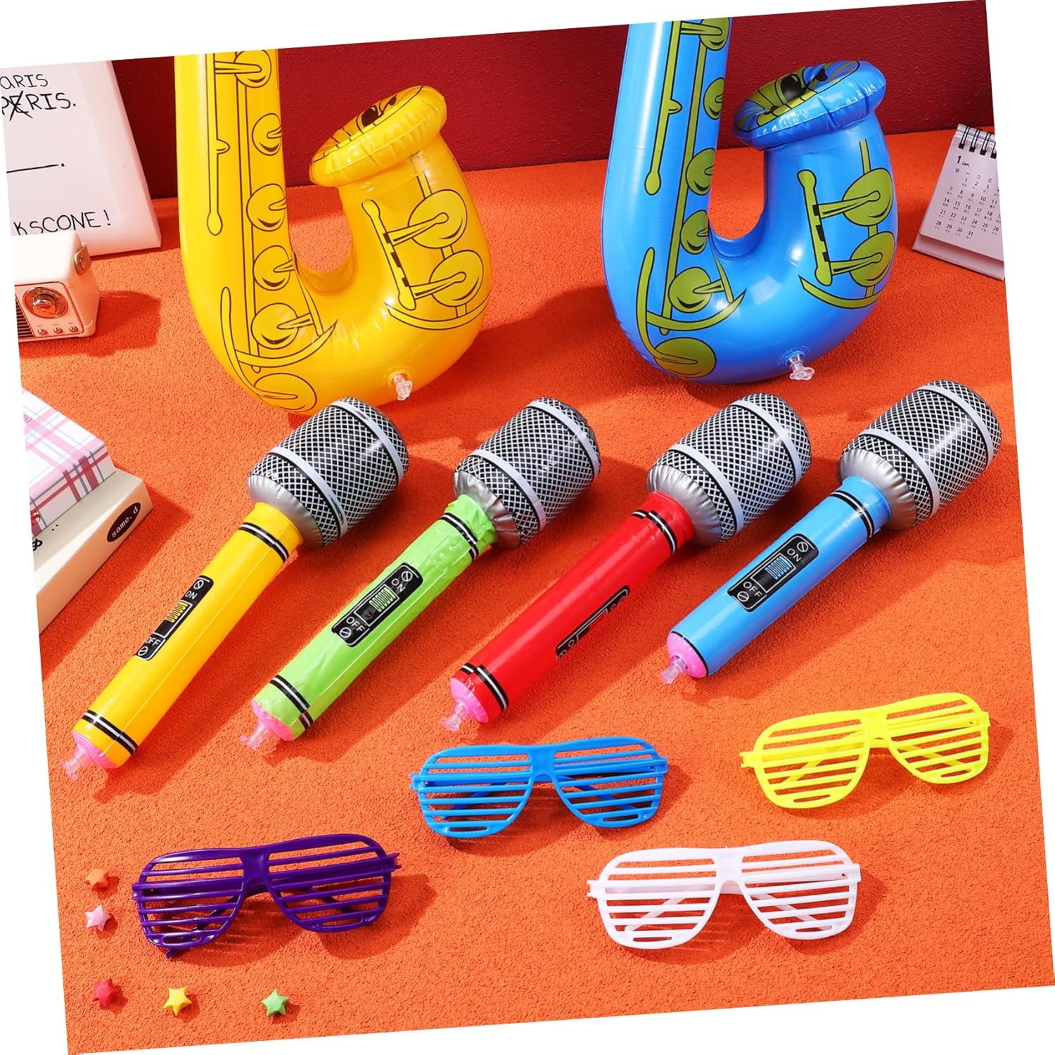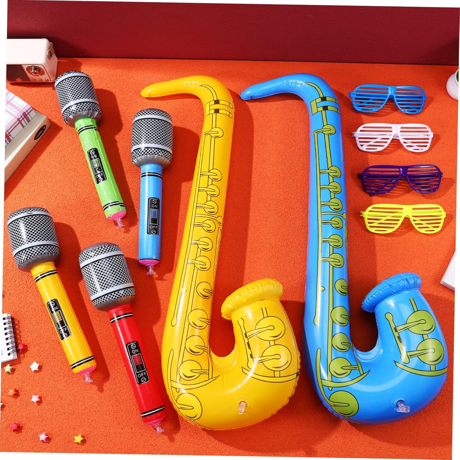 Dimensioni convenienti: il sassofono e il microfono gonfiabili sono di lunghezza moderata, il che li rende facili da trasportare e utilizzare, microfono di simulazione, supporto per sassofono Molteplici oggetti di scena: questo set di oggetti di scena per feste include microfoni gonfiabili, sassofono e occhiali, rendendolo adatto a una varietà di occasioni, oggetti di scena gonfiabili musicali, oggetto di scena per microfono per feste Sicuro da usare: questi strumenti gonfiabili hanno una superficie liscia e sono leggeri, garantendo che siano sicuri e comodi da usare, decorazioni per feste musicali, accessori divertenti per feste Ampia applicazione: questi strumenti gonfiabili sono adatti per l'uso a feste di compleanno, feste in maschera, halloween, feste in spiaggia e altro ancora, giocattoli gonfiabili per strumenti rock, giocattolo musicale gonfiabile Oggetti di scena divertenti: questi oggetti di scena contribuiscono all'atmosfera della festa e rendono qualsiasi evento più divertente, fornendo un raduno di accessori divertente e unico, decorazioni gonfiabili, oggetti di scena musicali gonfiabili