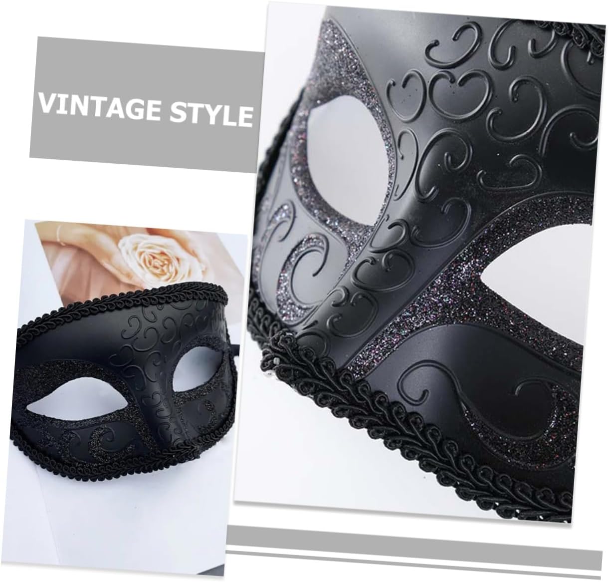 dei pacchetti 3 Caratteristiche -Dimensioni: 18,00X10,00X3,00 cm/7,07X3,93X1,18 pollici Maschera di Carnevale Vintage -Materiale: maschera retrò in plastica -Colore: maschere cosplay nere - Divertiti alla tua festa, che Halloween, Natale, festa cosplay o, divertiti con la maschera per la festa di Halloween. - Una meravigliosa maschera da cosplay per donne e uomini, per Halloween, Carnevale, feste in maschera, balli in maschera, ecc. Maschera da mascheramento retrò. - Maschera decorativa adatta per feste in maschera, discoteche, bar, ecc. Maschera di Carnevale. - Questa maschera da cosplay con il suo aspetto bello e retrò ti farà distinguere dalla massa. Maschera da festa vintage. - Fantastica maschera decorativa da cosplay, da scattare e fotografare con familiari e amici. Maschere in costume. Informazioni sulle merci Mezza maschera di scena Questa maschera da festa in maschera per cosplay è comoda, leggera e universale. Mezza maschera di scena per cosplay Per un costume da notte, una maschera in maschera con un design affascinante è fantastica. La maschera retrò progettata con cinturino mantiene la maschera in posizione
