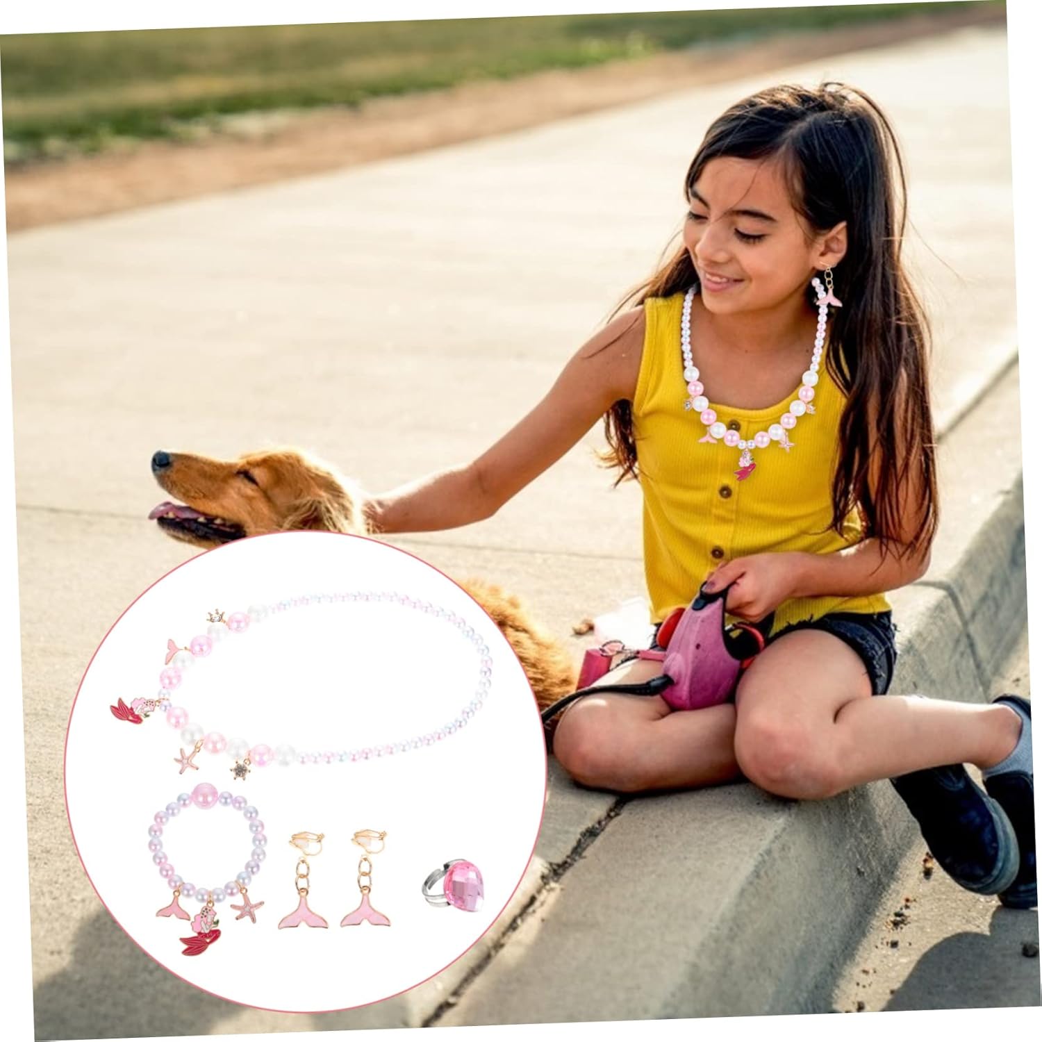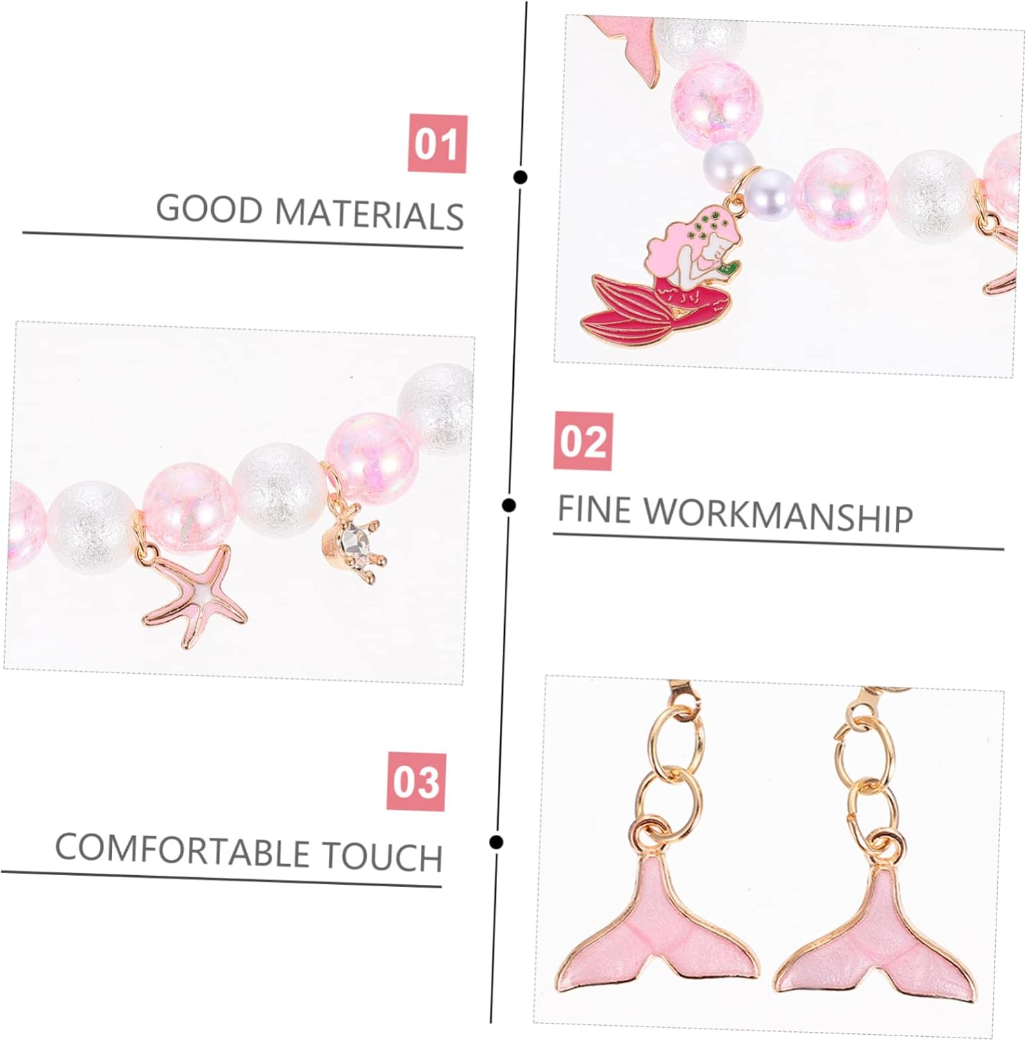 Il pacchetto include 1 x collana 1 x braccialetto 1 x anello 1 x paio di clip per orecchini 1 x scatola portaoggetti Caratteristiche - Materiale: gioielli con perline in plastica a tema sirena. - Dimensioni: braccialetto con perline 16,00X8,50X6,50cm/6,29X3,34X2,55 pollici. - Collana con ciondolo color rosa - Con perline colorate e ciondolo, ideale per feste di compleanno, anniversari, matrimoni, Natale, Halloween, celebrazioni, feste di Capodanno, concerti o qualsiasi altro evento Braccialetto con ciondolo per bambini. - Adatto per essere abbinato ad , costumi, outfit quotidiani, ecc. Collana con bracciale di perline. - con lavorazione di per splendidi e indossabili gioielli con ciondolo a forma di sirena per bambini. - Design adorabile e grazioso, ti farà distinguere tra la . Orecchini a forma di sirena. - Non è solo una decorazione, ma anche un bel per la tua famiglia e i tuoi amici. Decorazione da polso per bambini. Descrizione della merce Collana per bambini Realizzata in materiale e pratica per un uso a lungo termine. Catena da polso per bambini per Halloween, feste, feste in maschera e altro. Orecchini ad anello a sirena Con perline colorate e ciondolo, chic ed eleganti. Collana con braccialetto penzolante Sarai più accattivante quando lo indossi. Decorazione da polso e collo per bambini Vuoi il braccialetto e la collana unici ed eleganti per i tuoi bambini? Questo set può essere