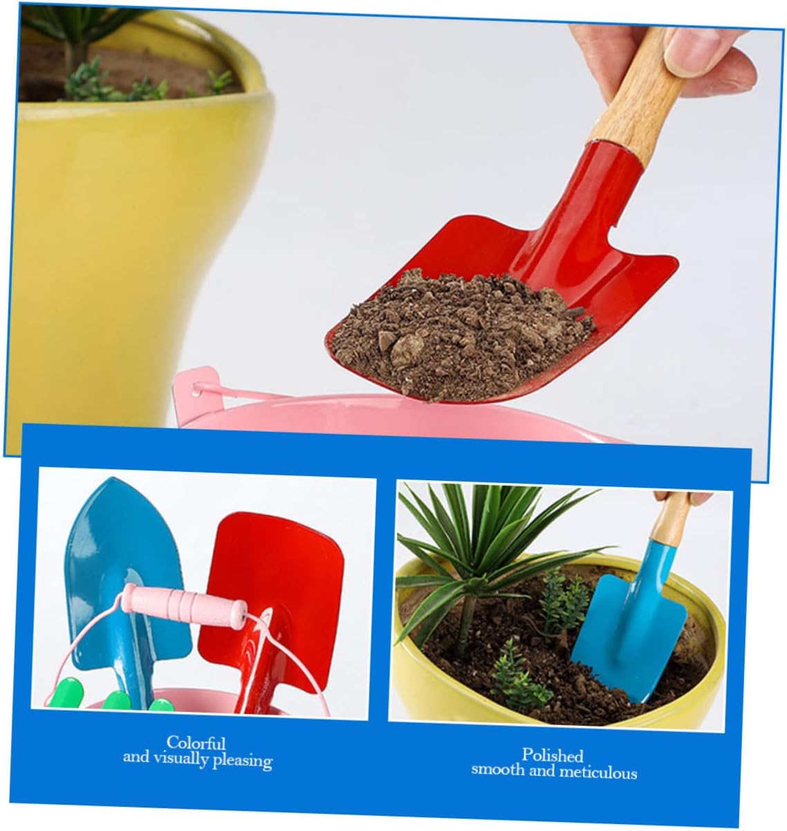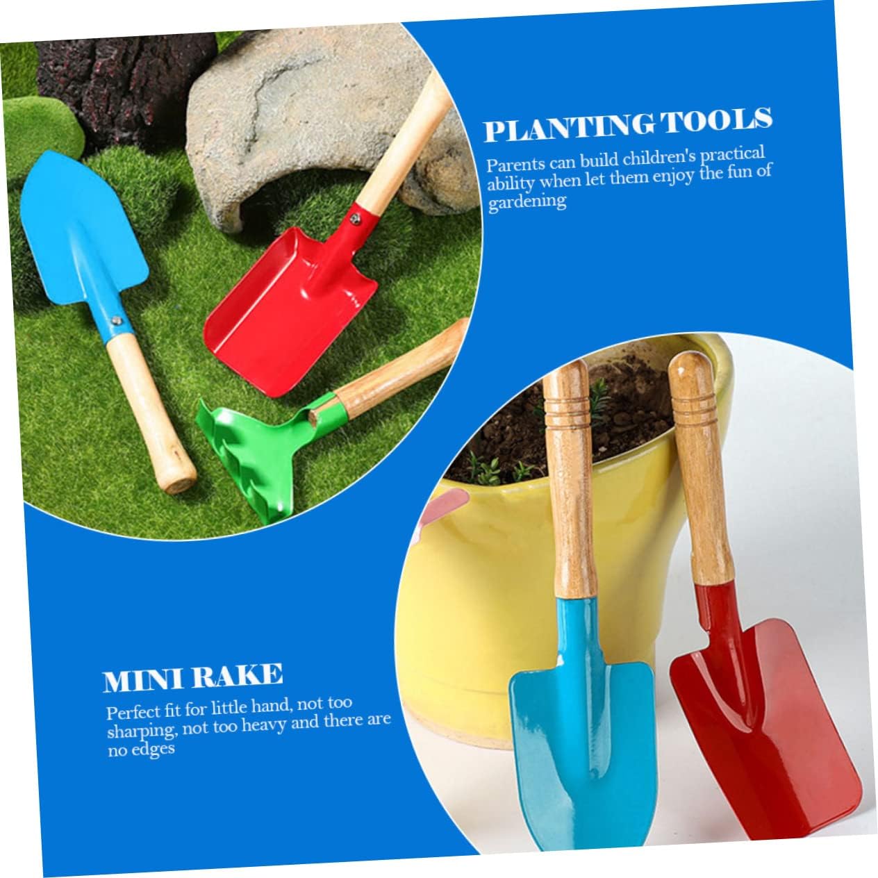Mini strumenti per piantare: questo strumento da giardino pratico e bello è perfetto per chi ama il giardinaggio. attrezzi da giardino per attrezzi da giardino: realizzati in materiale di alta qualità, pratici e adatti per i giocattoli da giardino dei cartoni animati: ha la capacità di resistere alla rottura, molto, attrezzi per piantare Forniture da giardino: progettate per il gioco all'aperto o per lavorare con mamma e papà in giardino, forniture per il giardinaggio domestico Mini zappa: con il design della maniglia, questa pala giocattolo può alleviare l'affaticamento della mano, giocattoli da giardino per