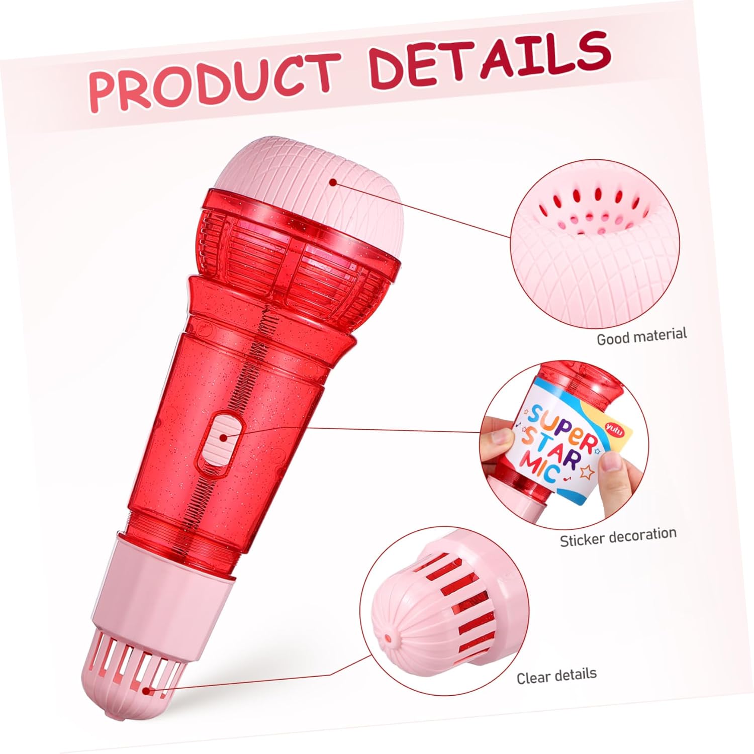 Costruzione robusta: realizzato in plastica robusta, il giocattolo con microfono eco è costruito per resistere a giochi difficili e durare in molte occasioni di gioco, discorso tascabile per i più piccoli, regali di natale per Comodo da usare: non è richiesta alcuna configurazione; basta accendere il microfono per e iniziare a suonare, poiché non necessita di interruttori per funzionare, microfoni per , giocattoli musicali Sicuro da usare: il microfono giocattolo è realizzato con bordi lisci e arrotondati, rendendolo leggero e sicuro per i da maneggiare e con cui giocare, microfono giocattolo per , microfono giocattolo per Compatto e portatile: grazie alle sue dimensioni compatte e al design leggero, il supporto per microfono è adatto alle dei per afferrarlo e trasportarlo senza sforzo, eco per , calze della befana per piccoli Facile da usare: il microfono giocattolo per è pronto per essere utilizzato subito dopo averlo estratto dalla scatola, senza bisogno di cavi o interruttori per funzionare, microfono per , microfono per