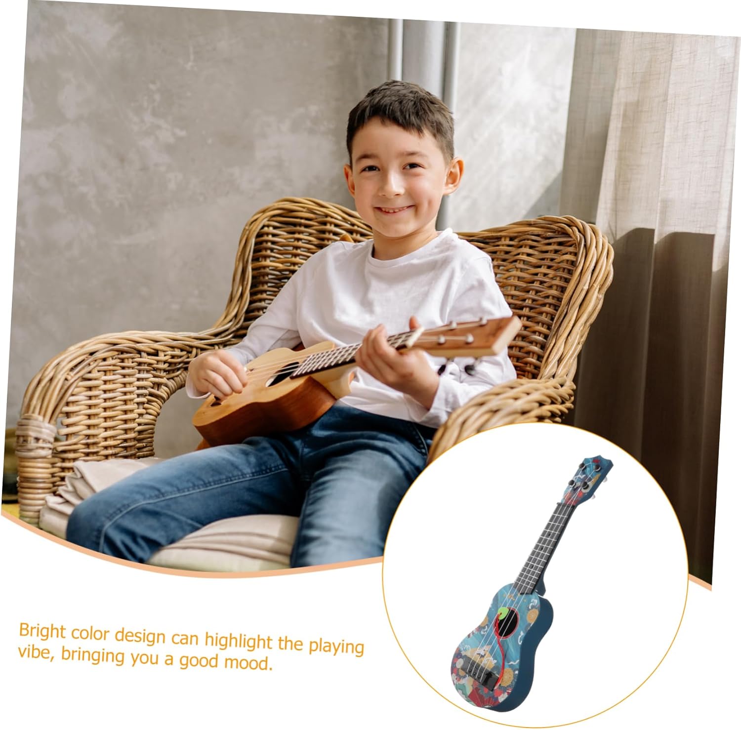 Ukulele per bambini: di pregevole fattura, questa chitarra giocattolo è realistica e molto sicura per far giocare i bambini, simpatico giocattolo per chitarra Giocattolo per chitarra: il prodotto è fatto e il materiale è facile da usare, giocattoli musicali per bambini Gioco di imitazione della chitarra: simula la forma di strumenti musicali per attirare l'interesse dei bambini per la chitarra e l'ukulele, mini ukulele per bambini Giocattolo per ukulele per bambini: questo prodotto ha una buona fattura, ma puoi acquistare questo giocattolo per chitarra con un antipasto giocattolo per chitarra Giocattolo per chitarra musicale: sembra eccellente e può essere utilizzato come decorazione domestica, ornamento decorativo da collezione o giocattolo musicale.