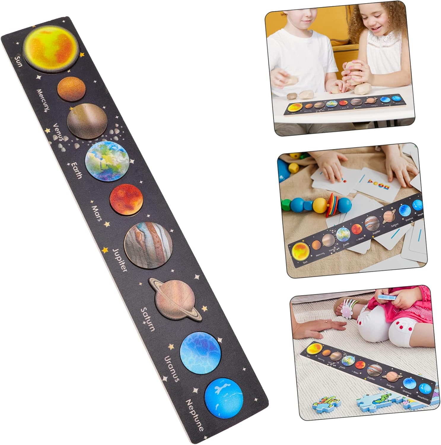 Giocattolo di smistamento: con la versione di puzzle in legno con otto pianeti, i bambini possono espandere la loro immaginazione e imparare giochi sullo spazio e sul sistema solare. Giocattoli per bambini: riconoscono il sistema solare, regolano le dimensioni cognitive e allenano abilità pratiche. Questa importante abilità giocherà un ruolo importante nel futuro di tuo figlio. Giocattoli per bambini sul tema del sistema solare. Gioco di abbinamento per bambini: i giocattoli educativi e creativi consentono ai bambini di sviluppare la loro creatività e immaginazione mentre giocano con questo divertente giocattolo, i giochi puzzle. Giocattolo di gioco cognitivo: la creatività e l'immaginazione del bambino sono molto sviluppate quando gioca con questo divertente giocattolo con blocchi abbinati, forme creative di giocattoli educativi, giocattoli puzzle