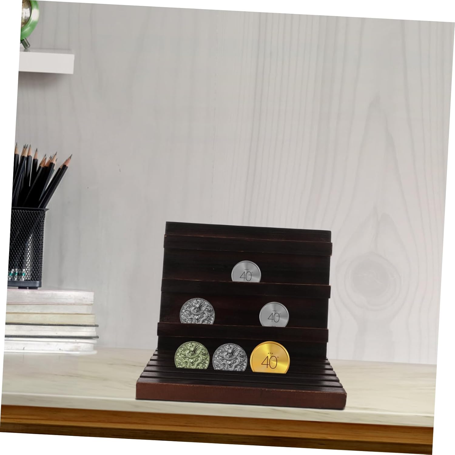 Su misura per monete sfida: progettato per esporre in modo ottimale monete, portamonete, supporto per monete dell'esercito Materiale in legno resistente: realizzato in legno, fornisce una soluzione di esposizione robusta e durevole, capsule per monete, espositore per monete Espositore personalizzabile: per una varietà di ambienti come case, uffici e spazi commerciali, per migliorare qualsiasi ambiente, espositore per bandiere, portamonete per collezionisti Facile da usare Trasporto: leggero e portatile, così puoi trasportare comodamente la tua collezione ed esporla in luoghi diversi, come espositore per monete sfida o come espositore per bandiere. Robusta struttura in legno: realizzata in legno, garantisce un espositore di lunga durata, portamonete, contamonete