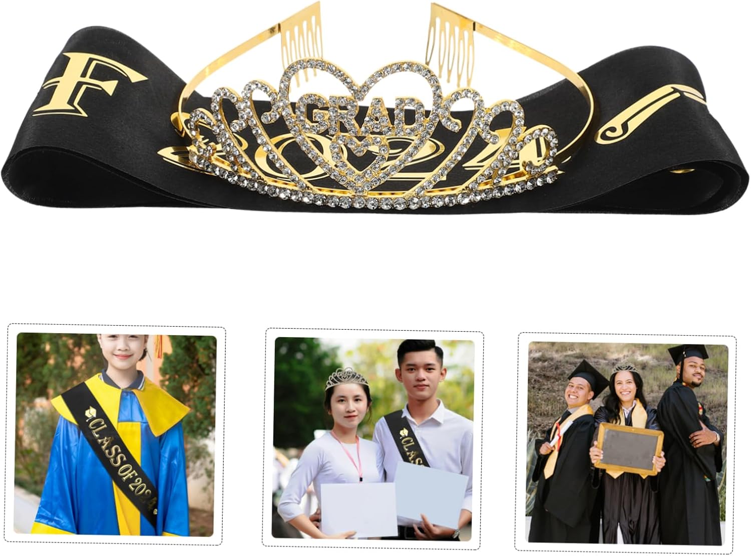 Decorazioni per la laurea: la fascia è decorata con parole e motivi a tema laurea per aggiungere festeggiamenti alla laurea. Fascia per laurea Fascia per laurea - Grazie alla sua versatilità e per diverse occasioni, questa fascia e corona possono essere indossate a feste, cerimonie e lauree. Corone da ballo - La corona di strass è progettata in modo da essere fissata tra i capelli e non scivola via facilmente. Accessori per la laurea Fascia per laurea - Aggiungi un tocco di tocco a qualsiasi festa con questi accessori per feste di laurea e Fascia per laurea - Un set di fascia e corona è un accessorio di abbigliamento essenziale per la tua festa di laurea, molto decorativo, corona per festa di laurea
