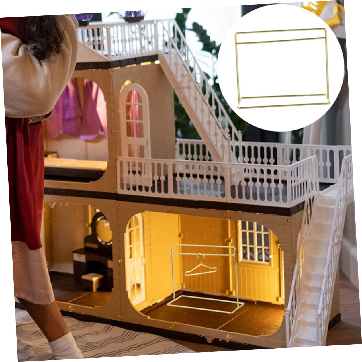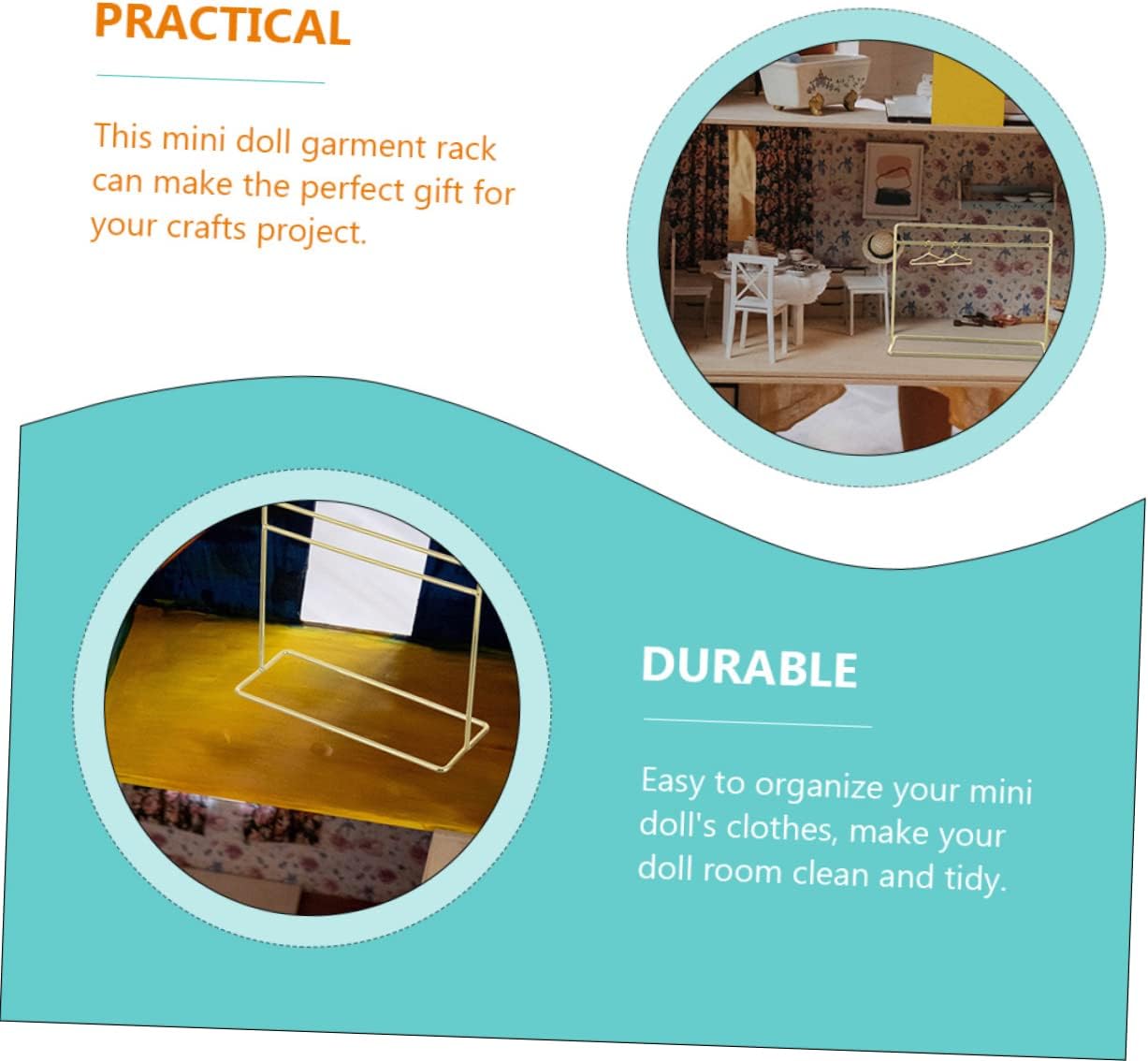 Appendiabiti: la struttura robusta ti consente di riporre tutti i vestiti per le tue bambole o animali domestici, nonché grucce per neonati. Appendiabiti in miniatura per la stanza delle bambole: puoi utilizzare questo appendiabiti per bambole come supporto fotografico per scattare una foto di trucco della tua bambola. Appendiabiti per bambole con ornamento per mobili giocattolo con giunto sferico: semplice nel design, pratico nell'uso, offre un'esperienza utente fantastica. Mobili creativi per vestiti per bambole Appendiabiti fai-da-te: questo appendiabiti per bambole può essere perfetto per il tuo progetto artigianale, appendiabiti per animali domestici Guardaroba per bambole modello: si abbina perfettamente con le altre mini decorazioni della casa, come grucce e vestiti per bambole Appendiabiti facile da usare per bambole
