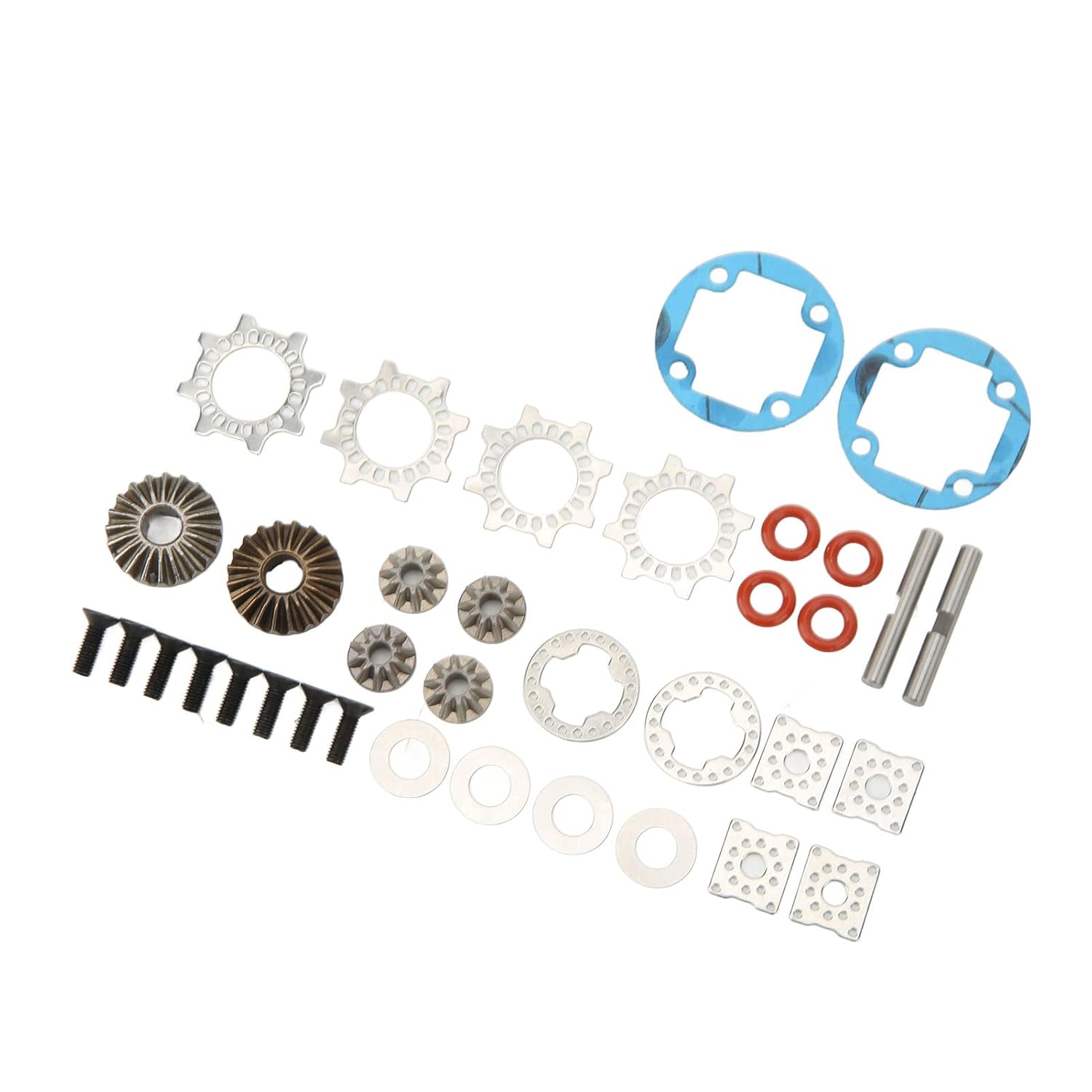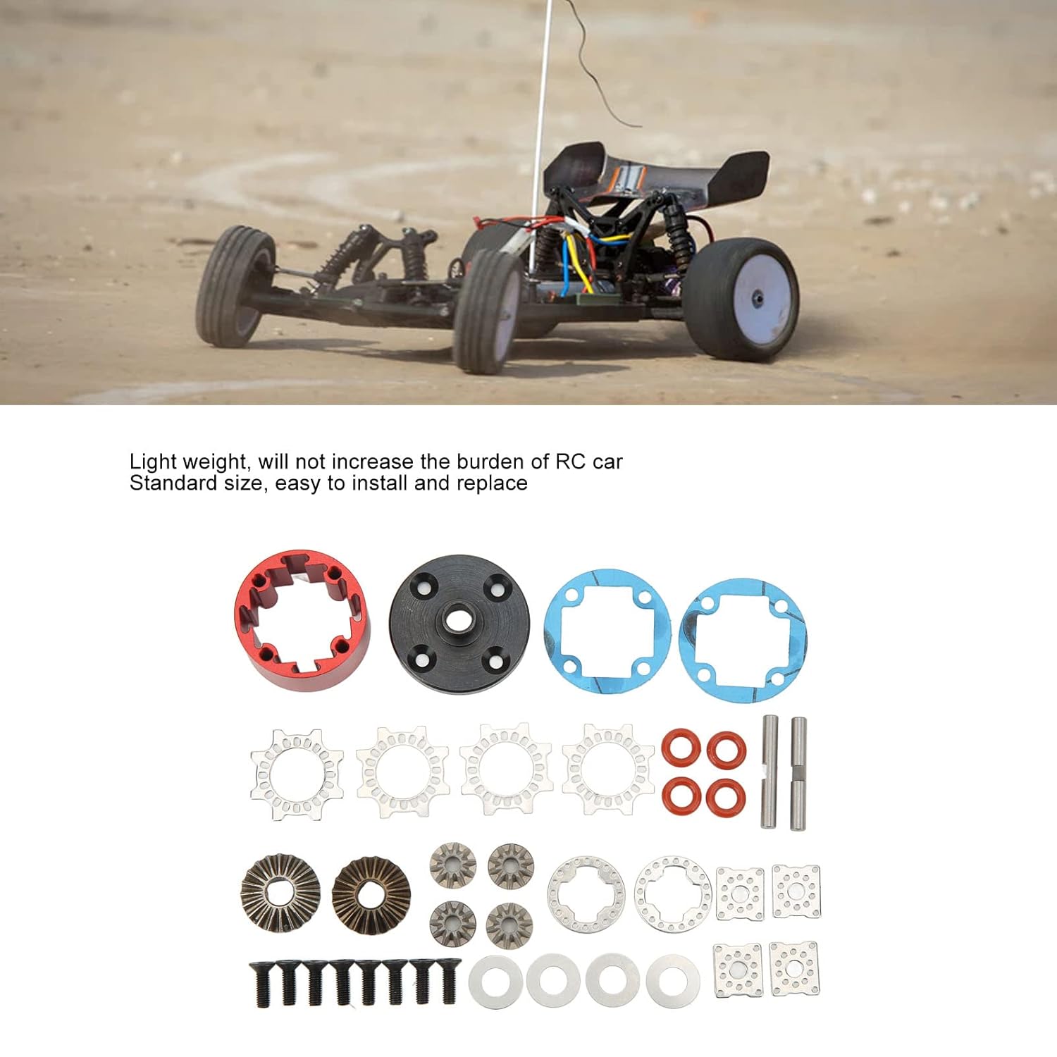 1. Parti di ricambio: questo kit può essere utilizzato per sostituire il differenziale anteriore o posteriore vecchio o danneggiato per i modelli delle serie 1/7 e 1/8. 2. Costruzione in lega di alluminio: realizzata in eccellente materiale in lega di alluminio, resistente alle alte temperature e alla flessione, migliorando la durata in condizioni di carico estreme. 3. Design di dimensioni standard: presenta un alloggiamento per ingranaggi di dimensioni standard con diametro di 29 mm per un'installazione e uno smontaggio convenienti, fornendo un utilizzo facile e pratico. 4. Struttura leggera: il cambio è piccolo e leggero, non aumenta il carico sull'auto telecomandata ed è costruito in modo stabile e solido. 5. Installazione semplice: dotato di guarnizioni, guarnizioni in gomma, viti, anelli di tenuta e ingranaggi, che facilitano l'installazione e la sostituzione del cambio.