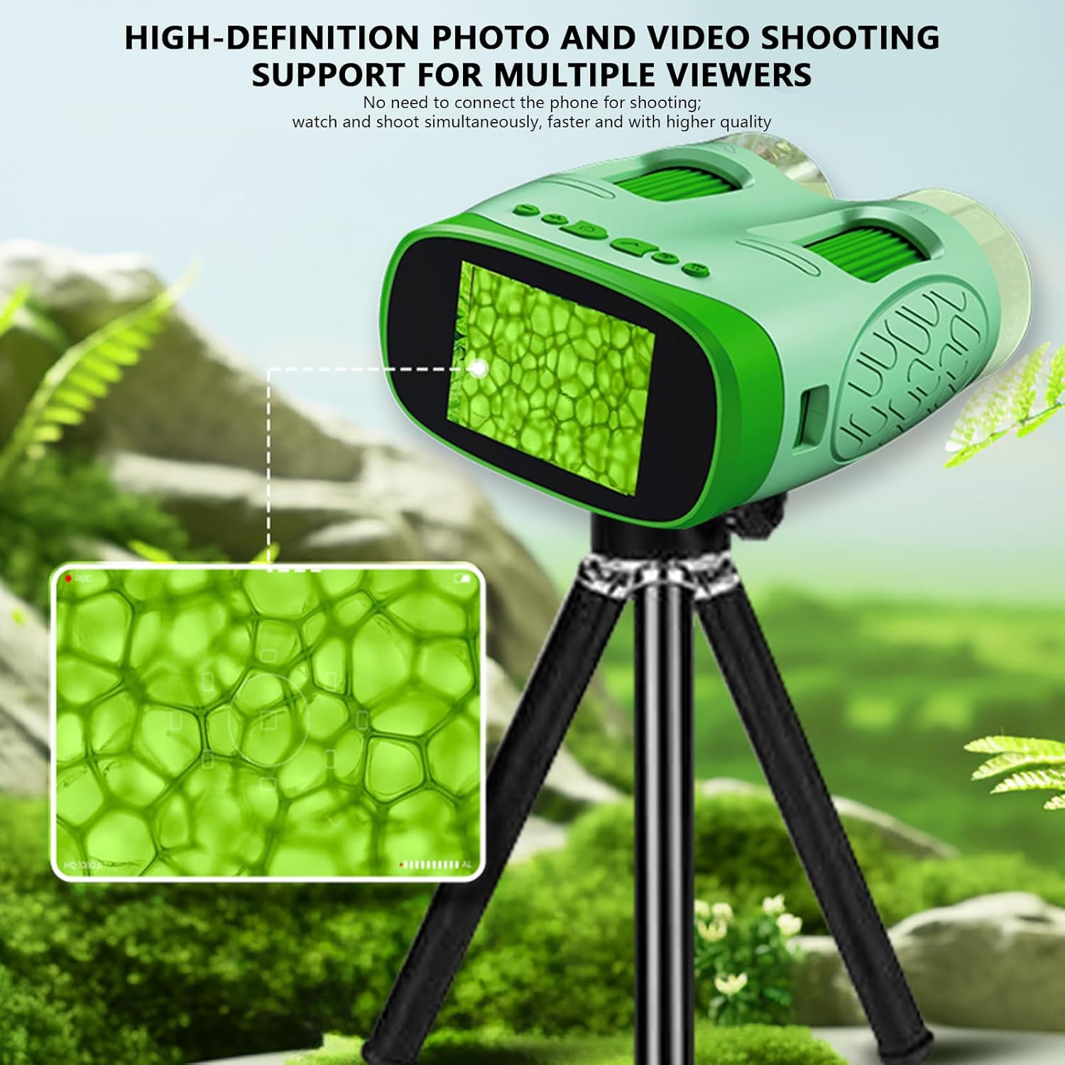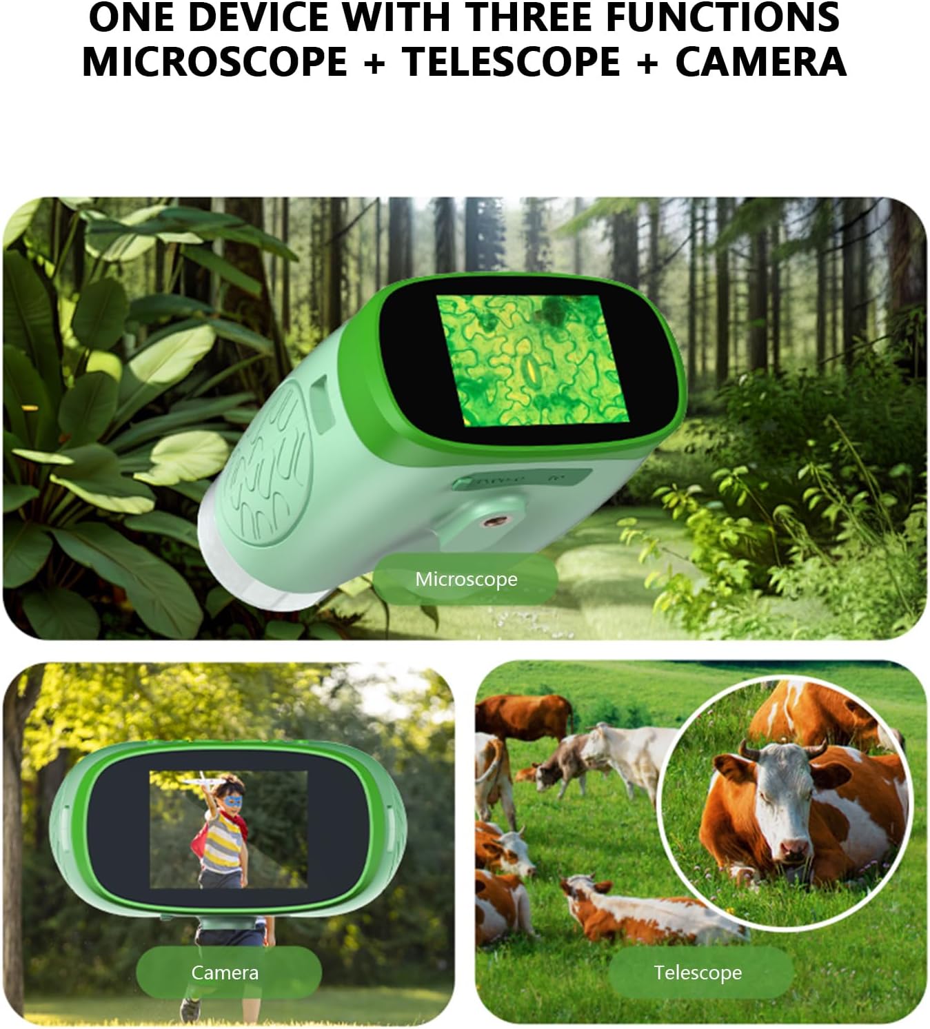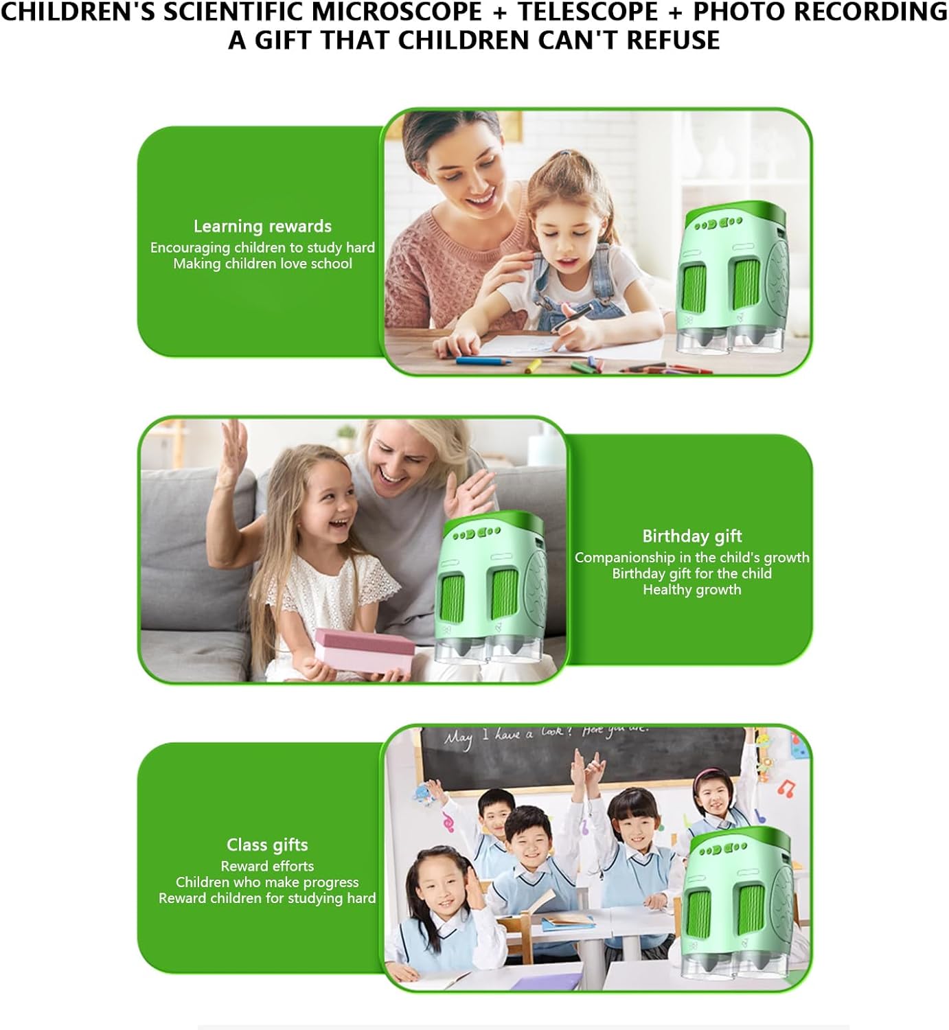 Immagini a piena risoluzione: dispone di una fotocamera 720P integrata per la registrazione video 1080P e il sequestro delle foto, facilitando i bambini a documentare e condividere graficamente i loro rilevamenti Planumberebog portatile trasportabile: sottile e facile da trasportare per i bambini, facilitando indagini scientifiche non premeditate a casa altrimenti all'esterno Sostanza permanente più distinta: prodotto in polistirene ABS verde, soddisfa i criteri di sicurezza per le bambole dei bambini, garantendo durata e riducendo i rischi di rottura Planumberebog Tripartizione multifunzionale: combina strumento, vetro di campo e fotocamera digitale per esigenze di osservazione flessibili, ideale per esplorazioni scientifiche e attività all'aperto Assistenza didattica completa: include una piattaforma sperimentale e un manuale di apprendimento, fornendo ricche risorse per promuovere la curiosità scientifica dei bambini e la comprensione delle abilità