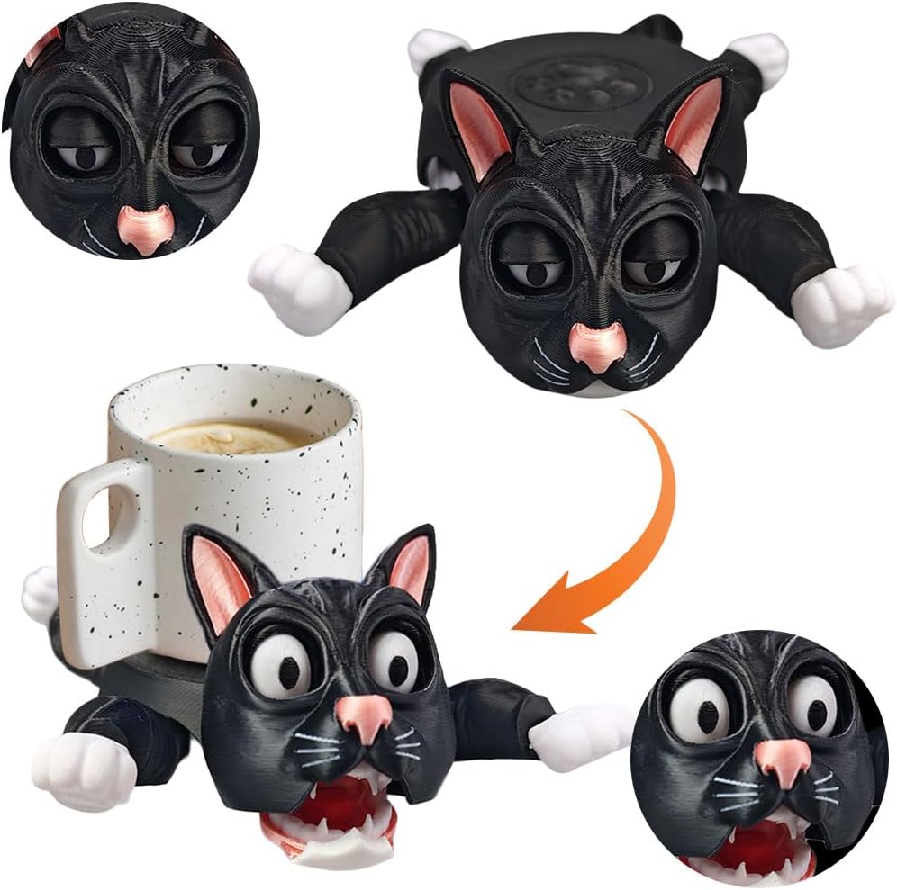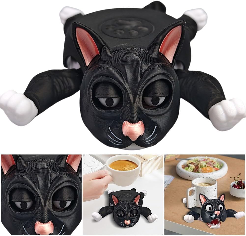 Effective Surface Guard: Prtect your tables from moisture with our 3D printed cat coasters, which keeps surfaces free of water spots and condensation rings. The animated cat motifs offer a joyous blend of decor and utility for all tabletops. Charming Usability: Integrate fun into function with our funny panicked cat cup pad, featuring adjustable limbs that heighten personal interaction. These cute cat illustrations not only enhance aesthetics but also provide dependable spill defense. Superior Craftsmanship: These tea mug coffee drinks holder boast refined craftsmanship that prevents fading and offers a sleek look, suitable for any tabletop. Enjoy its soft texture and sharp prints that combine utility with fashionable appeal. Thoughtful Gifts: Our charming cat cup holder serve as the perfect thoughtful gift for loved ones or coworkers. Lightweight and portable, they promise convenience and joy, bringing smiles and practicality to every household. Durability and Safety Assured: Constructed from sturdy materials, these coasters endure extensive use without losing shape. Their non-Txic, secure materials are ideal for everyday usage, promising a consistently pristine appearance.