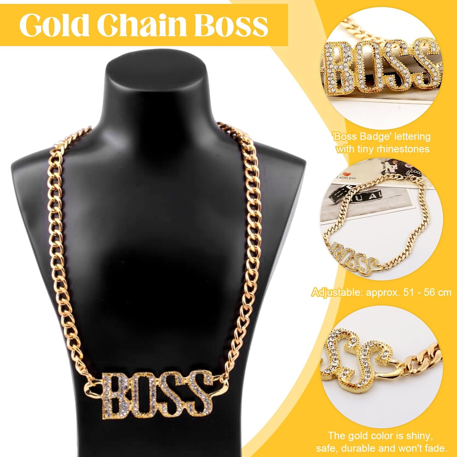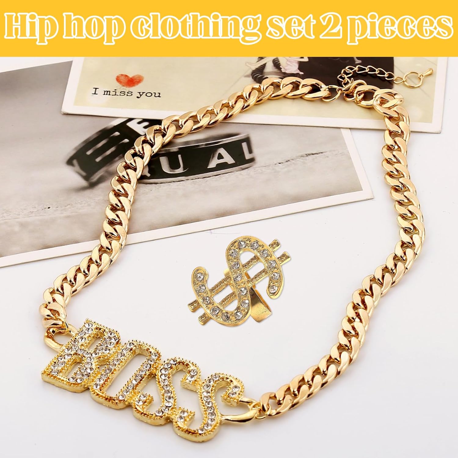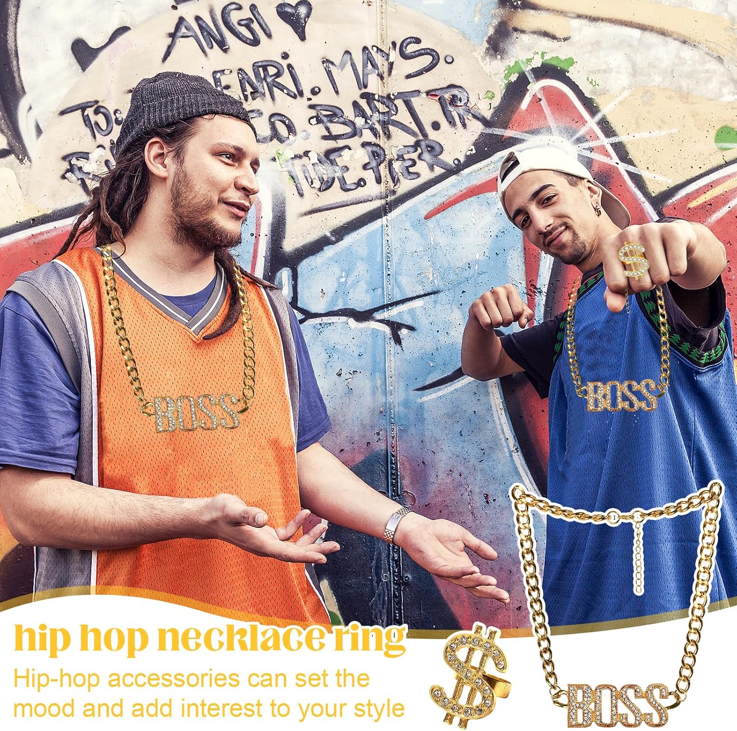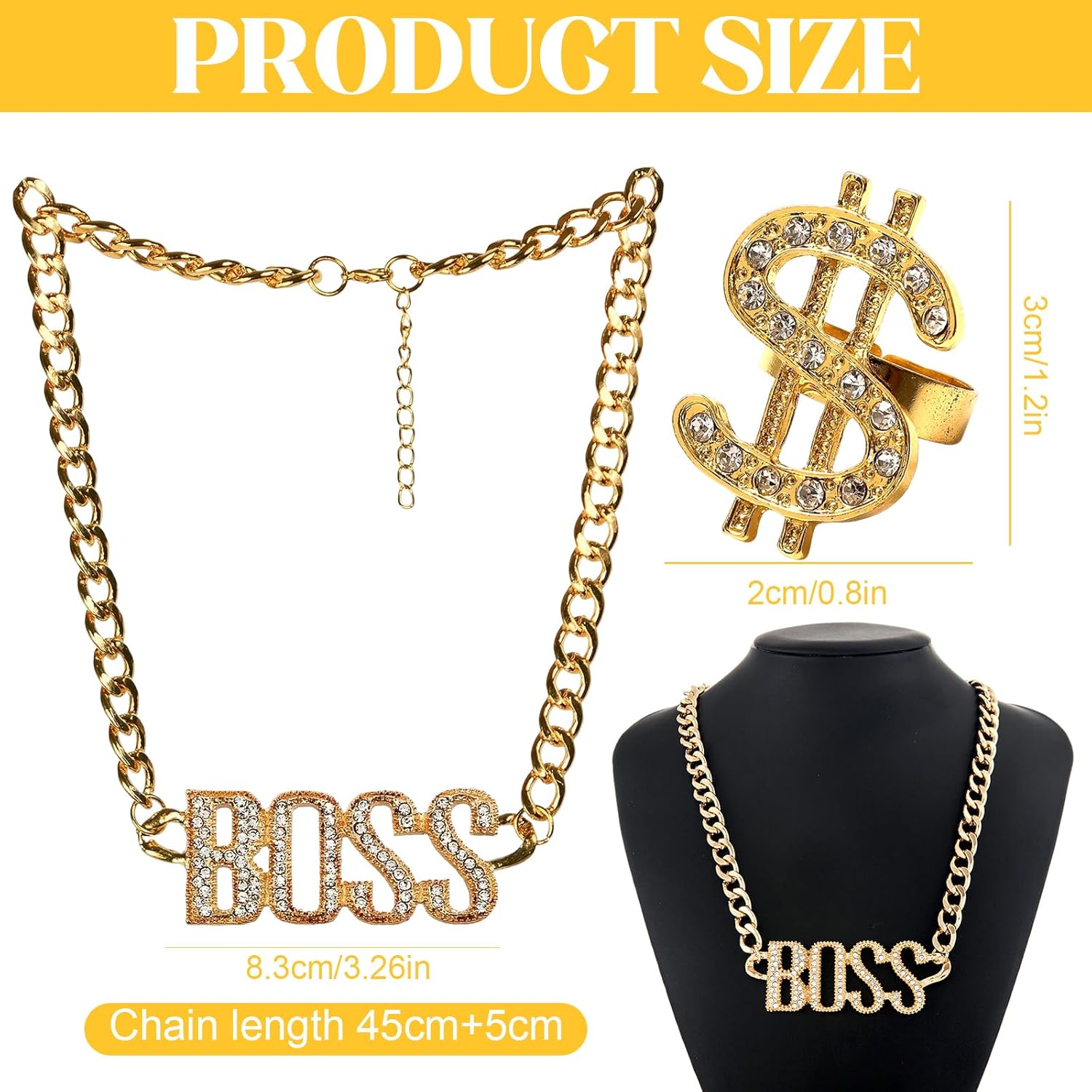 【Descrizione】 1.La collana con simbolo del dollaro, il materiale dell'anello è realizzato in lega con pregevole fattura e buona lucentezza, non sbiadisce. 2.Gli abiti per accessori Rapper sono adatti per feste a tema discoteca anni '80 e '90, feste in maschera cosplay, addii al celibato, concerti hip hop, carnevali e altre occasioni. 3.L'abito hip-hop adotta il classico design a colori dello stile rapper vecchio stile, con colori brillanti e simboli del dollaro esagerati. 【Specifica】 Materiale: lega Colore: oro Dimensioni: :Collana con logo Boss in oro: 60 cm/23 pollici :Anello dollaro in oro: 2 cm/0,78 pollici 【La confezione include】 1 x Collana con logo boss in oro 1 x Anello dollaro d'oro 【Nota】 1.A causa della misurazione manuale, si prega di consentire una deviazione della misurazione di 1-2 mm. 2.A causa della differenza di diversi monitor, il colore mostrato nell'immagine potrebbe essere leggermente diverso dal colore dell'articolo reale.