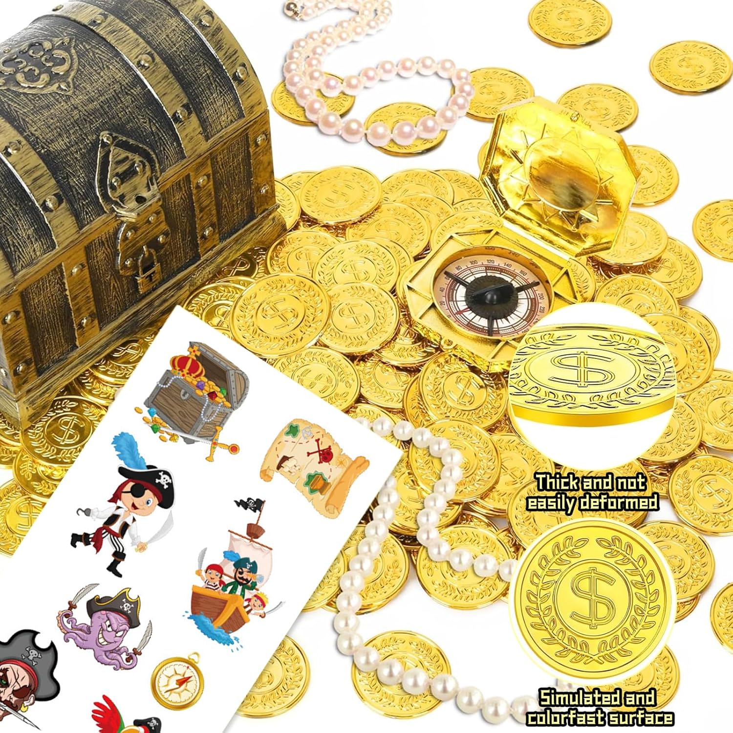 【Set di monete d'oro della pirateria】 Queste monete di plastica sono perfette per le decorazioni per feste con motivi di pirata, Treasureunes e gioco d'azzardo. Ogni gruppo è composto da 50 parti e quindi offre quantità sufficienti per giochi divertenti ed eccitanti. 【Monete d'oro di alta qualità】 Queste monete d'oro realizzate in materie plastiche di lunga qualità e di alta qualità sono potenti e possono essere riutilizzate. Sono leggeri e queste monete non potenti, inodore e leader sono perfette per regali per feste, caccia al tesoro e immaginazione. Con questo semplice design pirata puoi facilmente eseguire in qualsiasi gioco di caccia ai pirati. 【Tutti gli usi】 Queste monete d'oro realizzate in plastica non sono solo adatte alla decorazione o ai giochi per feste. Possono anche essere usati per scopi educativi, ad es. B. per denaro e denaro nei bambini. Sono anche ideali per il lavoro di ristrutturazione e i progetti a casa. 【Ampia applicabilità】 Le monete d'oro sono adatte per una varietà di scenari, tra cui giochi da tavolo DND, giochi di ruolo e caccia al tesoro. Inoltre, possono anche servire come oggetti di scena eccellenti per varie attività di festa, come. 【Elementi pirati】 Usa le nostre monete d'oro per scatenare lo spirito dei pirati in due affascinanti design. Da un lato c'è un logo in dollari e un forziere o una testa di pirata selvatica dall'altra parte. Queste monete sono l'aggiunta perfetta alle decorazioni per feste di pirata, alla caccia al tesoro, ai compleanni, alle feste di carnevale e di Halloween e portano autenticità alle loro celebrazioni.